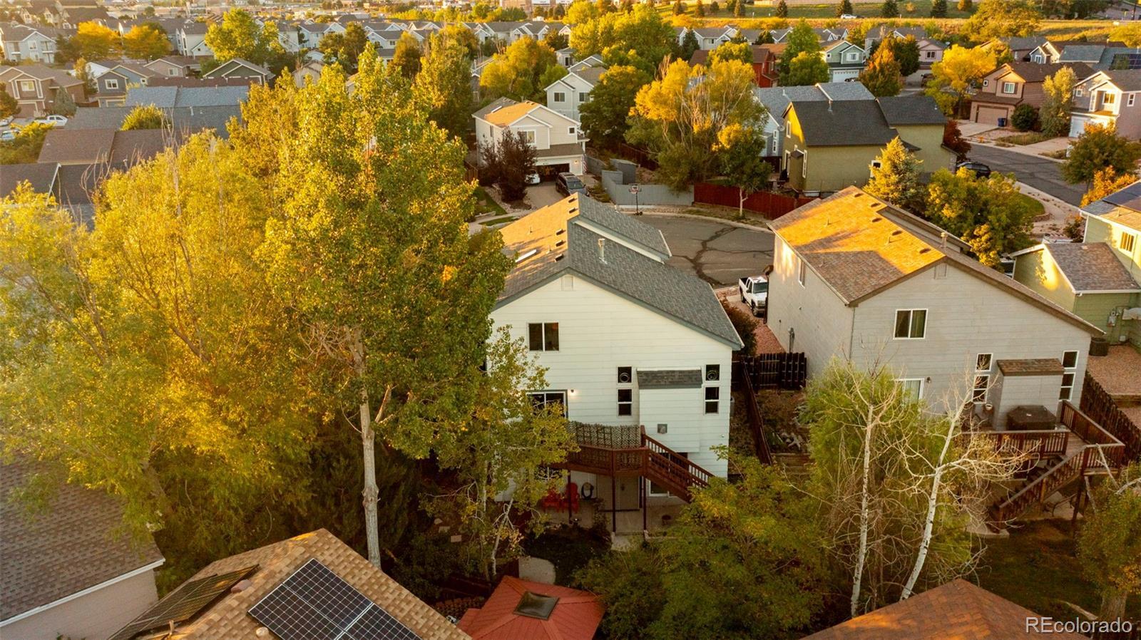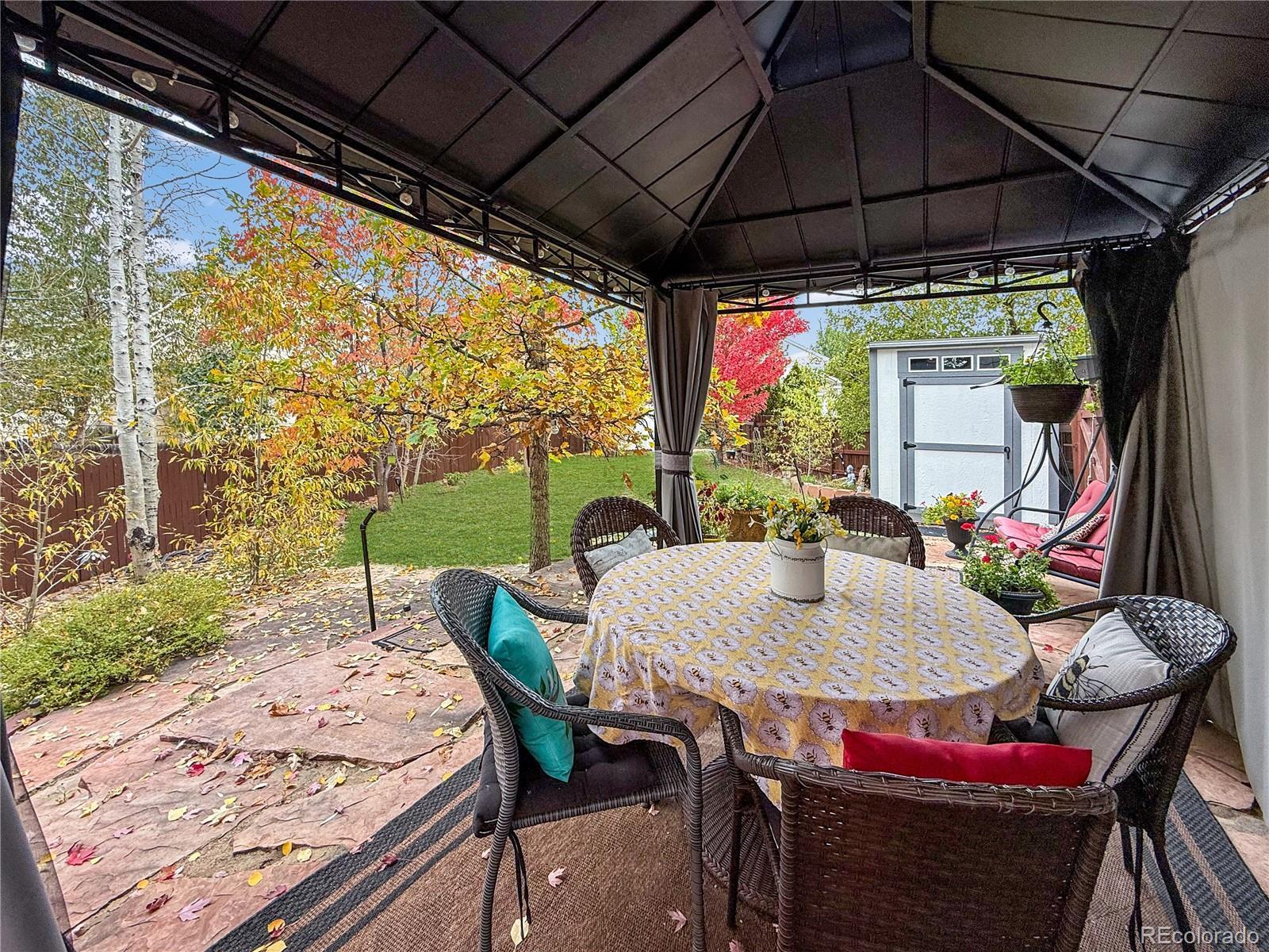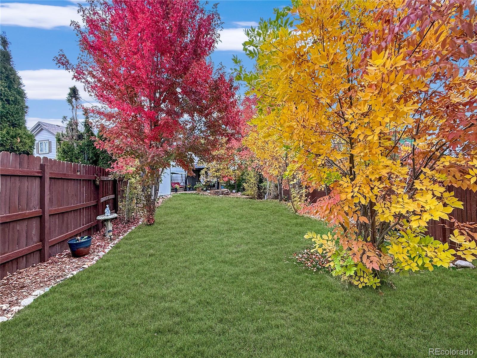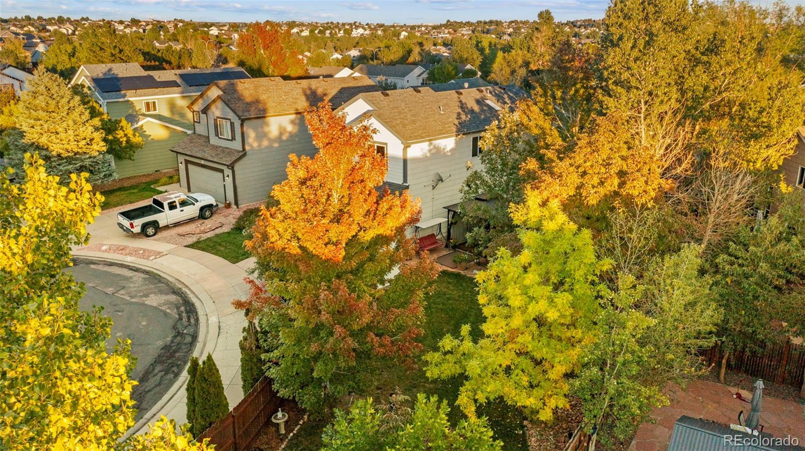 Come and explore this stunning home set on a cul-de-sac with a one-of-a-kind OVERSIZED lot featuring a beautifully landscaped secret garden like outdoor entertainment space. Walking inside you'll be greeted with soaring ceilings in the living room, perfectly framed by a gas fireplace with a custom built-in display. Luxury vinyl flooring extends throughout the main level, leading from the living and dining areas into the showstopping kitchen. The professionally upgraded kitchen will truly dazzle you with calcite countertops (an upgrade from traditional granite), custom cabinets with soft-close features and under-cabinet lighting, stainless steel appliances, a beautiful glass backsplash, and a pantry. The dining nook in the kitchen features a large picture window —which was added by the sellers— that overlooks trees and the stunning yard with vibrant fall colors. This window, along with the sliding patio doors that open to the back deck, fill the space with abundant natural light. Step onto the deck overlooking a green lawn, then explore further to discover a gate opening to a stone pathway with stunning landscaping. This leads to an additional expansive lawn with a stone patio, gazebo, and two storage sheds. This one-of-a-kind yard is unique to this lot, making it truly special. Plus, a large utility gate in the fence provides space to accommodate a trailer or trash cans from the curb. Back inside, move upstairs to find the primary suite with an en-suite bathroom featuring a double vanity, tub/shower combo, water closet, and walk-in closet. The upper level also includes two additional bedrooms and a full bathroom. The walkout basement offers a perfect space for family movie or game nights, along with a fourth bedroom with en-suite access—ideal for guests or a home office. Located in the coveted Stetson Hills area, enjoy close proximity to entertainment, dining, and shopping right off Powers Blvd. This home shows pride of ownership throughout and is a true gem!