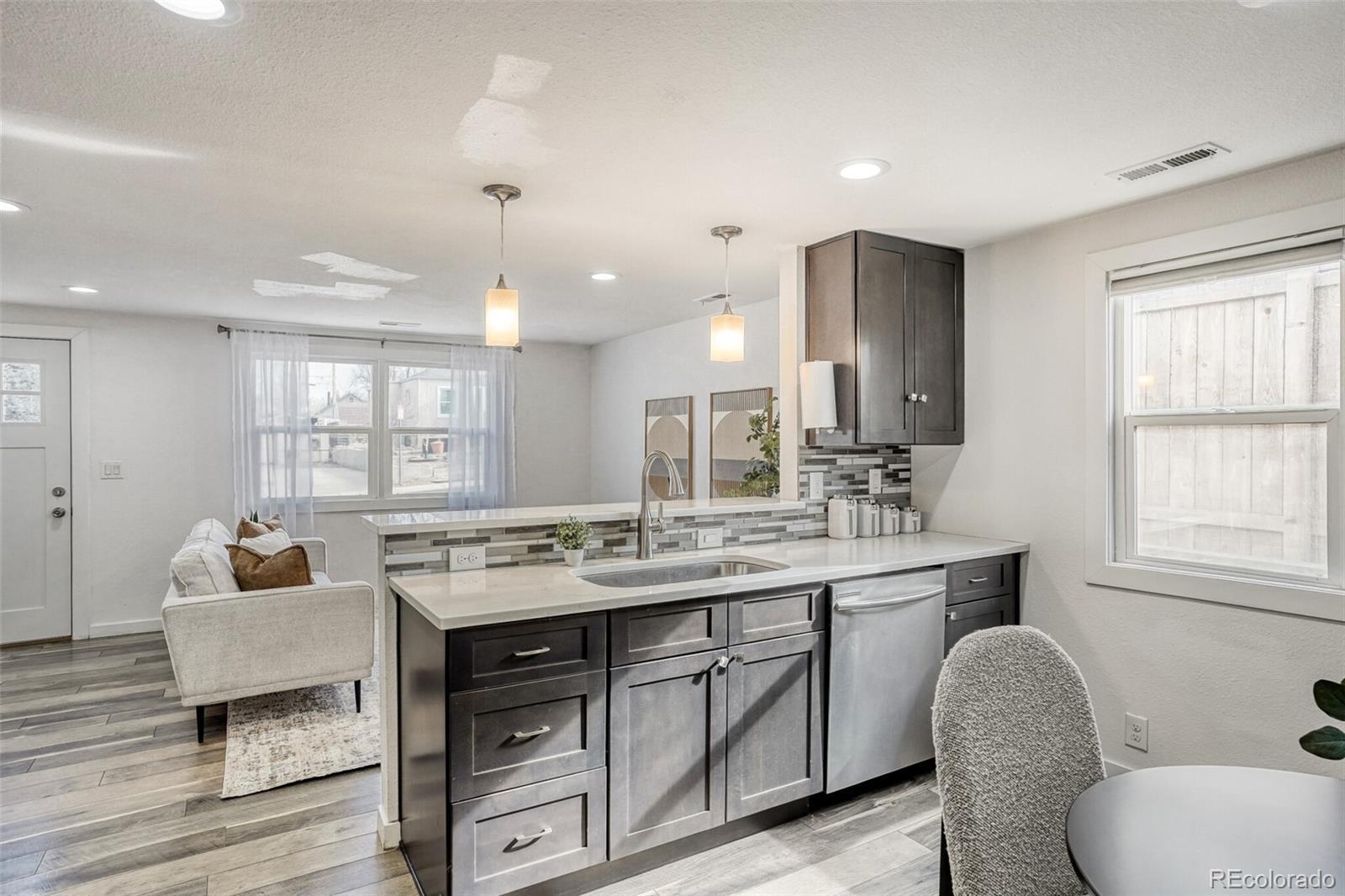 Welcome to 611 Vrain St — a cute, updated, and truly move-in ready 3-bed, 2-bath home offered at an unbeatable price. The layout is functional and inviting, with well-sized bedrooms, including an oversized primary suite with an en-suite bath and bonus space perfect for an office, workout area or cozy reading nook. Inside, you’ll find fresh paint, quartz countertops, Fabuwood soft-close cabinetry, Samsung stainless steel appliances all in a bright and open kitchen with functional bar seating. The washer and dryer stay, along with window shades, an additional pantry, and extra bathroom storage if the buyer desires. The HVAC system has been recently serviced with regularly replaced filters, features an Ecobee smart thermostat, and the home already includes an existing radon mitigation system. A Rheem water heater was installed in 2017, and the roof comes with a brand-new 5-year certification for added peace of mind. Outside, enjoy a low-maintenance xeriscaped front yard with rose bushes and native plants, and the backyard features a raised garden bed, sprinklers, and a spacious storage shed. Joseph Martinez Park—recently renovated with a new playground, amphitheater, and basketball court—is an easy walk from your new front door, adding even more lifestyle appeal. An incredible bonus: this home qualifies for a Sunflower Bank grant program, offering buyers up to $7,000 in grant funds that do not need to be repaid (buyer to verify eligibility). Walking distance to the newly renovated Joseph Martinez park, complete with a brand new amphitheater, playground, and basketball court. Also just 5 minutes from beautiful Sloan's Lake and many great shops and restaurants including: Odell Brewing Co, Alamo Draft House, The Patio, Stoney's, Moonflower Coffee, Gusto, Edgewater Public Market, Edgewater Beer Garden, Target, King Soopers, Ace, and so many more! This is a fantastic chance to own a thoughtfully updated home in a great location with strong long-term value.