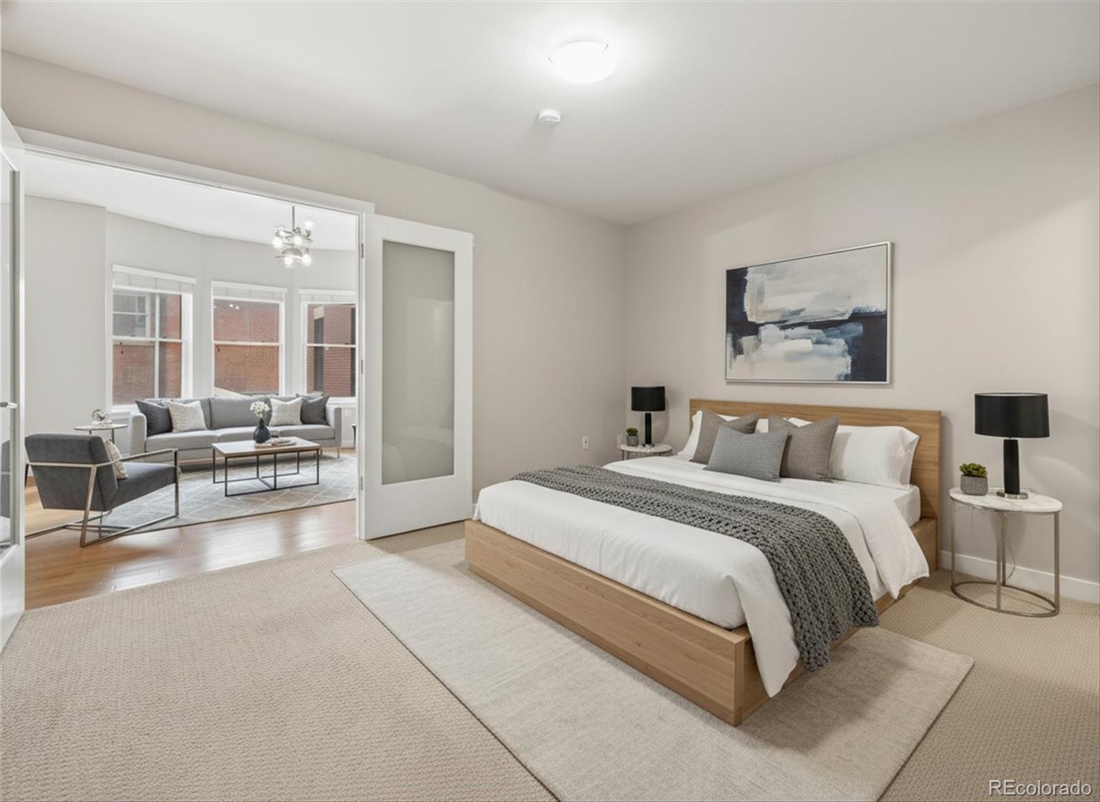 Live the lifestyle you’ve been manifesting in this sleek, move-in-ready 2-bedroom, 2-bath condo offering 1,400 sq. ft. of open living space and 2 secure indoor deeded garage spaces (no more hunting for parking!). Step inside to soaring ceilings, oversized windows, and a bright, open-concept layout designed for both entertaining and everyday living. The modern kitchen features stainless steel appliances, granite countertops, and a breakfast island—perfect for cooking nights in or hosting friends. The spacious primary suite is your private retreat with a spa-like bath, dual vanities, and a generous walk-in closet. A second bedroom and full bath give you flexibility for a roommate, guest space, or work-from-home setup. Enjoy resort-style amenities infinity pool, fitness center, rooftop lounge, concierge, and secure building access. With high-speed internet options, streaming-ready wiring, and smart-home potential, this condo keeps you connected and stress-free. HOA includes utilities, not phone. Located just minutes from trendy coffee shops, local breweries, boutique gyms, and public transit, this home puts the best of Denver at your doorstep. Highlights for today’s lifestyle: 2 indoor garage spaces (rare!), Pet-friendly community, Modern finishes + low-maintenance living, Walk able, social, and connected neighborhood. This is more than a condo—it’s your hub for convenience, community, and elevated living.