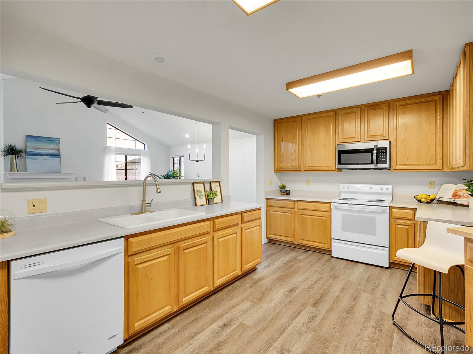 Welcome to your turnkey dream home in sunny Evergreen, CO! This stunning 3-bedroom, 3-bathroom penthouse 55+ condo spans 1,830 square feet and offers an unparalleled Foothills lifestyle. Nestled in a prime North Evergreen location, this home combines rustic charm with modern luxury. The airy and spacious kitchen is perfect for entertaining, while the expansive living area, complete with a cozy fireplace, luxury vinyl floors and soaring ceilings invites relaxation. Each bedroom boasts massive closets and the spacious bathrooms provide a touch of everyday indulgence. Enjoy new patio flooring, perfect for morning coffees or evening sunsets. Fabulous community spaces and amenities are the cherry on top for additional areas to unwind and connect. Centrally located, this home is walkable to North Evergreen's finest amenities. A rented garage parking space is optional, but potentially included for your convenience. And speaking of amenities, Rocky Village has it all--a wood shop, craft room, billiards room, game room, gym, community rooms, library and a full guest suite. Embrace a lifestyle of comfort and elegance in this enchanting mountain retreat!