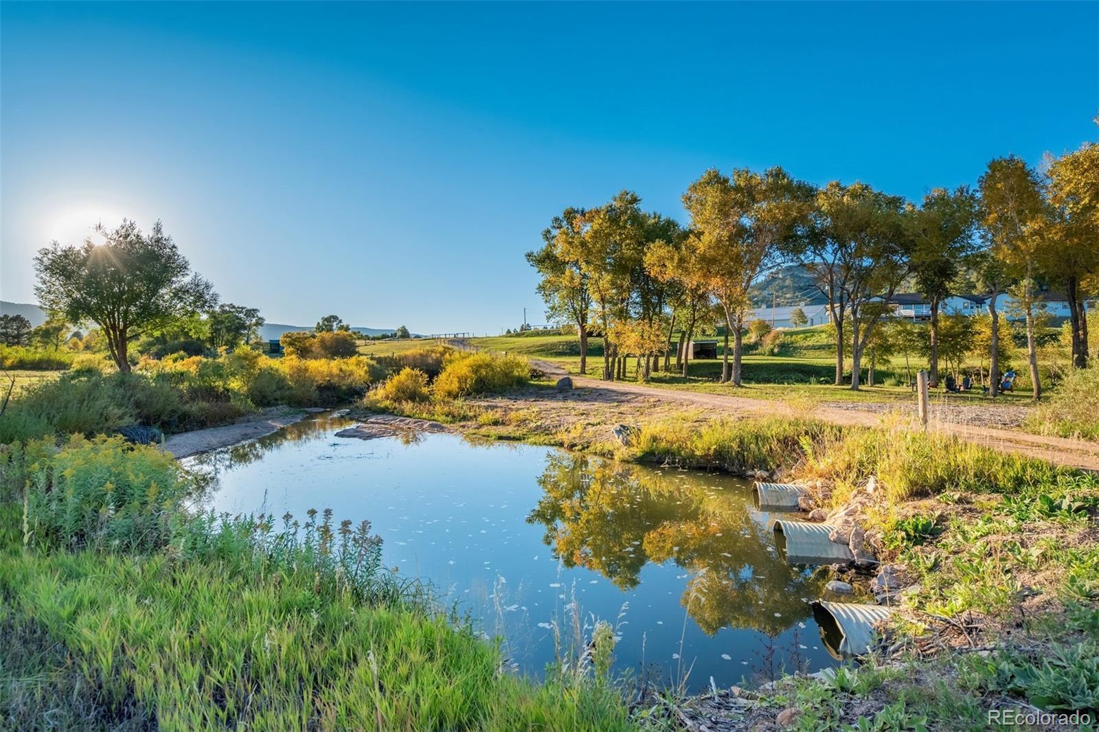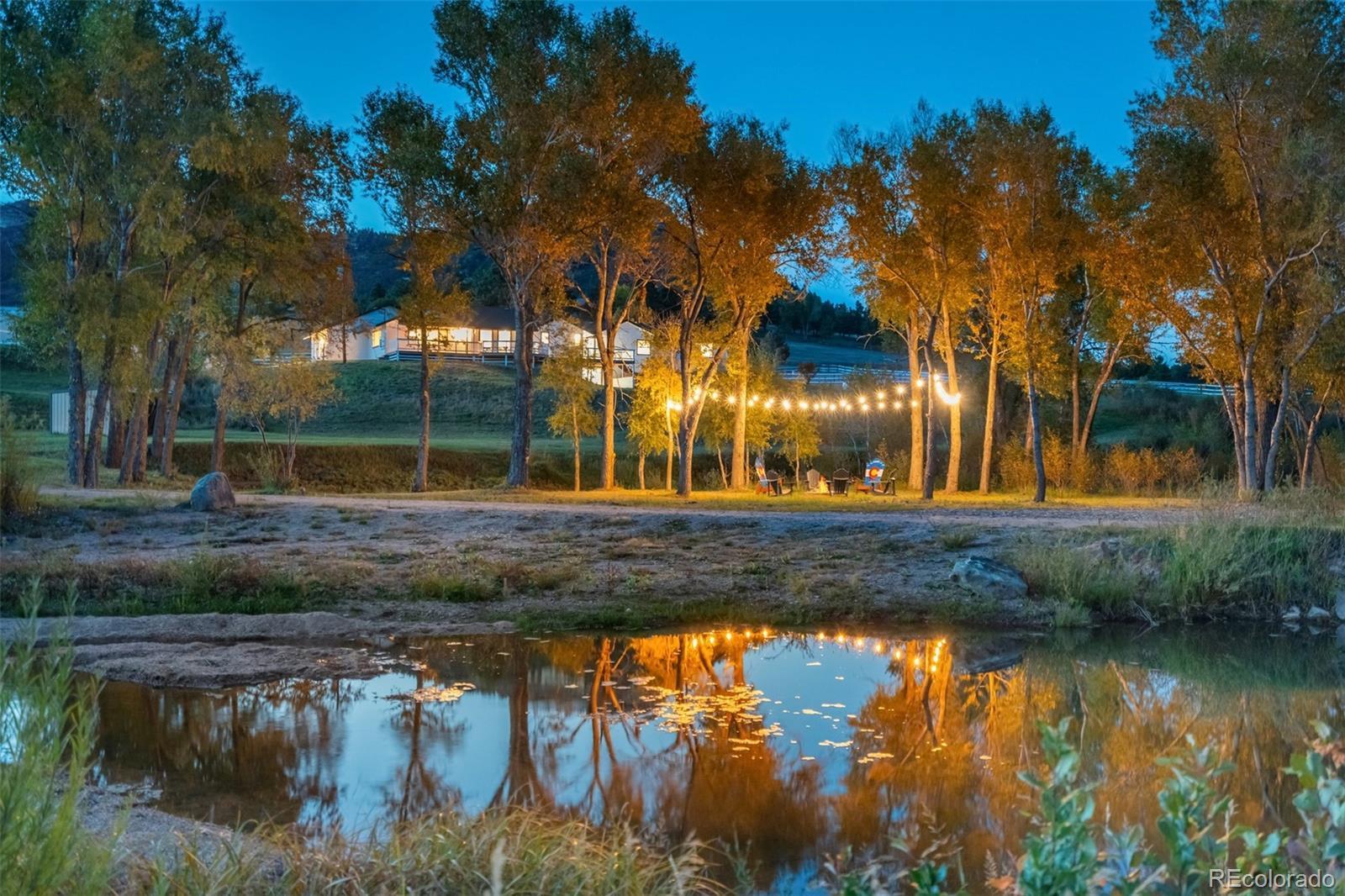 Rare opportunity to own this beautiful 50-acre pristine property near Larkspur. This extraordinary estate is a rare blend of natural beauty and ample space for whatever you can imagine. Plum Creek gracefully meanders through the center of the property, creating a picturesque waterway stocked with fish and a multitude of wildlife, all surrounded by mature willow trees, creating a serene, storybook setting. Positioned near I-25 and with ample water rights, it's ideal for additional buildings and a variety of uses. Ideally suited for equestrian luxury, this property seamlessly combines thoughtful design with expansive pastures and tree-lined meadows, offering an unmatched lifestyle of comfort, space, and breathtaking views. The impressive, newly built 12,000 square foot building features an indoor riding arena, eight horse stalls, a washing area, a tack room, an office, and a bathroom. Additional buildings consist of a spacious hay barn, workshop, chicken coop, historic silo with a milking shed from the original homestead, and multiple loafing sheds throughout. The 50 acres are extensively fenced with premium 5" white vinyl and a large outdoor riding arena. The fully remodeled main home features an open, light-filled floor plan designed to frame breathtaking views of the surrounding buttes, rolling meadows, and distant mountains. Large windows capture the natural beauty of the valley, ponds, and creek, creating a seamless connection between indoor comfort and the outdoors. This sprawling rancher showcases an open-concept design that harmonizes contemporary finishes with the enduring warmth of classic ranch style. A prime additional building site is perfectly positioned to take in panoramic mountain views and Plum Creek as it runs through the center of the property. Whether you’re envisioning a luxury equestrian estate or a serene private retreat, this legacy property also has direct access to miles of trails and open space leading to Spruce Mountain.