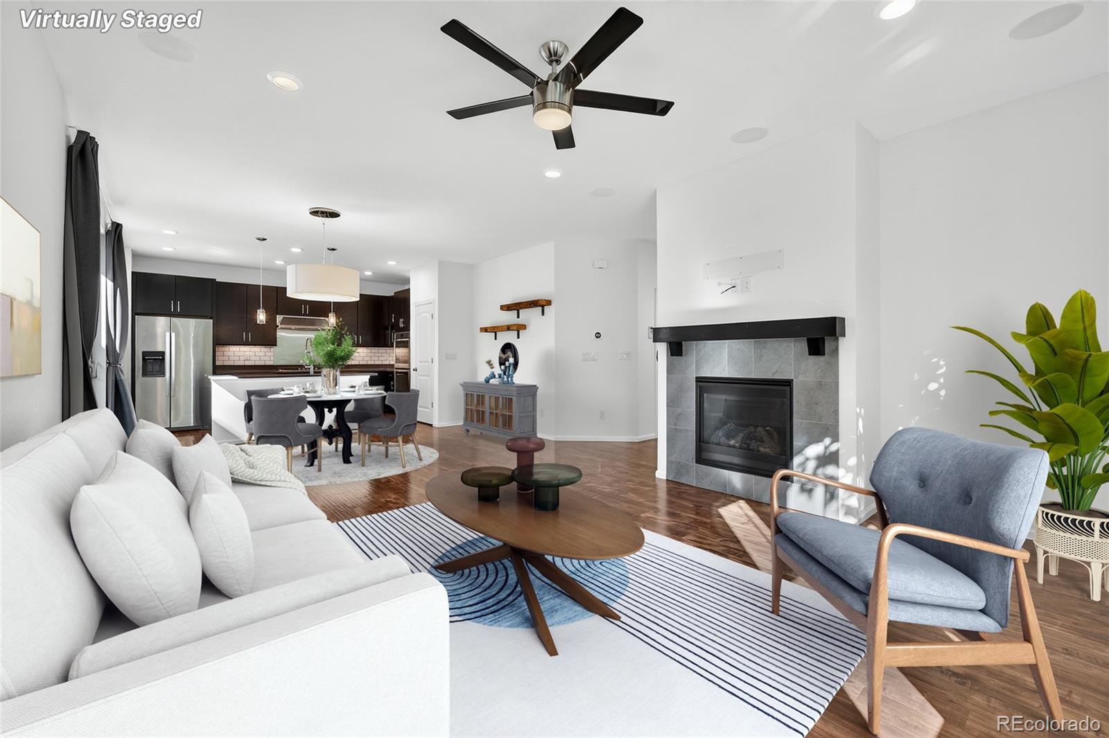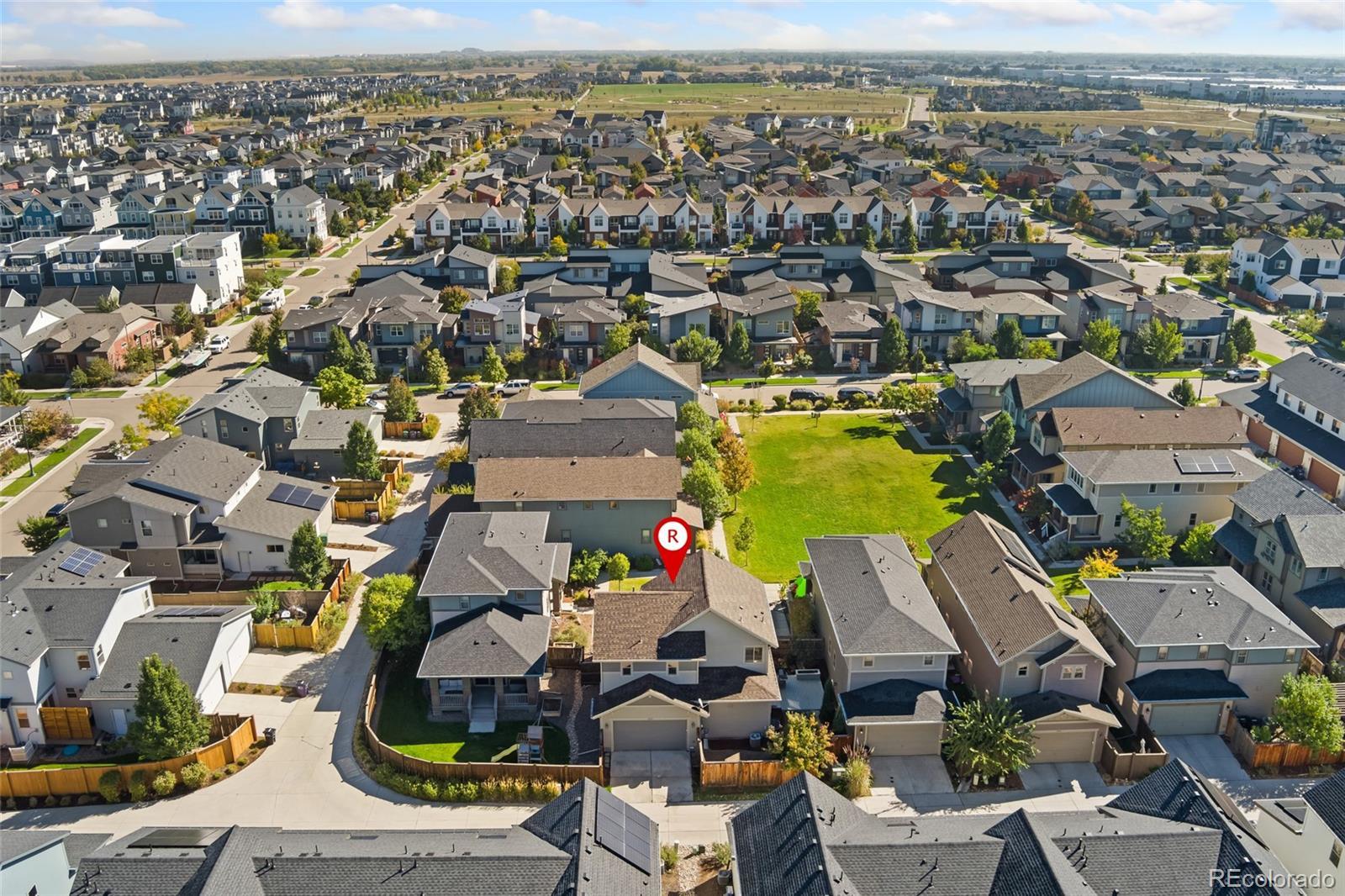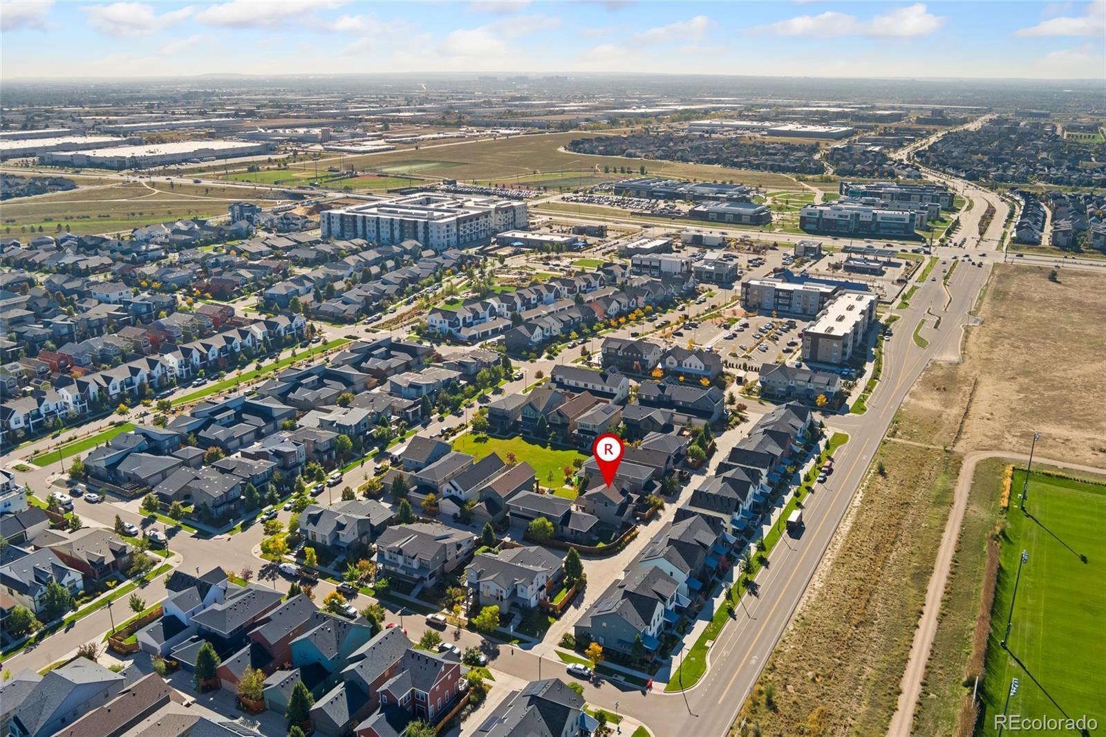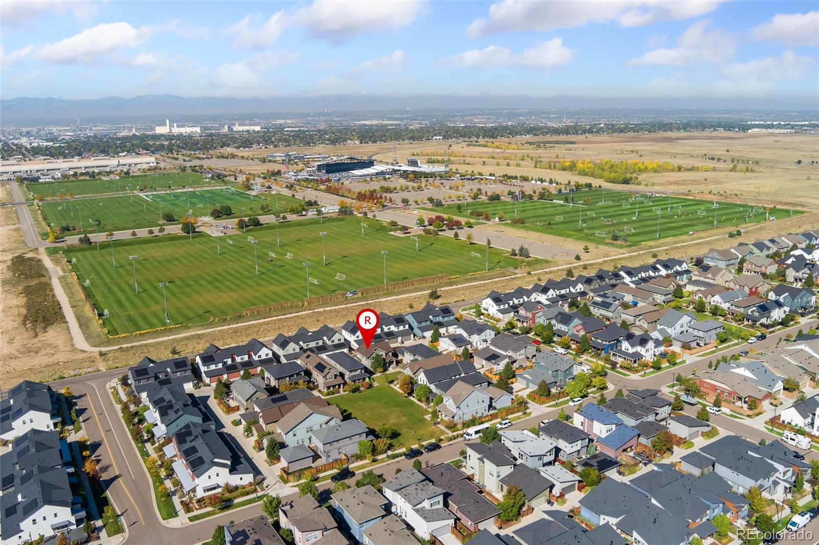 Beautiful two-story Craftsman-style home in the desirable Central Park neighborhood. Enjoy a warm and neighborly community with incredible walkability to Prairie Gate Open Space, Dick’s Sporting Goods Park, and countless parks and trails—perfect for outdoor enthusiasts. The home opens to a lovely common courtyard and welcomes you with a classic front porch. Inside, the main level features gorgeous wide-plank engineered wood flooring and an open living, dining, and kitchen layout. The chef’s kitchen is highlighted by quartz countertops, professional-grade stainless steel appliances, and an expansive center island. A sliding door off the dining area leads to a private side deck, ideal for outdoor dining and relaxation. A charming planter box adds a touch of nature, perfect for growing fresh herbs. Upstairs, you’ll find three spacious bedrooms, including a private primary suite filled with natural light and featuring a spa-like five-piece en-suite bath. Convenient upper-level laundry makes everyday living a breeze. The finished basement offers even more living space with a comfortable family room, an additional bedroom, and a full bath—perfect for guests or a home office. This immaculate home is tucked within an attractive, HOA-maintained courtyard and comes equipped with modern smart-home features, including a Nest thermostat, Nest Protect System, SimpliSafe alarm system, Nest doorbell, MyQ/Amazon Key garage system, and HD antenna. A brand-new roof and gutter replacement were completed in 2025. Move-in ready and full of thoughtful upgrades, this Central Park gem is the perfect blend of comfort, style, and convenience. Buyer/Buyer's agent is responsible for verifying all information, measurements, schools, and HOA rules/fees/regulations.