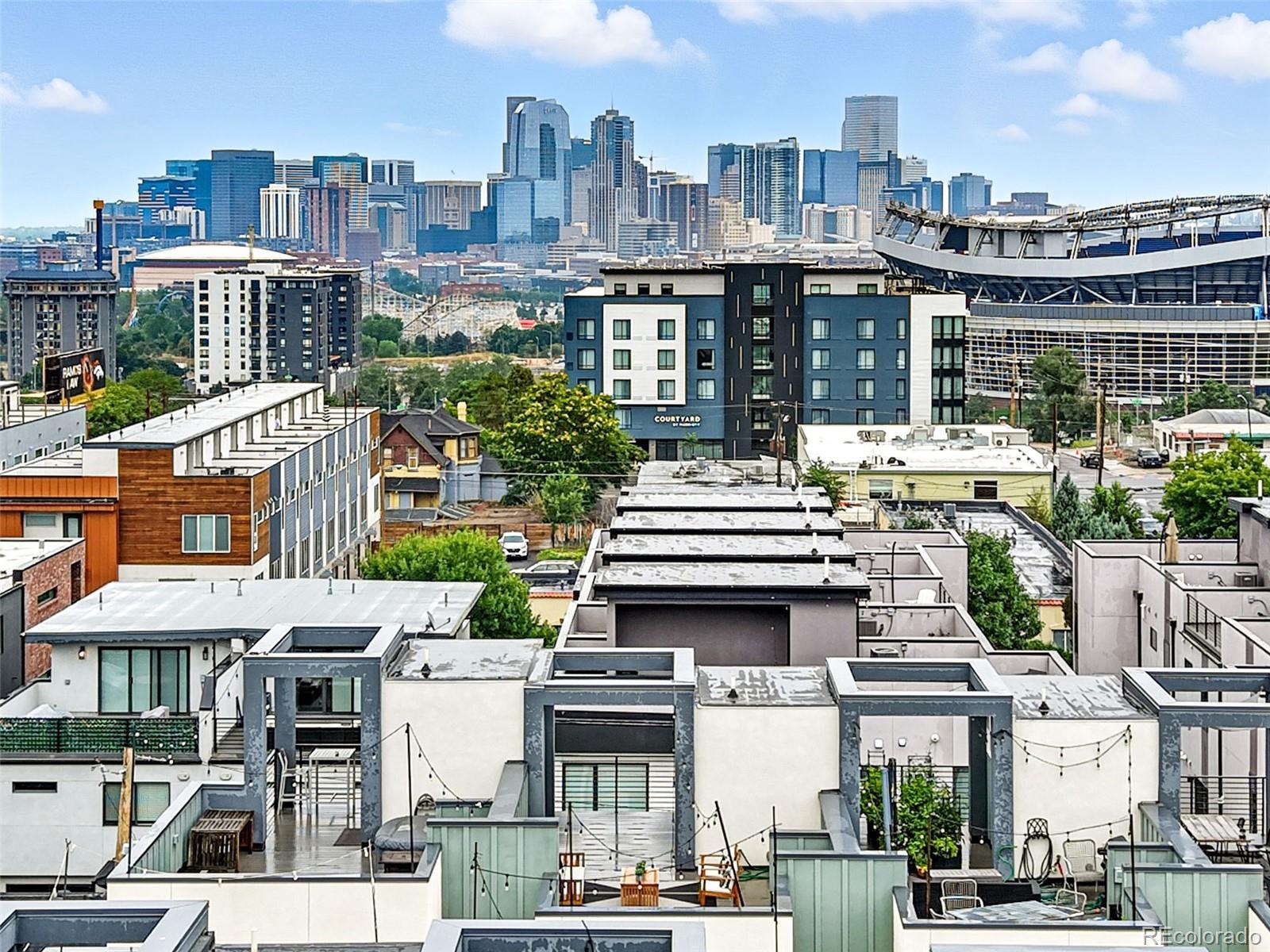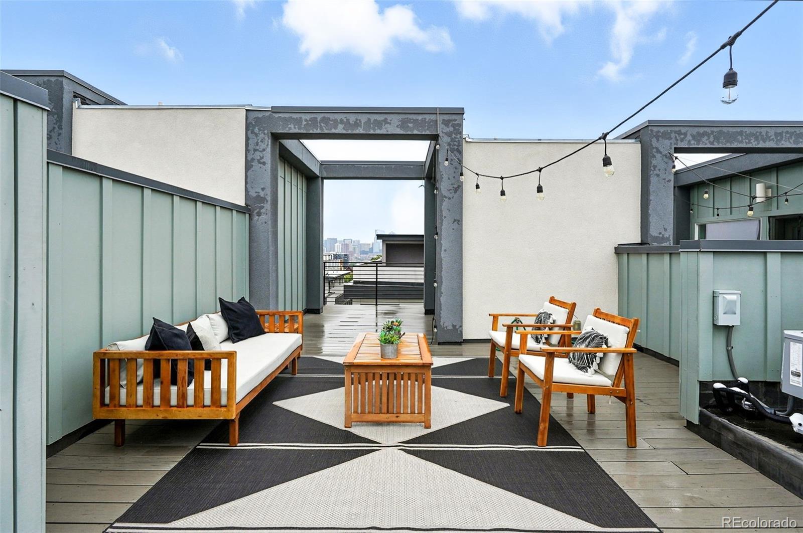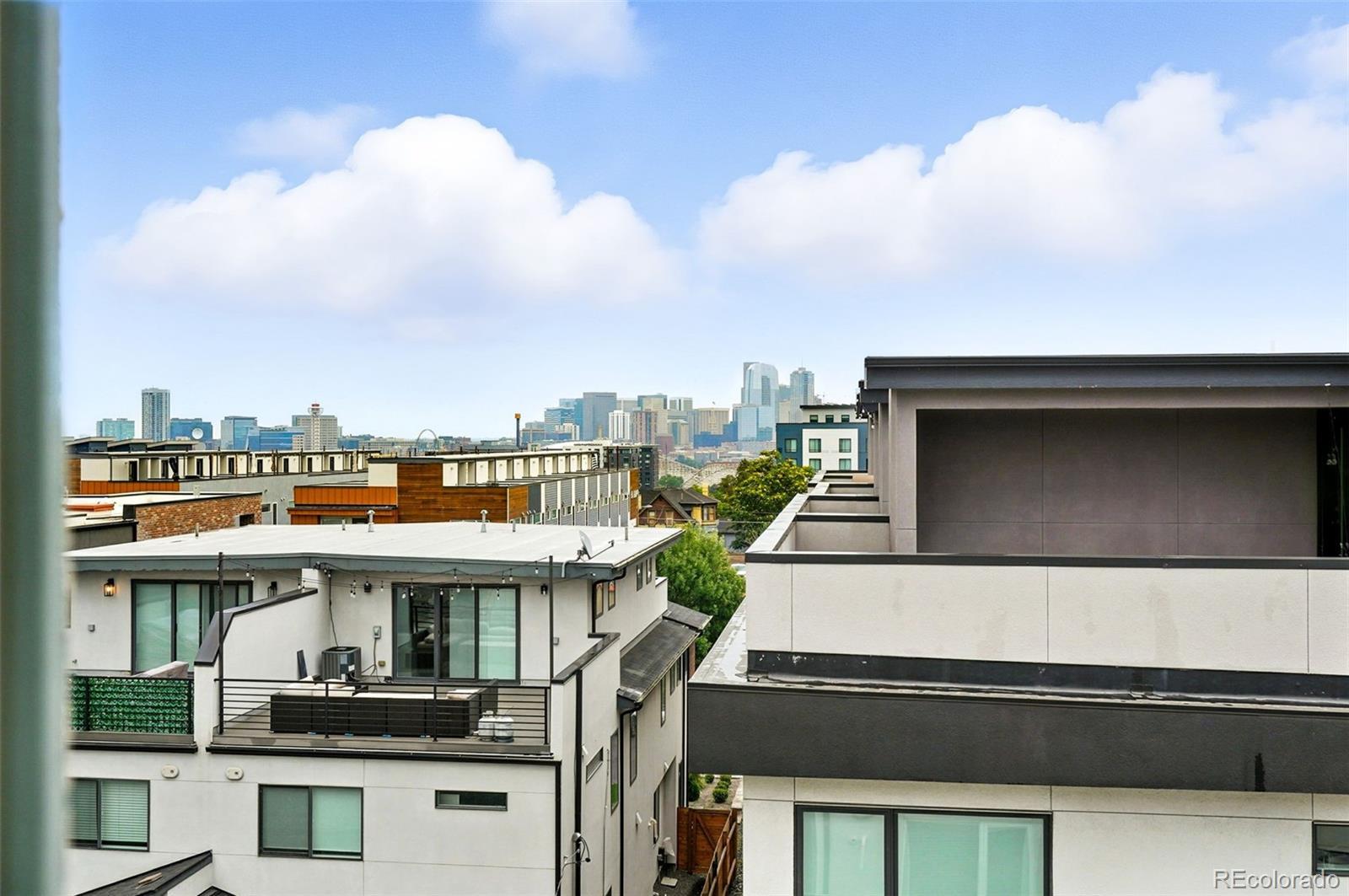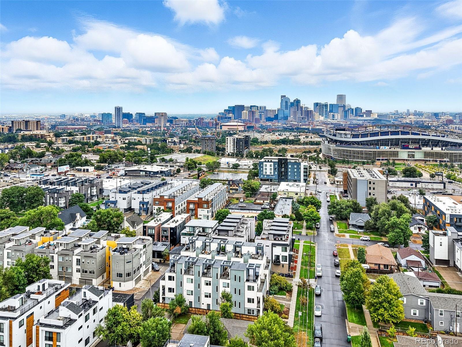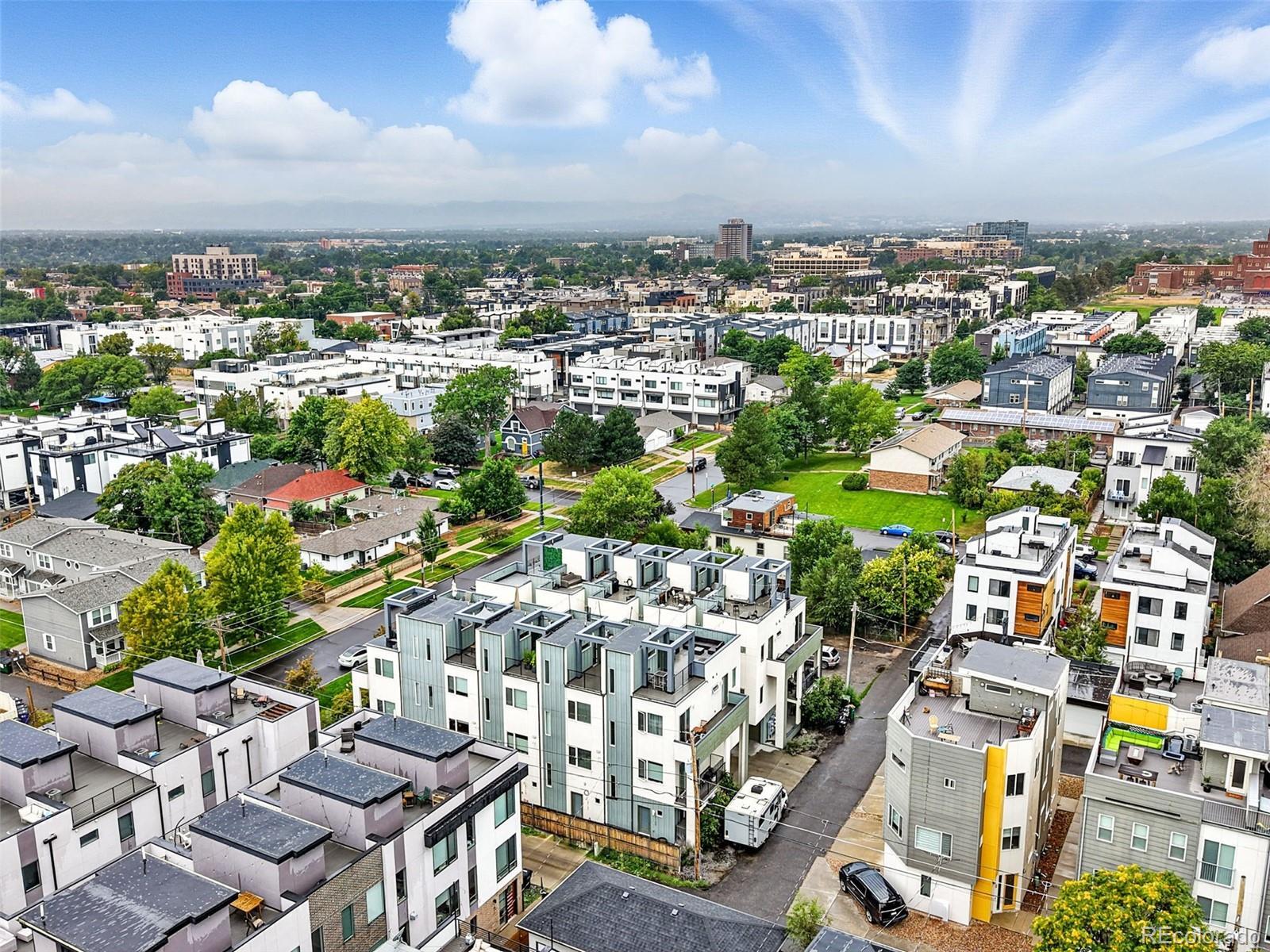 Welcome to your dream townhome in the heart of Sloan’s Lake! This modern 2-bedroom, 4-bath home offers soaring 10-foot ceilings, abundant natural light, and a rare two-car attached garage. The open-concept main floor features a chef’s kitchen with a large quartz island, pantry, gas range, and high-end appliances, plus hardwood floors and a built-in wet bar, perfect for entertaining. Upstairs, you’ll find two spacious bedrooms, including a serene primary suite with double closets and en suite bathroom with a dual vanity. Laundry is conveniently located on the same level, with washer and dryer included. The highlight? A private rooftop deck with sweeping city and mountain views, designed to accommodate a hot tub and ideal for relaxing or hosting guests. Energy-efficient upgrades like a tankless water heater add even more value. All this in an unbeatable location: just blocks from Sloan’s Lake, Mile High Stadium, light rail, restaurants, cafes, and minutes to I-25 and downtown Denver. Don’t miss this one, schedule your private showing today or explore the immersive 3D tour at www.3121w18thAve.com.