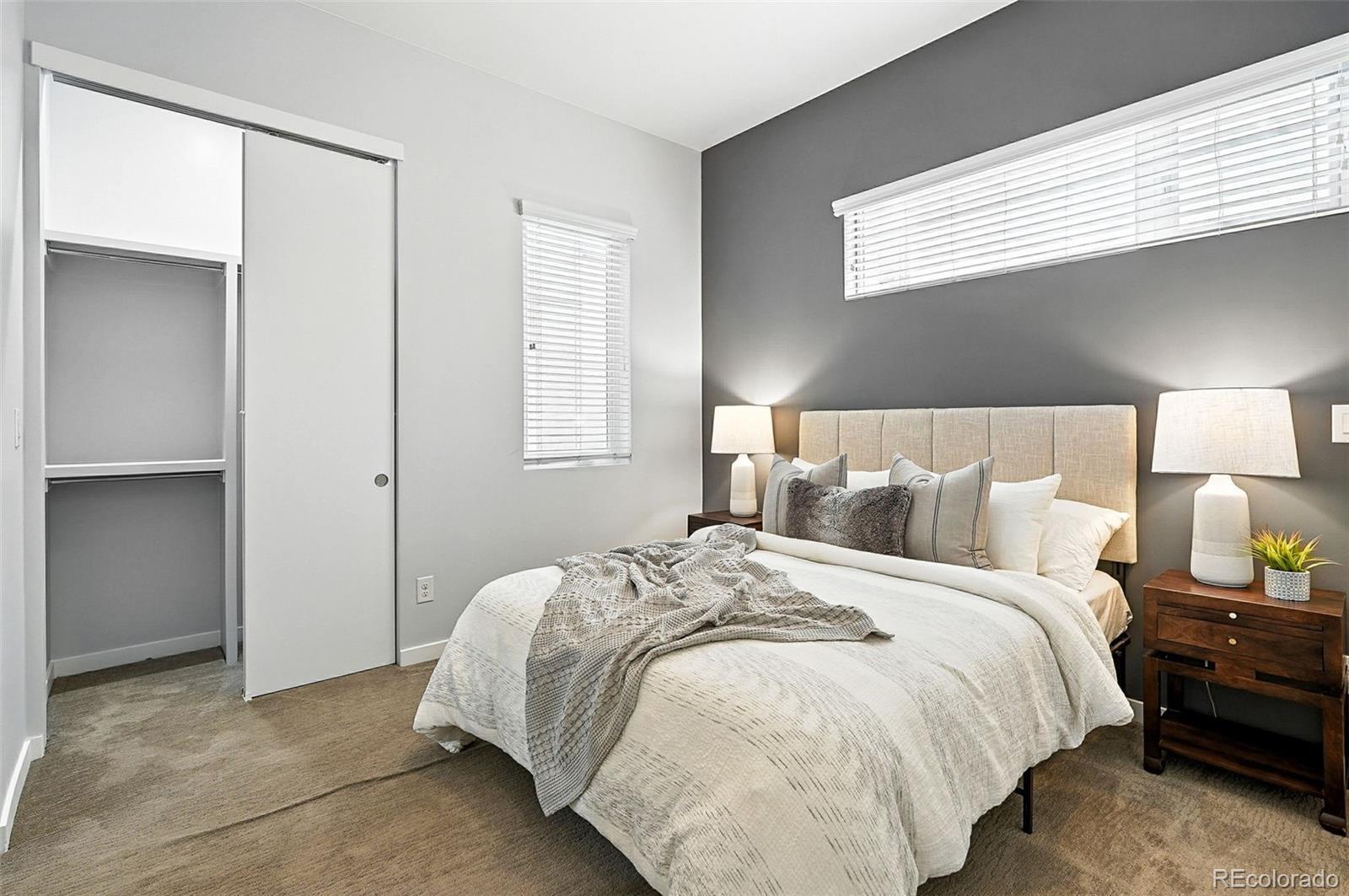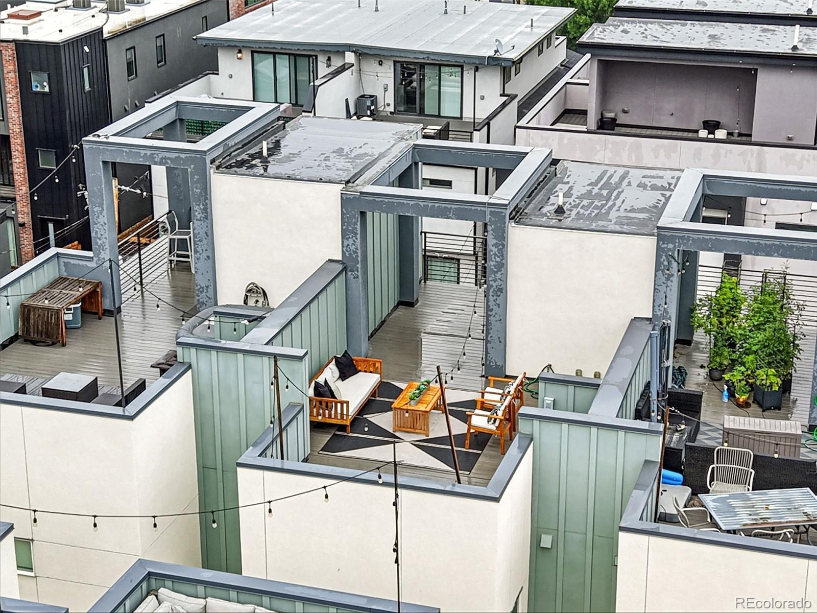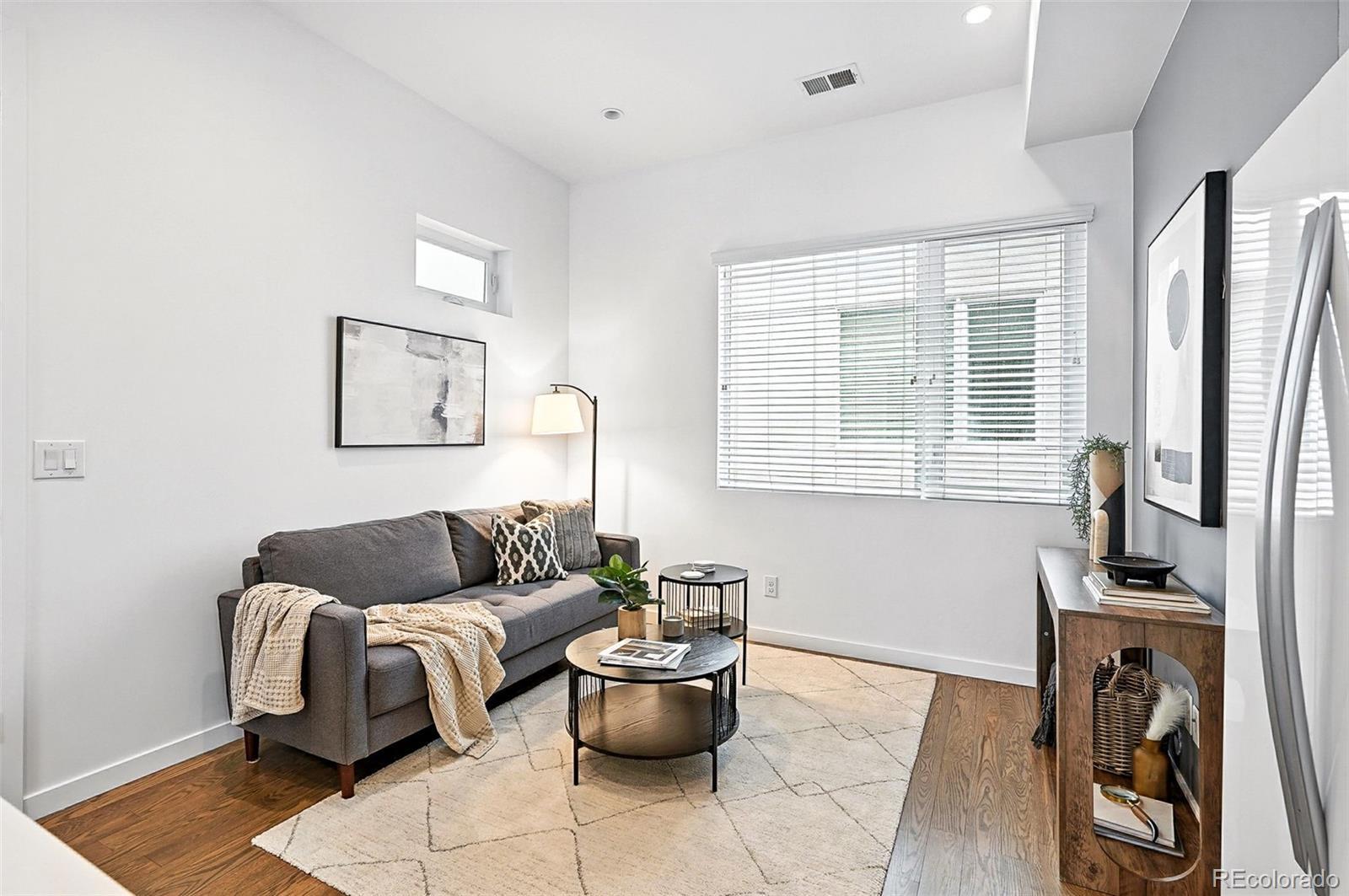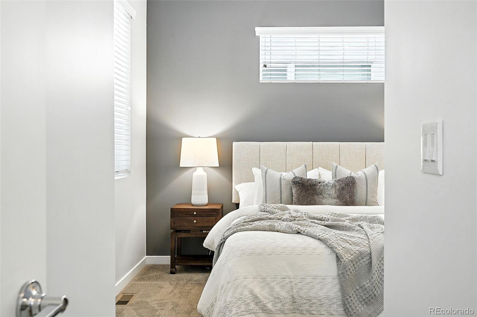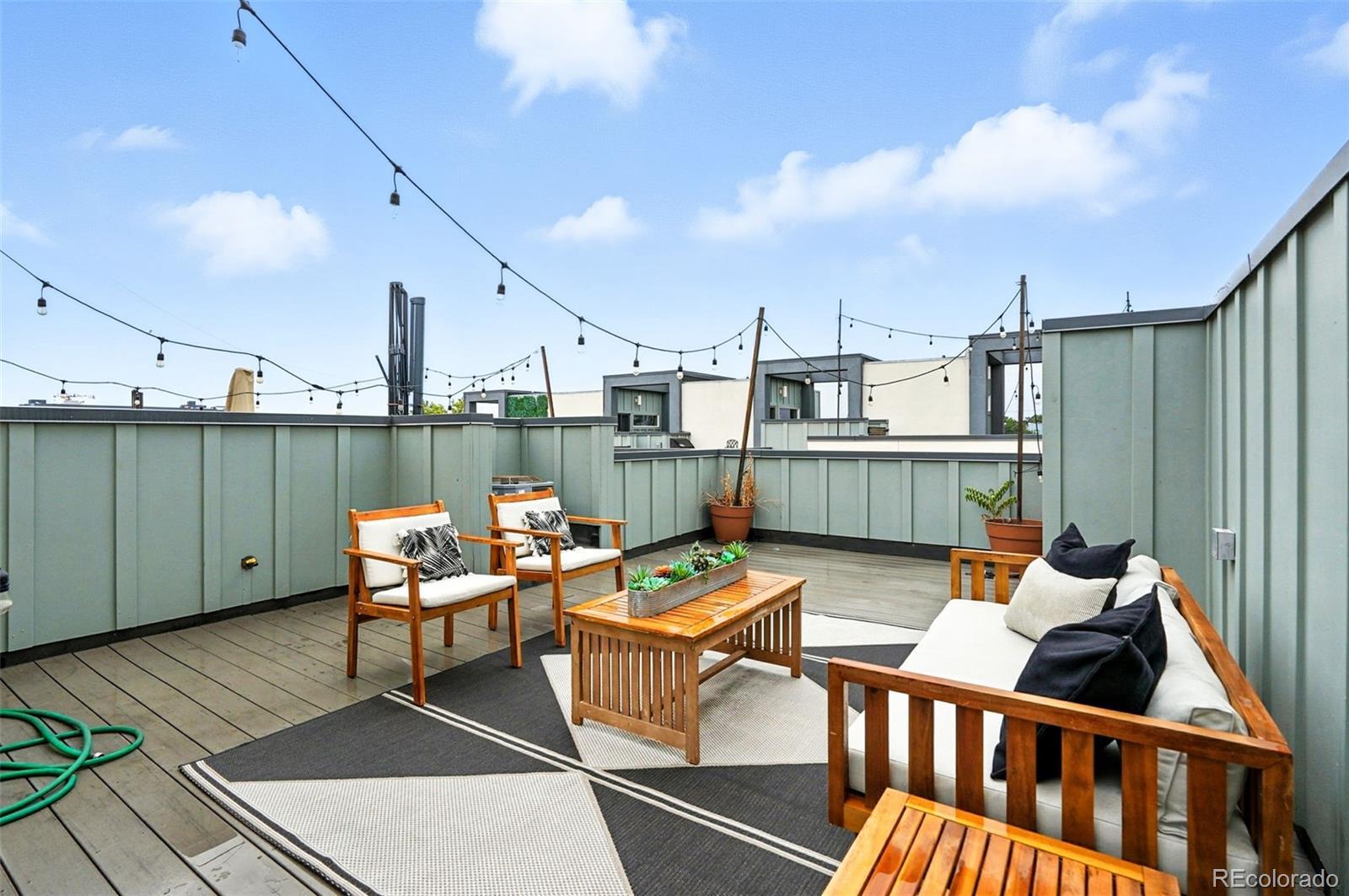 Welcome to your dream townhome in the heart of Sloan’s Lake! This modern 2-bedroom, 4-bath home offers soaring 10-foot ceilings, abundant natural light, and a rare two-car attached garage. The open-concept main floor features a chef’s kitchen with a large quartz island, pantry, gas range, and high-end appliances, plus hardwood floors and a built-in wet bar, perfect for entertaining. Upstairs, you’ll find two spacious bedrooms, including a serene primary suite with double closets and en suite bathroom with a dual vanity. Laundry is conveniently located on the same level, with washer and dryer included. The highlight? A private rooftop deck with sweeping city and mountain views, designed to accommodate a hot tub and ideal for relaxing or hosting guests. Energy-efficient upgrades like a tankless water heater add even more value. All this in an unbeatable location: just blocks from Sloan’s Lake, Mile High Stadium, light rail, restaurants, cafes, and minutes to I-25 and downtown Denver. Don’t miss this one, schedule your private showing today or explore the immersive 3D tour at www.3121w18thAve.com.