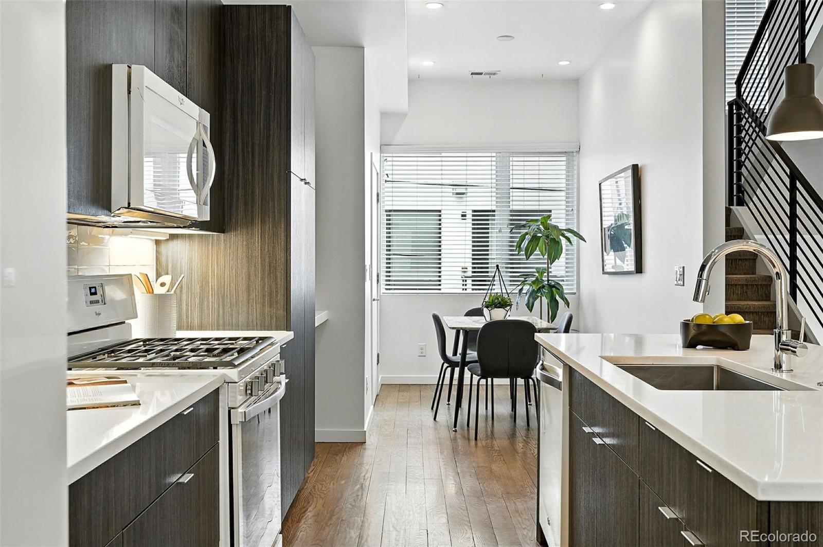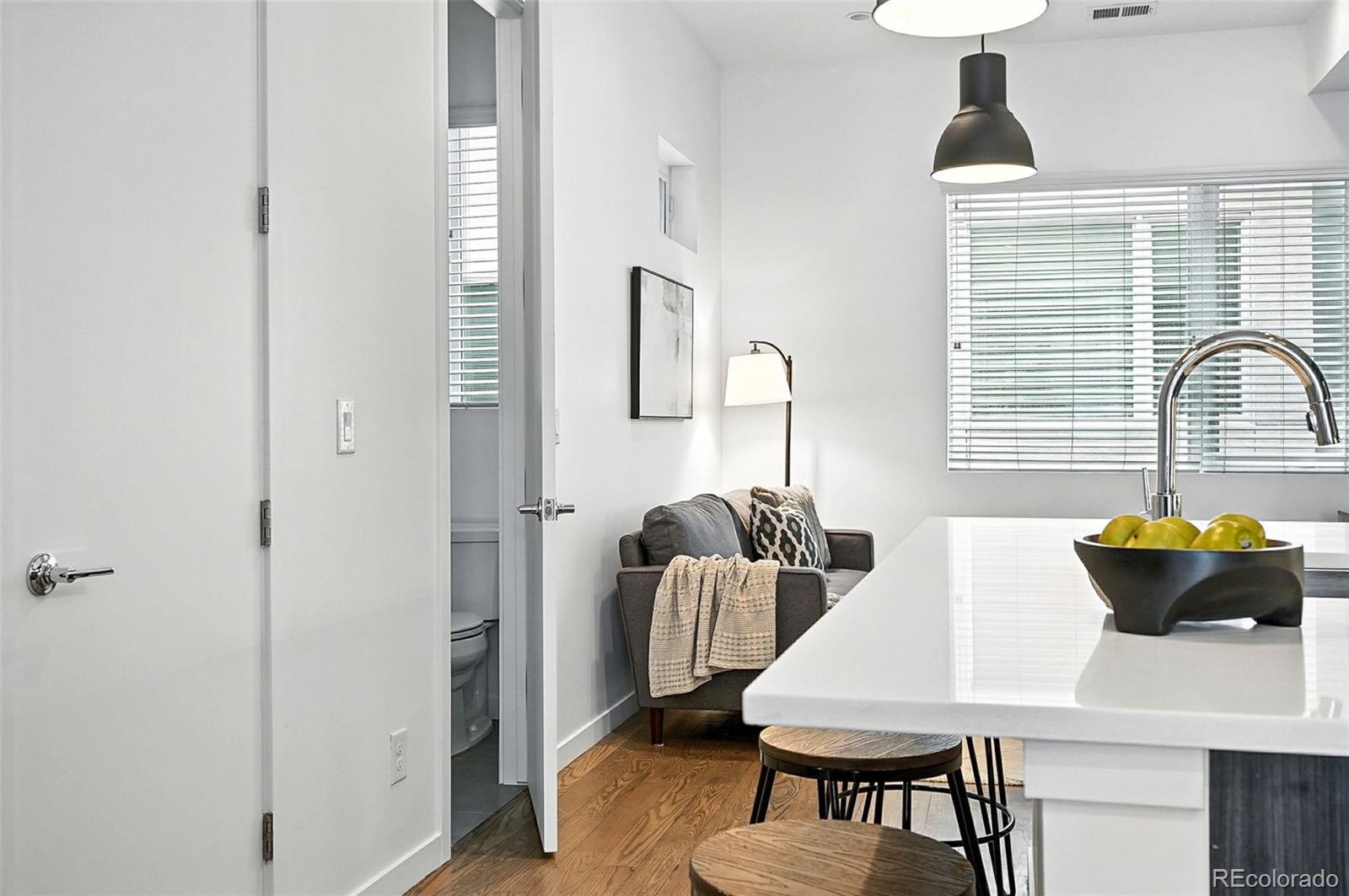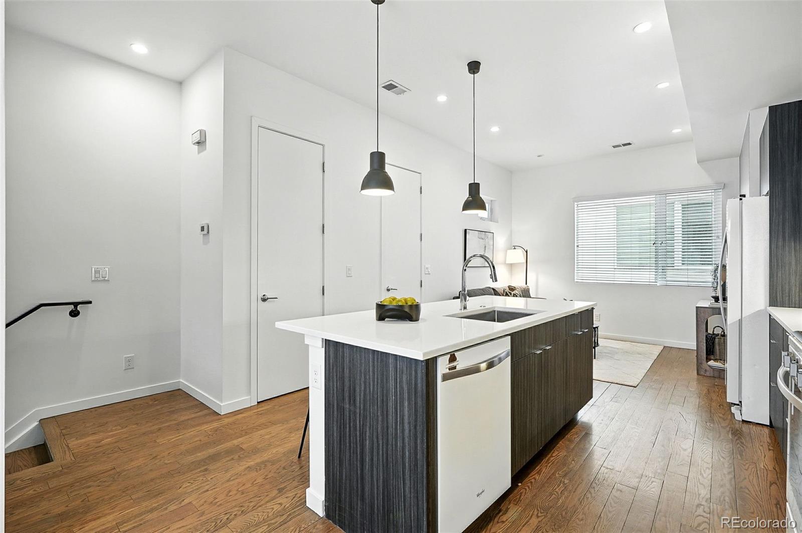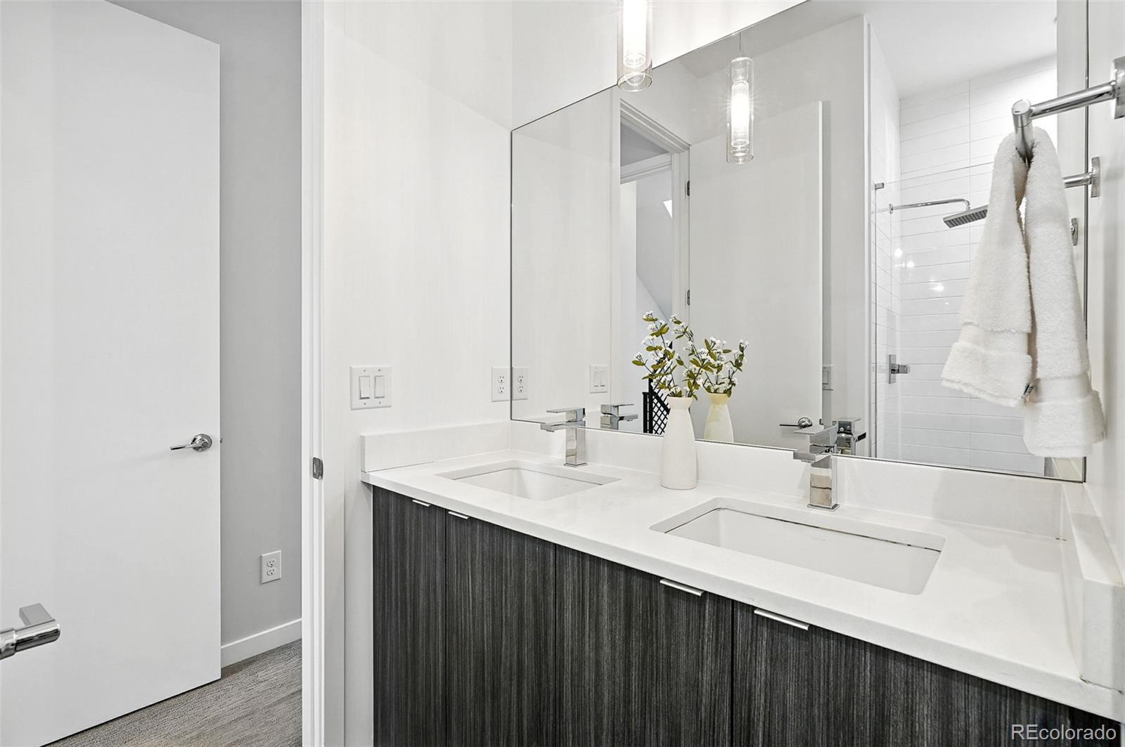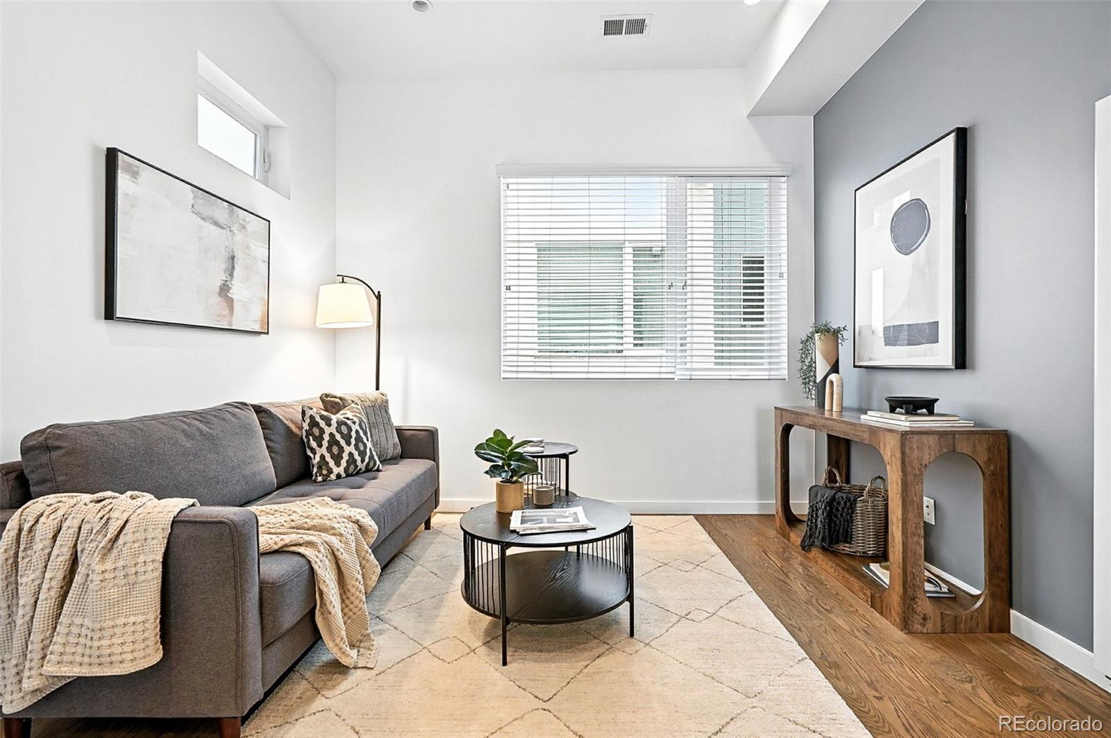 Welcome to your dream townhome in the heart of Sloan’s Lake! This modern 2-bedroom, 4-bath home offers soaring 10-foot ceilings, abundant natural light, and a rare two-car attached garage. The open-concept main floor features a chef’s kitchen with a large quartz island, pantry, gas range, and high-end appliances, plus hardwood floors and a built-in wet bar, perfect for entertaining. Upstairs, you’ll find two spacious bedrooms, including a serene primary suite with double closets and en suite bathroom with a dual vanity. Laundry is conveniently located on the same level, with washer and dryer included. The highlight? A private rooftop deck with sweeping city and mountain views, designed to accommodate a hot tub and ideal for relaxing or hosting guests. Energy-efficient upgrades like a tankless water heater add even more value. All this in an unbeatable location: just blocks from Sloan’s Lake, Mile High Stadium, light rail, restaurants, cafes, and minutes to I-25 and downtown Denver. Don’t miss this one, schedule your private showing today or explore the immersive 3D tour at www.3121w18thAve.com.