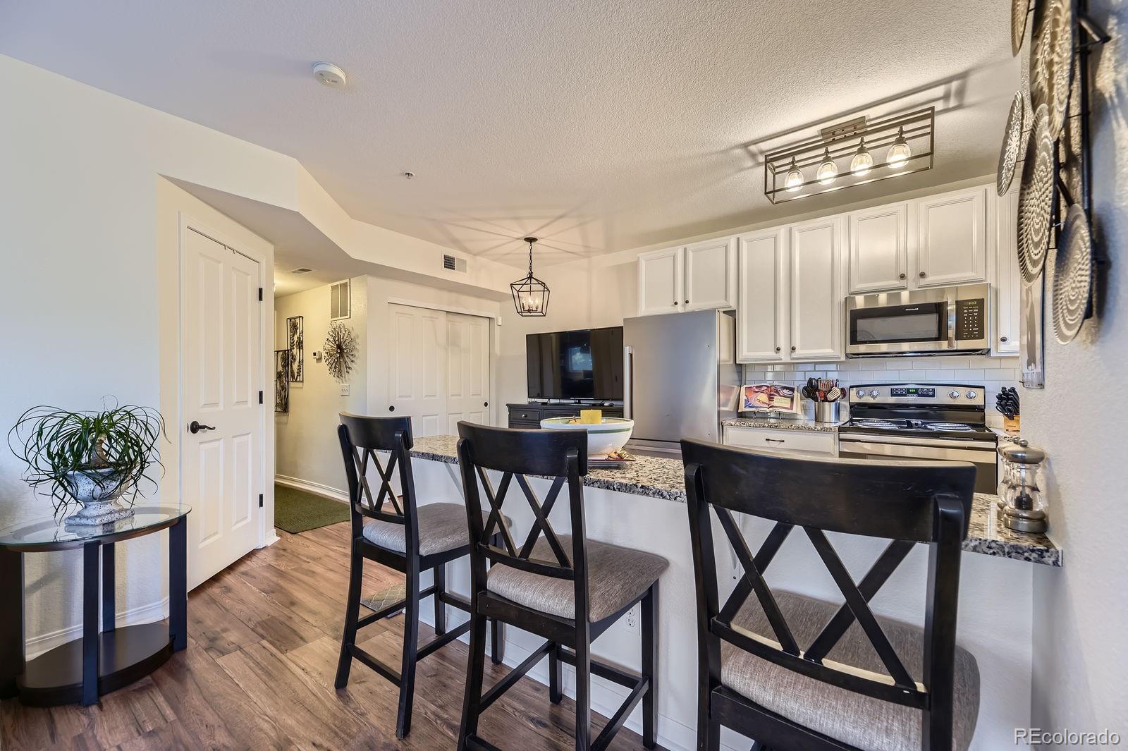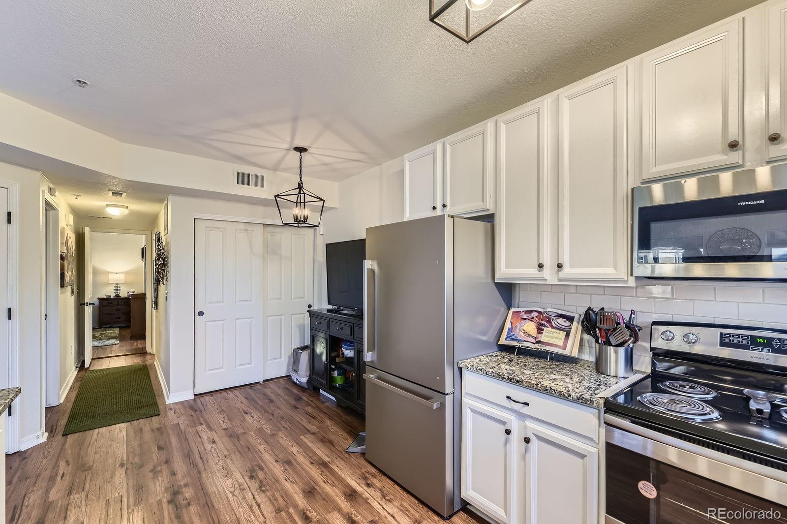 Begin your next chapter with this charming, newly renovated 2-bedroom, 1-bathroom condo nestled in thevibrant community of Aurora, CO. Perfectly sized with 862 square feet of modern living space, this condo offers comfort and style without breaking the bank. Remodeled and updated throughout with luxury vinyl planks in every room but the bathroom. The heart of the home features a beautifully updated kitchen that opens up to a cozy living area, perfect for relaxing after a day's work or hosting joyful gatherings. The primary bedroom, along with an additional bedroom, provides peaceful private spaces with ample room and natural light. Located near essential amenities, this condo is a true gem for convenience. Rare unit E with both a garage and storage underneath the unit. Conveniently located near several grocery centers for all your grocery needs, ensuring easy access to essentials. Engage with nature and unwind at nearby Appaloosa Park, offering various recreational opportunities. Plus, if shopping is your escape, Southlands Mall, less than a mile away, has you covered with its array of shops and eateries. Living here means you are also well connected. Easy access to public transportation makes commuting a breeze, whether it's for work or pleasure. For those who appreciate a lifestyle of ease and access, combined with the charm of Aurora, this condo is waiting for you to start your new adventure. Don't just take our word for it, come see for yourself why this is not just a house, it's your next home!