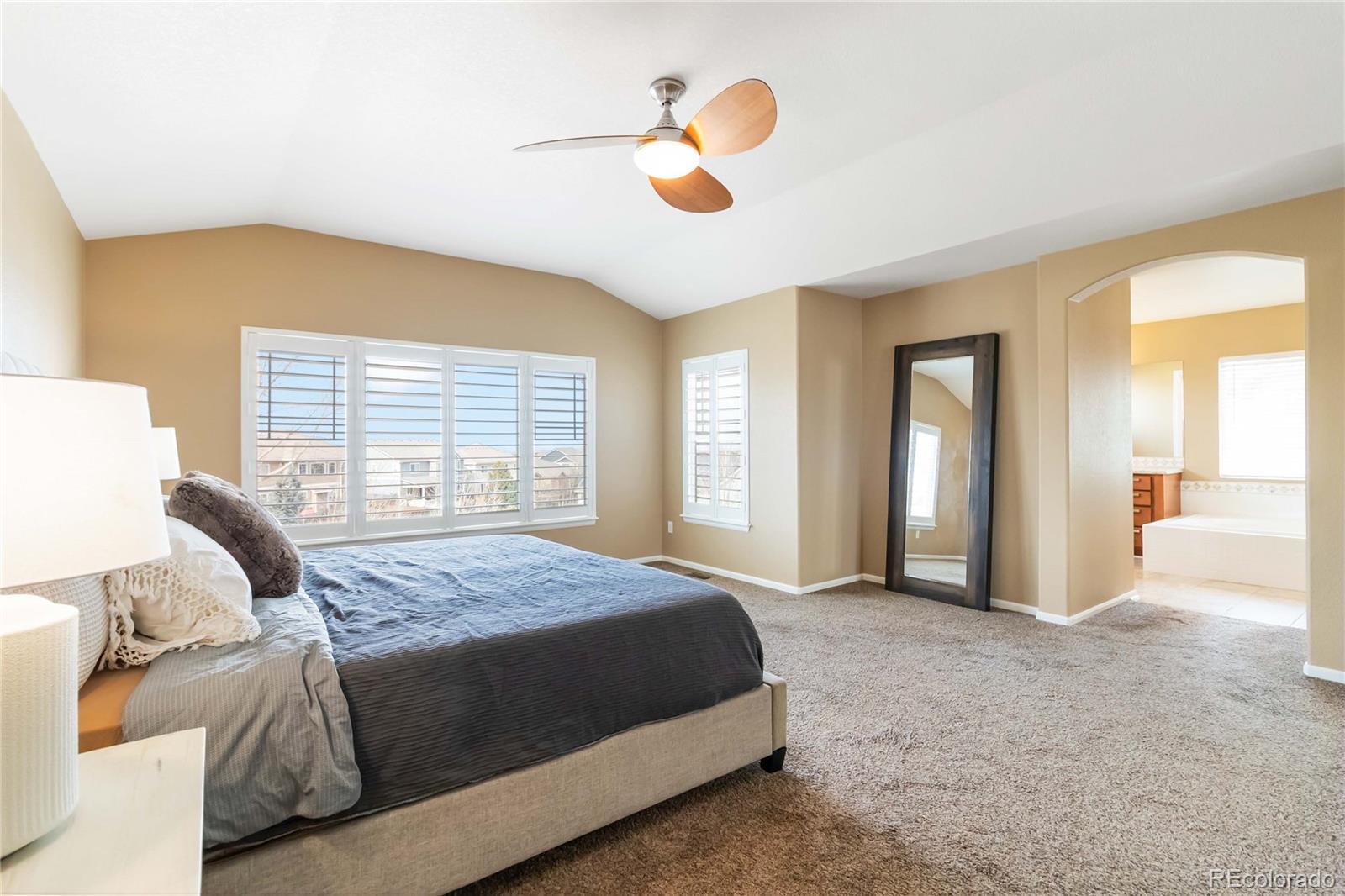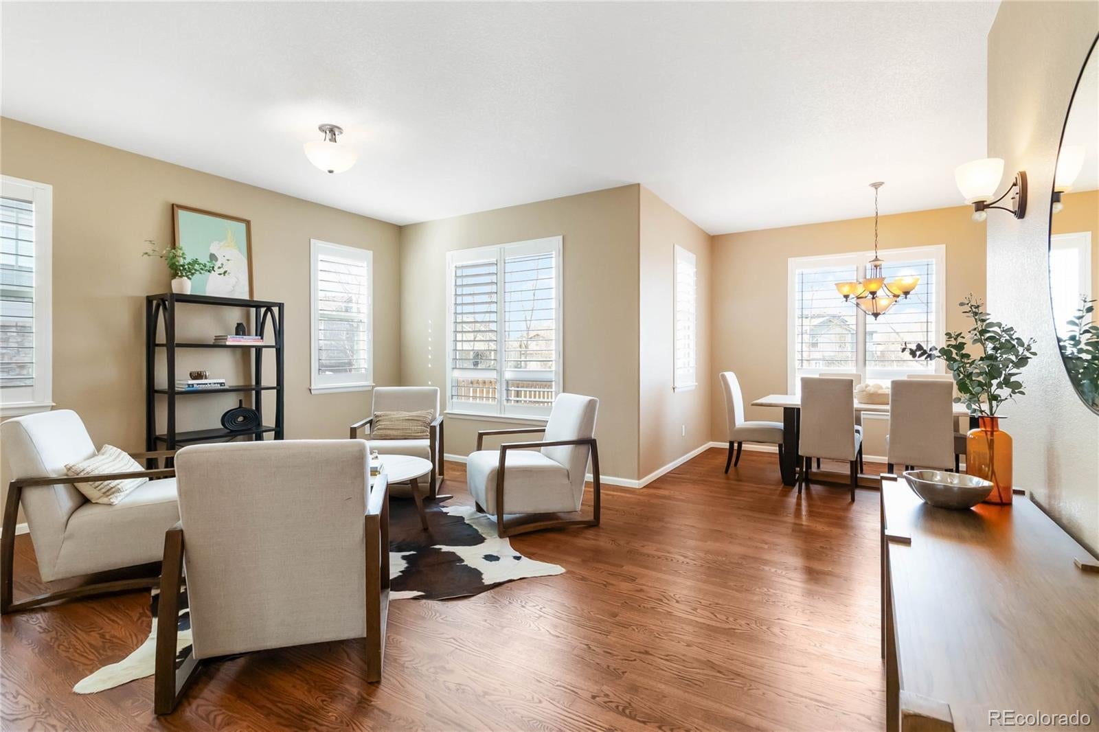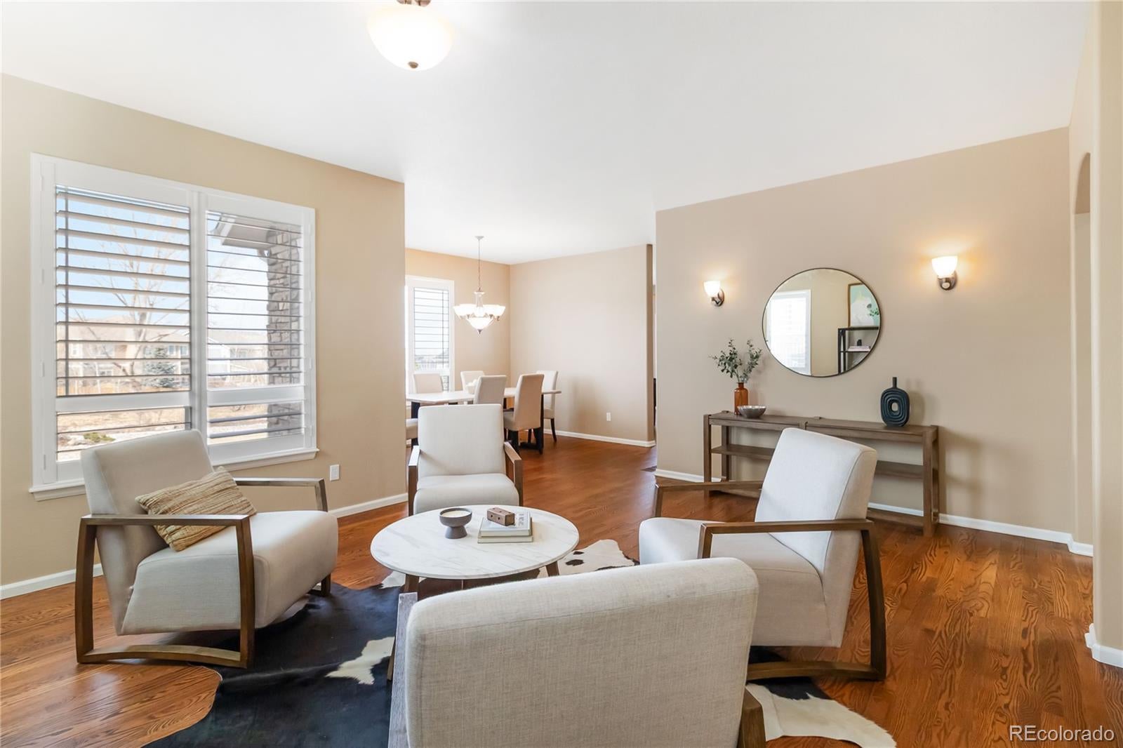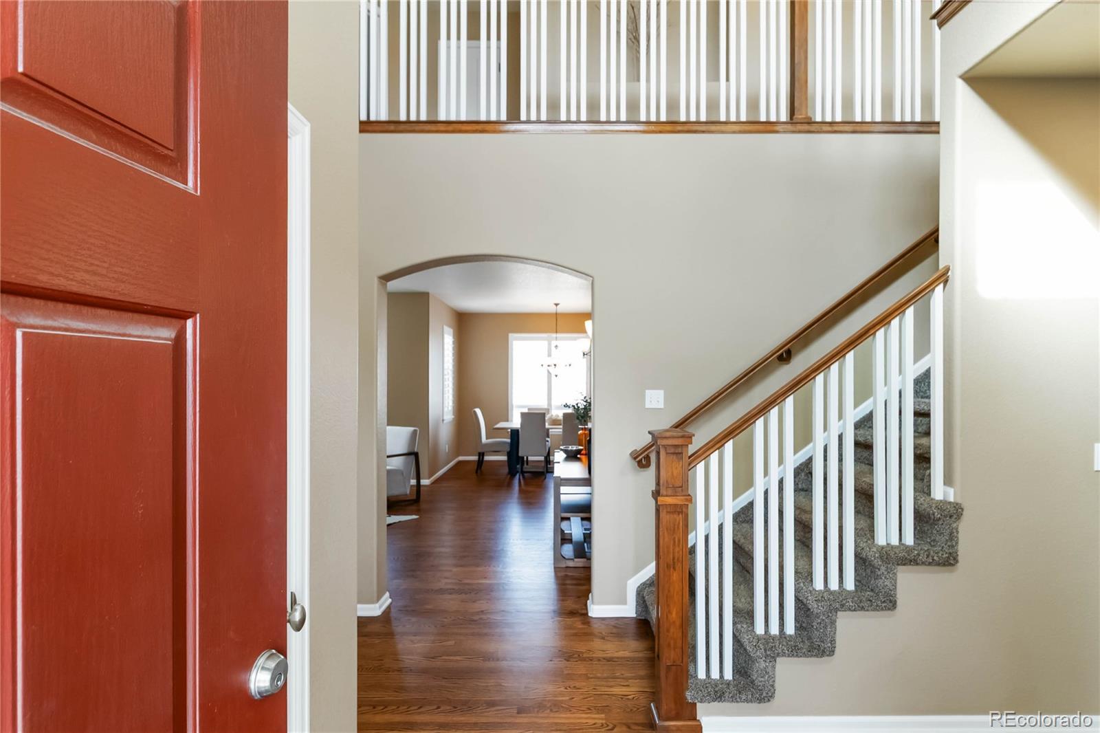 Welcome to this gorgeous Beacon Point home featuring an open floor plan, soaring ceilings, plantation shutters and a park-like backyard. When you step inside, you will realize that everything is a just a little bigger at 6525 S Newcastle Way. The spacious gourmet kitchen offers granite countertops, a center island, pantry, and rich maple cabinetry, complemented by beautifully refinished solid hardwood floors in the kitchen, living room, hallway and foyer. The large and inviting family room includes a gas fireplace, while the generous living and dining areas provide ideal spaces for both everyday living and entertaining. A large main-floor study/den offers flexibility as a home office or potential non-conforming fifth bedroom. Upstairs, the primary suite is a true retreat, featuring a five-piece bath with a relaxing soaker tub and an impressive 13' x 13' walk-in closet with a window. Two additional bedrooms, a secondary bathroom and a special bonus space (a huge loft overlooking the foyer) finish off the top level. The professionally finished basement adds even more living space with a bedroom, bathroom, an unfinished, but framed, workout space, and a wide open living area with a custom wood slat wall. Step outside onto a spacious stamped concrete patio—perfect for entertaining and barbecues—overlooking a massive backyard (almost 1/2 acre) with mature trees and plenty of privacy. The yard is a true oasis and is one of the many reasons you will fall in love with this home. Ideally located within walking distance to neighborhood parks and Aurora Reservoir with free walk-in access, and just minutes from Southlands Mall shopping, dining, and movie theater. Easy access to E-470 is icing on the cake. NEW ROOF 2022, KITCHEN APPLIANCES 2023, FURNACE 2020, WATER HEATER 2022