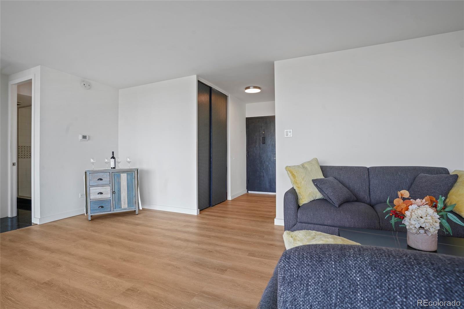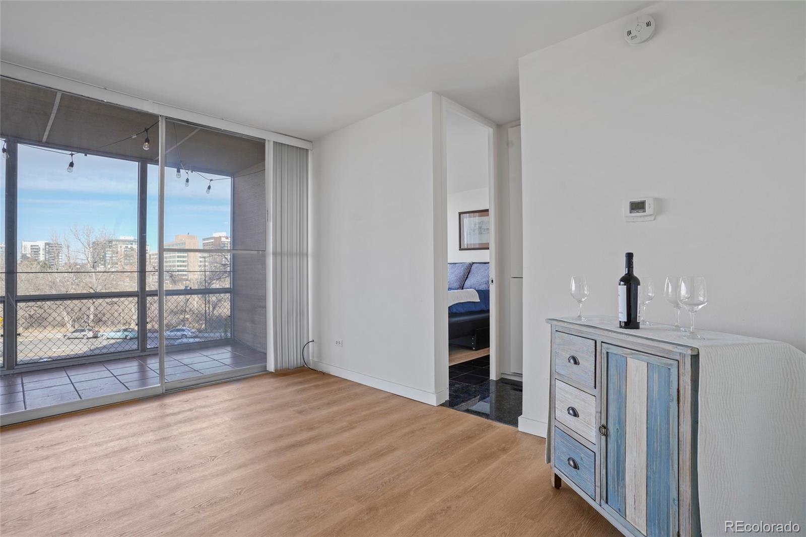 Rare opportunity to own a creek-side condo in Cherry Creek for under $325,0! Discover #307 at Cherry Creek Tower. Located along the south bank of Cherry Creek, this is the perfect location for your active lifestyle. Adjacent to jogging and bike paths, you are within minutes of all your favorite Cherry Creek shopping, dining, and galleries. Venues. Unit 307 offers one of the few one-bedroom units with an outdoor, covered lanai. The residence has a welcoming ambiance with distinctive finishes, newer luxury vinyl flooring, and abundant natural light filling the home. Featuring a galley kitchen with new countertops and new cabinet doors. The updated bath includes a European glass shower with designer upgrades. The spacious bedroom with its floor-to-ceiling windows creates an inviting retreat from your day. Your HOA fees include your heating, cooling, and on-site maintenance. The building is secured with a state-of-the-art security system, allowing you to access it using your smartphone. The residence includes one deeded off-street parking space and access to the impressive outdoor gardens with its pergola, grilles, and pool. Additionally, there is a full laundry suite and a well-appointed exercise room. Your unit includes a separate storage area located on the basement level. Cherry Creek Tower recently installed EV stations. With bike paths, trails, and shopping outside your front door, this location is perfect for all you love about Cherry Creek and your Colorado lifestyle.