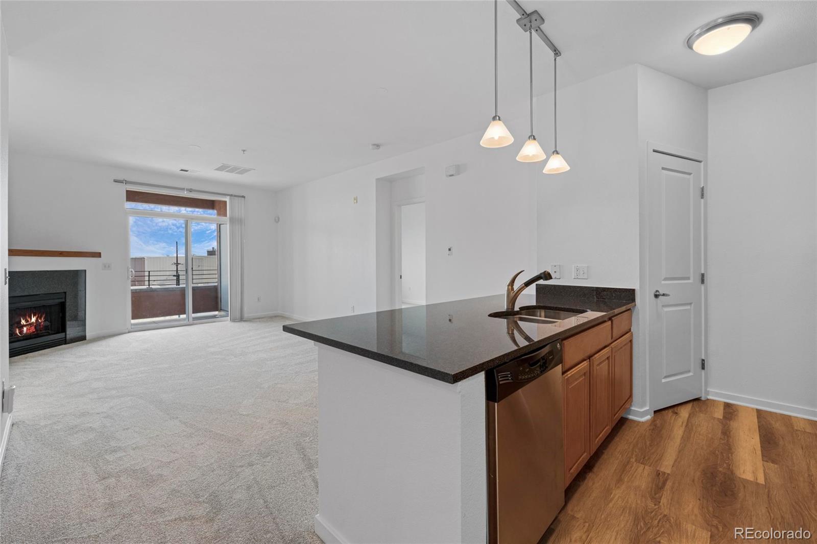 You'll love this convenient North Park Hill location, allowing you to walk to light rail, 4 Noses Brewing, the popular Neko Ramen & Rice, Prodigy Coffeehouse, Starbucks, and so much more. This beautifully updated 2 bedroom, 2 bathroom condo with an urban vibe is move-in ready and boasts new carpet, new LVP flooring, all new paint, new windows, and freshly stained woodwork. Attractive modern cable railing provides a uniqueness not found in many homes. Unwind in your open living room while enjoying the glow from the corner fireplace. Enjoy cooking in your impressive kitchen featuring stainless steel appliances, slab granite counters, plenty of cabinets (the lower cabinets have slide-out shelves), a breakfast bar, a large walk-in pantry, and an additional storage closet. Wind down in your spacious primary bedroom with dual closets (one is a walk-in closet) and an en suite bath with dual sinks, a large soaking tub, and linen storage. Appreciate the flexibility of the large secondary bedroom, which offers extra space--perfect for a study area, a home office, a sitting/reading area, or a play area within the bedroom. Relax on your covered balcony with views of the city--perfect for the beautiful Colorado days and evenings. Other features of this wonderful home include: easy access to I-70, Colorado Boulevard, downtown Denver, RiNo, Cherry Creek, and DIA, an additional storage closet off the covered balcony, a nearly-new water heater (replaced at the end of 2022), and a private location within the community. The HOA amenities include an outdoor pool, fitness area, and clubhouse.