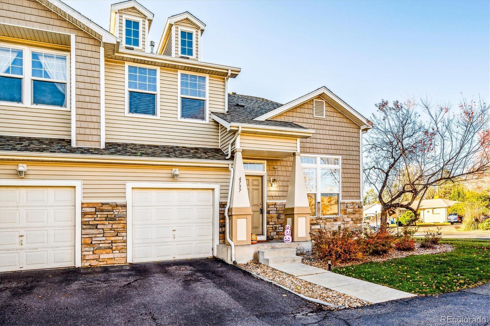 Welcome home to zero-maintenance living in this end-unit condo in Garrison Village, this is 4737 Flower Street. Fresh interior paint, abundant natural light, and beautiful laminate hardwood floors greet you upon entry and unfold to an open floor plan. Home cooks will love preparing meals in the eat-in kitchen, featuring new black appliances (2022), a pantry, and ample cabinetry. Step outside to the charming, fenced-in patio, the ideal spot for morning coffee or relaxing evenings. Upstairs, all new carpet extends into two bedrooms. The primary includes a spacious walk-in closet and shares a bathroom with the second bedroom. Additional features of this turnkey residence include updated fixtures throughout, in-unit laundry upstairs (W&D included), a sizeable crawl space for storage, and an attached 1-car garage with tons of built-in cabinetry. Garrison Village features a community park and is only minutes from Jefferson County schools, shopping, dining, public transportation, and major roadways. This home is ready for its next chapter; all it needs is you.