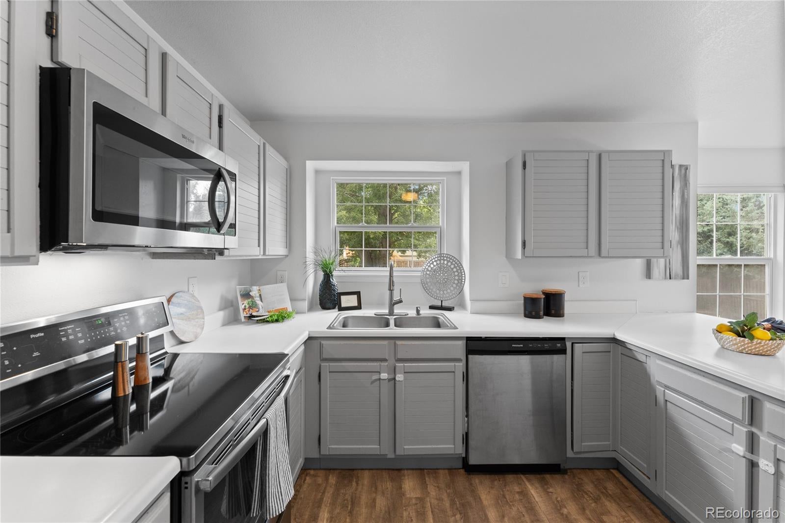 Welcome to this beautifully remodeled two-story home in Rockrimmon, offering a perfect blend of modern updates and classic charm in one of Colorado Springs’ most desirable neighborhoods. With thoughtful renovations throughout, this home is move-in ready! Inside, you’ll find a sleek, modern color palette accented by newer luxury vinyl flooring and newer carpet, creating a warm yet contemporary feel in every room. The kitchen has been modernized, featuring stylish finishes, and modern appliances that make cooking and entertaining a delight. The bathrooms have also been refreshed, blending functionality with clean, updated design. The layout is both spacious and inviting, with large living areas filled with natural light. Step outside to the fully fenced backyard, perfect for pets, entertaining, or simply enjoying the Colorado sunshine in privacy. Rockrimmon is known for its established community feel, beautiful mountain views, and convenient location near trails, shopping, dining, and I-25 for quick access to downtown Colorado Springs. With stylish updates, durable flooring, modern amenities, and outdoor space ready for your enjoyment, this home is a rare opportunity to own a turnkey property in Rockrimmon. Schedule your private showing today and discover all the comfort and convenience this home has to offer!