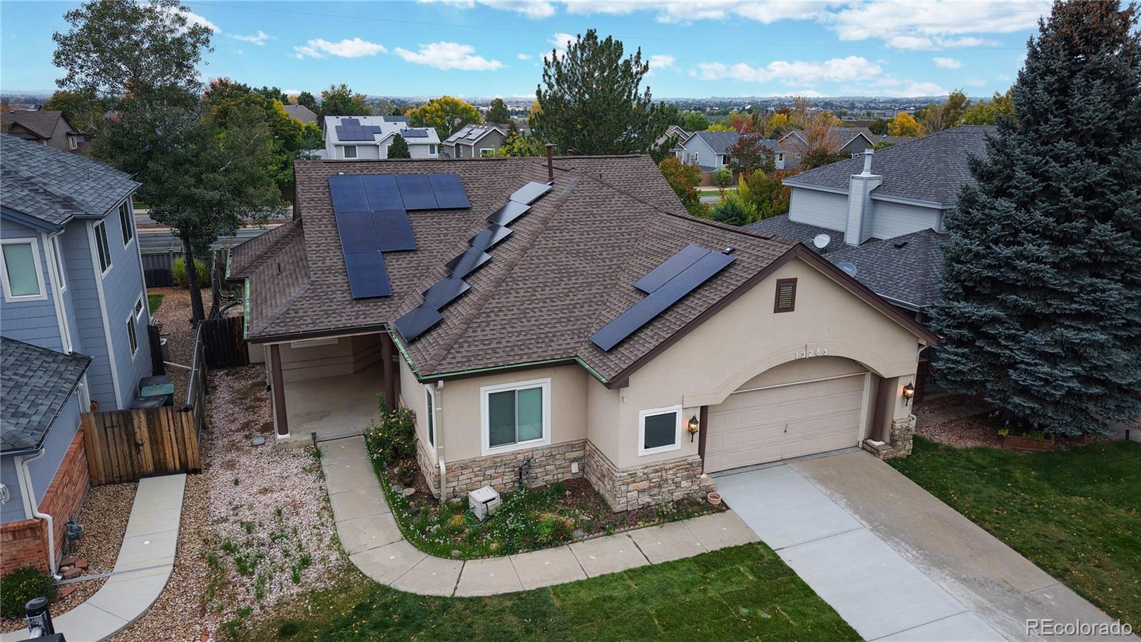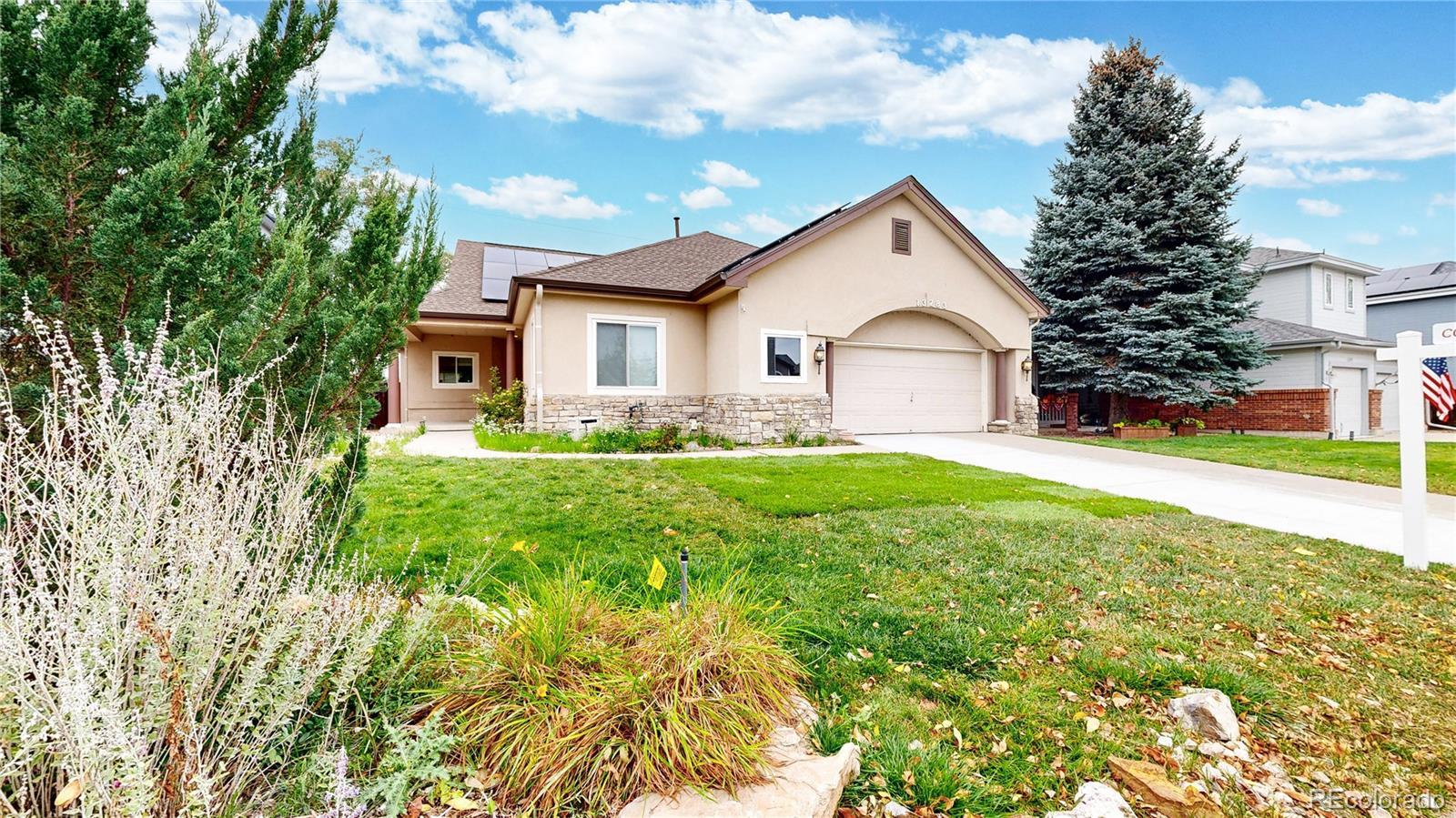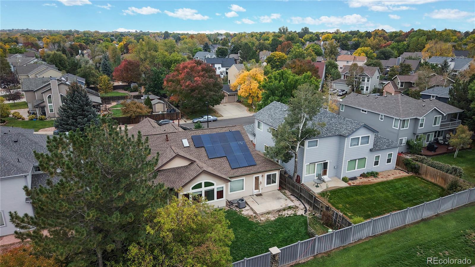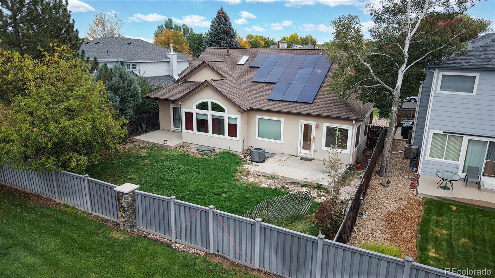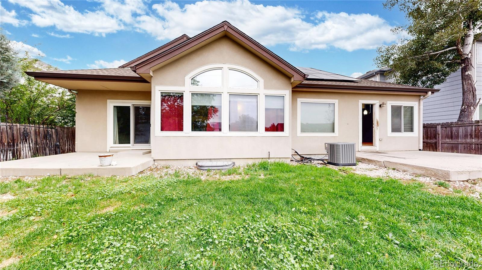 $51k PRICE REDUCTION! MUST SELL! A large ranch style home with over $3,500 square feet situated on the street leading to a cul-de-sac. This 3-bedroom, 3-bath ranch style home needs some TLC, offered at a great price as an opportunity to build a large sweat equity. The roof is new from 2024 with “owned” solar system for you to take financial advantage of energy cost savings plus over production for years to come! Sewer line is just repaired/replaced to address the belly discovered by pre-listing sewer line inspection. Before and After scope video and work receipt are available. Along with the sewer line construction, the south half of the driveway was replaced, and additional soil was brought in along with new sod. HVAC system was cleaned, serviced, and inspected as in working order. Main floor is Hardwood flooring, and basement has LVP throughout. All carpet flooring in the house has just been replaced. Seller is offering $3,000 concession for Buyer to purchase a new refrigerator as current refrigerator has a broken freezer drawer. This listing is sold in as-is condition. Interior paint quote is available for an interested buyer. Open floorplan with vaulted ceilings. The front living room can be easily enclosed as a home office. Granite Countertops and gas cooktop in the kitchen. Hunters Glen is a very popular neighborhood built along the scenic Thorncreek Golf Course and Hunters Glen Lake. HOA offers great amenities (club house, pool, tennis courts, basketball courts, beach ball volleyball courts, splashpads, and playgrounds), all located by the lake and many wonderful social events where you can meet your new neighbors. The area offers abundance of shopping, restaurants, and entertainment options, with convenient access to I-25 and C-470.