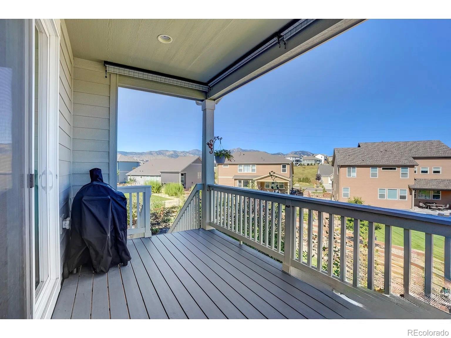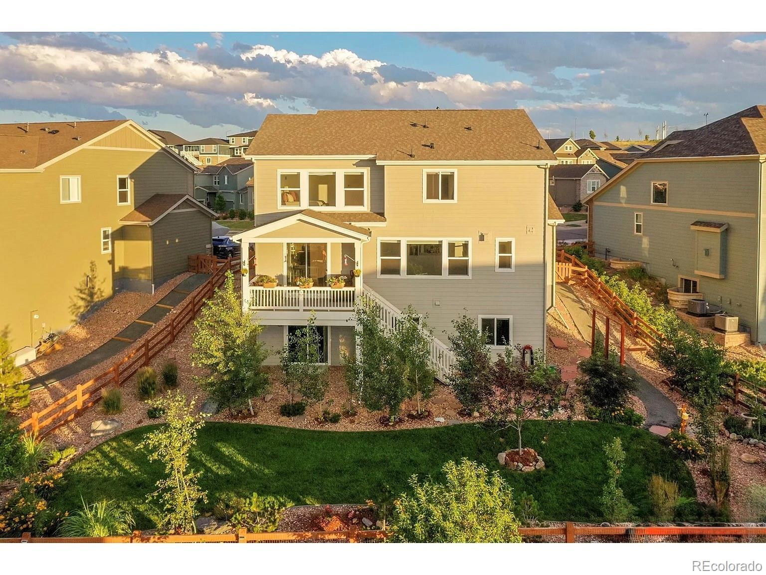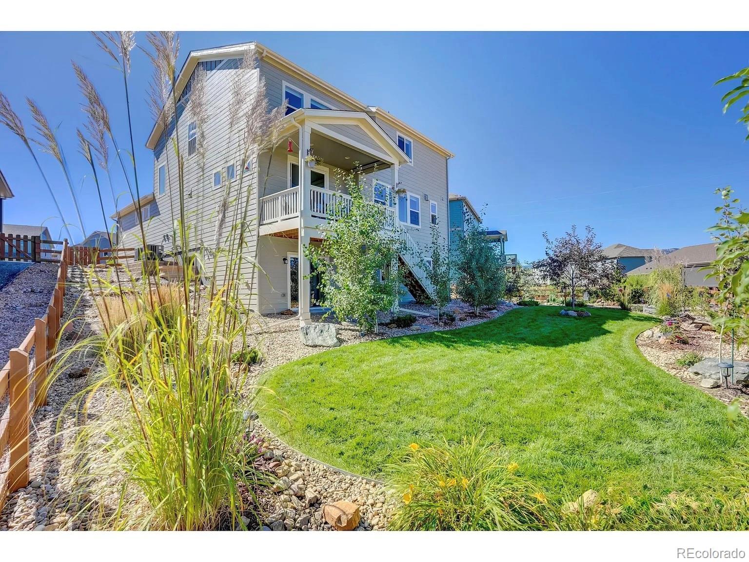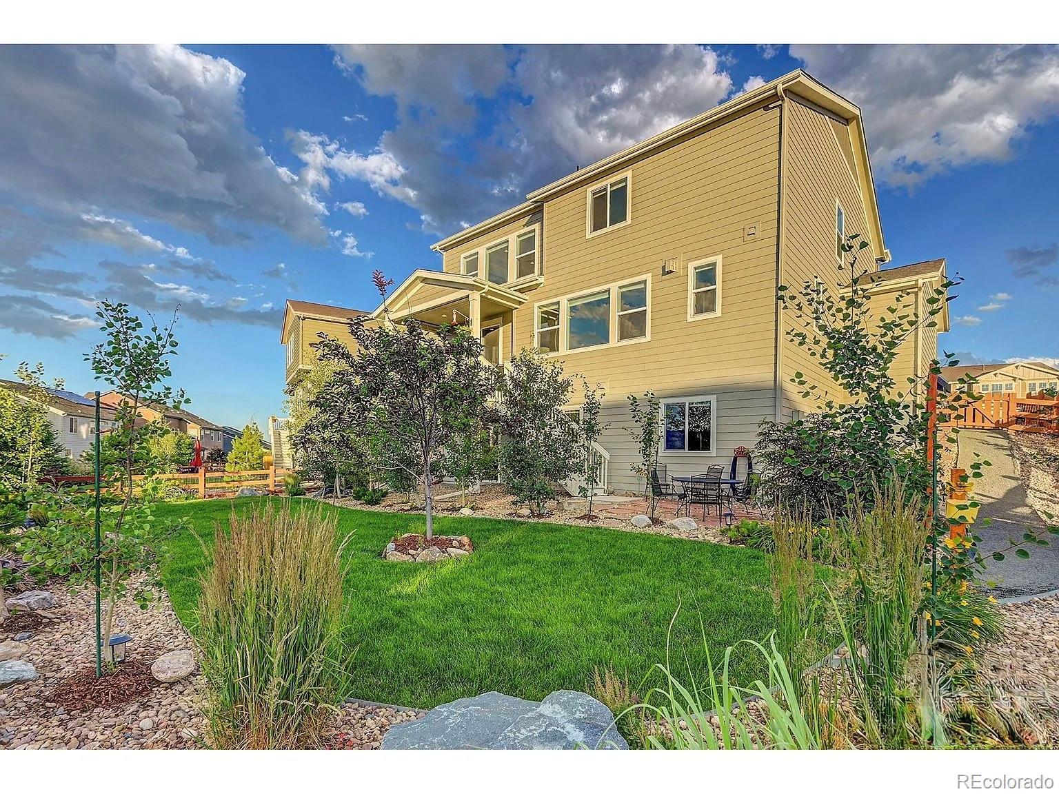Step into the heart of the thriving Candelas community and discover a home that truly stands out. This impressive 2-story residence greets you with a meticulously landscaped yard and a spacious 3-car split garage, blending curb appeal with everyday functionality. Inside, an open-concept layout creates a seamless flow for modern living. The kitchen, designed with the home chef in mind, boasts a large center island, gas range, stainless steel appliances, generous counter space, and abundant cabinetry. The adjoining dining area and great room set the stage for memorable gatherings. The primary suite offers a private retreat with stunning mountain views and breathtaking sunsets. Its spa-like 5-piece bath features dual vanities, a soaking tub, walk-in shower, and a roomy walk-in closet. Upstairs, you’ll find three additional bedrooms, a full bathroom, and a conveniently located laundry room. A full unfinished basement expands the possibilities—whether you envision a gym, media room, or extra bedrooms—with plenty of space left for storage. Outdoors, enjoy the Colorado lifestyle with a deck off the dining area, a walk-out patio, and a backyard perfect for barbecues, play, or peaceful evenings. Additional features include hardwood flooring throughout the main level, a cozy fireplace, abundant natural light, French-door office, wired sound system, and 8-foot entry door. Professionally landscaped front and backyards, along with a covered patio and deck equipped with sunshades, add to the appeal. The oversized garage with custom shelving maximizes organization and storage. Living in Candelas means more than just a beautiful home—you’ll enjoy top-tier community amenities that elevate your lifestyle. This property delivers comfort, style, and functionality at every turn. Don’t miss your chance to call it your own!
