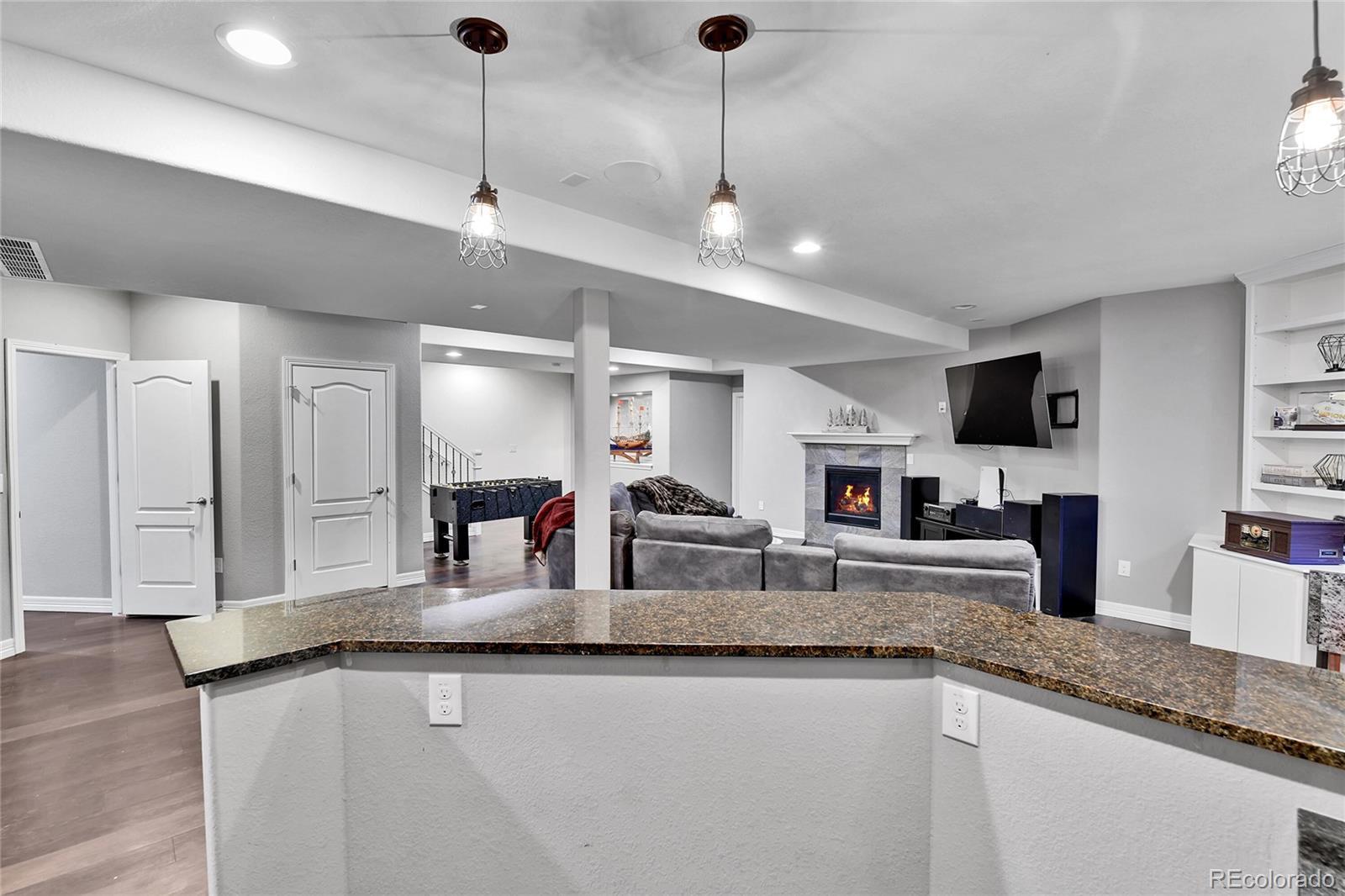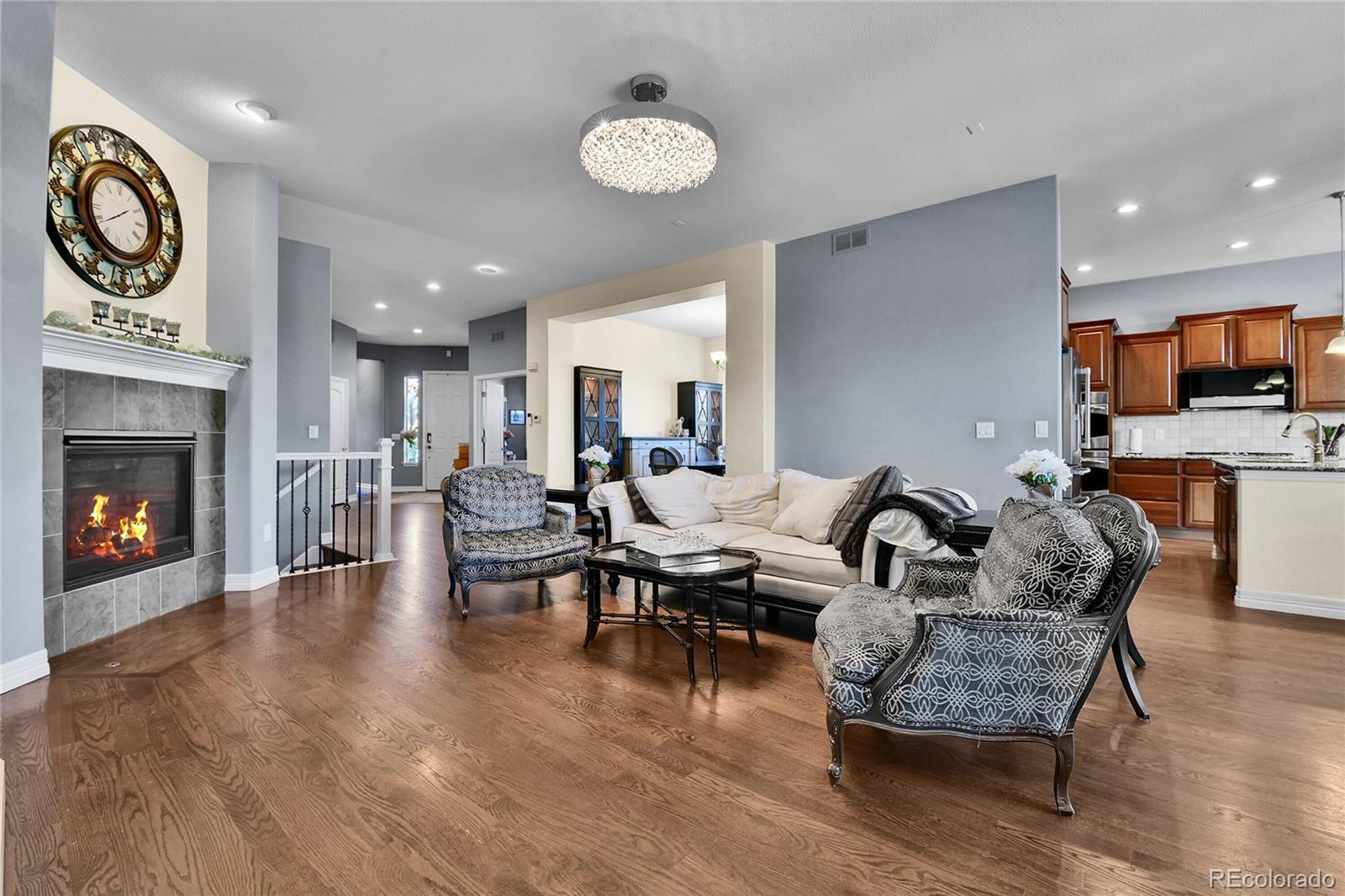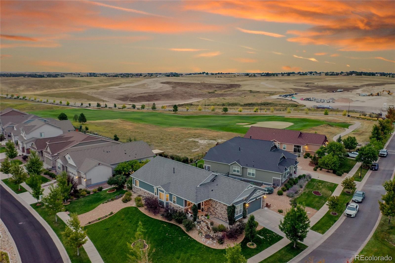 Stunning Ranch in Blackstone Country Club – Ideal for Multigenerational Living! Welcome to this beautifully maintained 4 bed, 5 bath + MF office ranch offering 5,144 square feet in the prestigious Blackstone Country Club community, located within the highly rated Cherry Creek School District! Positioned on an oversized, corner lot, the home greets you with a serene front water feature, covered front porch & beautiful, mature landscaping. The backyard is equally impressive with a flagstone patio leading to an expansive open air patio along w/ a covered patio designed for al fresco dining & entertaining complete with an electric fence for pets! Inside, the main level features an open-concept design highlighted by a spacious primary suite with spa-like en suite bath, a secondary bedroom with a private bath, a dedicated study & elegant gathering spaces. The chef’s kitchen includes a large island with seating, walk-in pantry & butler’s pantry opening seamlessly to the dining & living areas w/ designer-appointed finishes throughout! The newly finished basement transforms this home into the perfect multigenerational retreat offering a full second primary suite with nursery/office space, reading nook/library, designer appointed ¾ oversized bath, & an additional bedroom w/ en suite bath & walk in closet . The expansive family room w/ fireplace & wet bar seamlessly creates a second living space while the large storage area ensures practicality and convenience. Living in Blackstone means more than just a home — it’s a lifestyle! Enjoy exceptional golf, a recently renovated clubhouse w/ resort-style pool, fitness center, meeting rooms, and a calendar full of community activities! Golf course views, 25 minutes 2 DIA, 15 minutes 2 Park Meadows Malll, 5 minutes 2 Southlands Mall, dining, shopping & entertainment. 7 minutes to Costco, Whole Foods & Trader Joe’s! This lovingly cared-for, one-owner home combines luxury, functionality and resort-style community living! Welcome Home!
