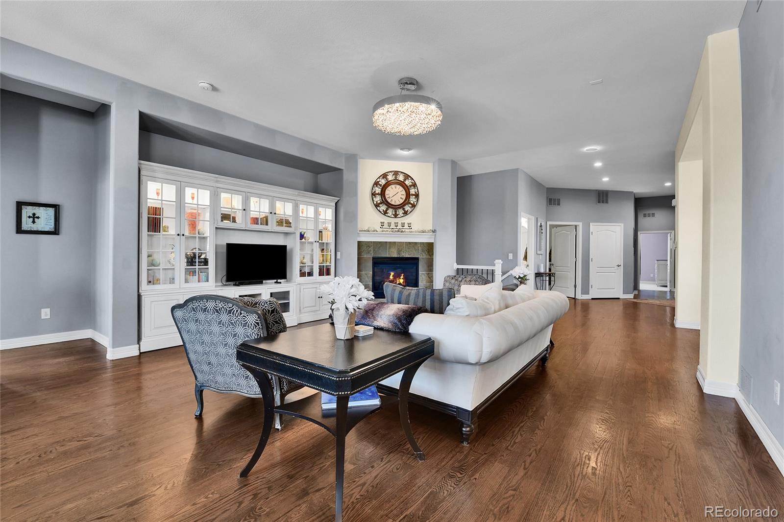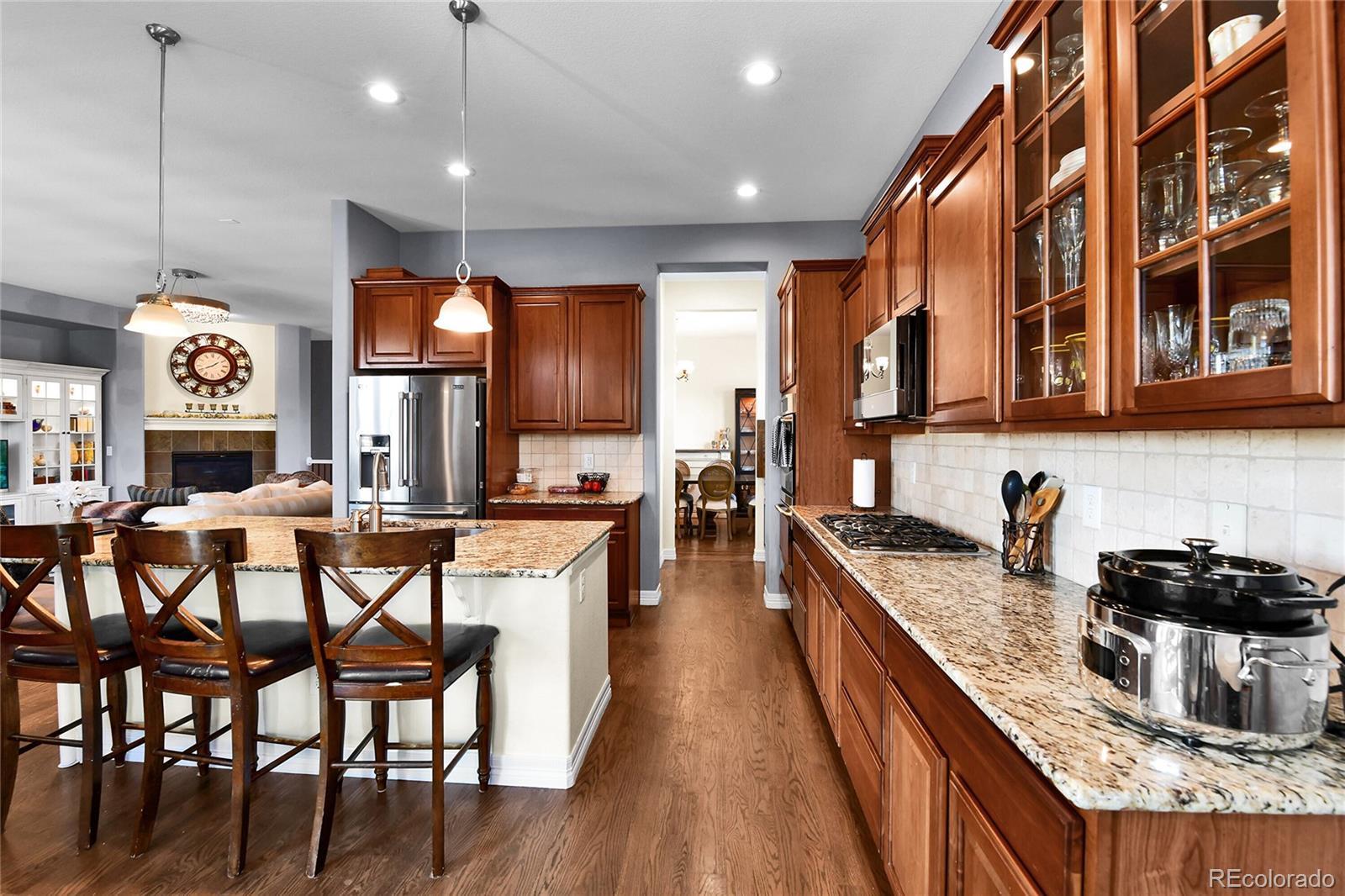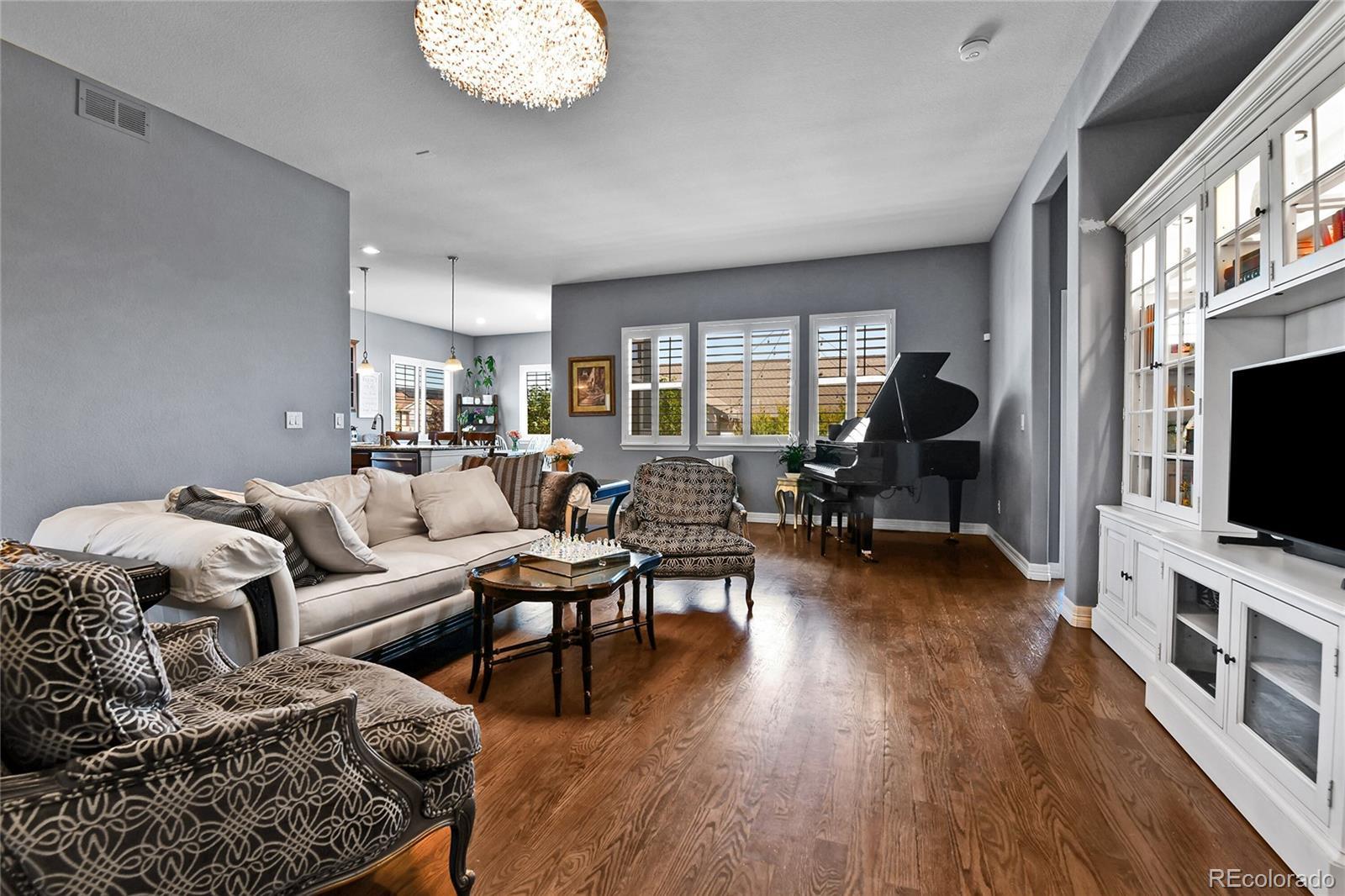Stunning Ranch in Blackstone Country Club – Ideal for Multigenerational Living! Welcome to this beautifully maintained 4 bed, 5 bath + MF office ranch offering 5,144 square feet in the prestigious Blackstone Country Club community, located within the highly rated Cherry Creek School District! Positioned on an oversized, corner lot, the home greets you with a serene front water feature, covered front porch & beautiful, mature landscaping. The backyard is equally impressive with a flagstone patio leading to an expansive open air patio along w/ a covered patio designed for al fresco dining & entertaining complete with an electric fence for pets! Inside, the main level features an open-concept design highlighted by a spacious primary suite with spa-like en suite bath, a secondary bedroom with a private bath, a dedicated study & elegant gathering spaces. The chef’s kitchen includes a large island with seating, walk-in pantry & butler’s pantry opening seamlessly to the dining & living areas w/ designer-appointed finishes throughout! The newly finished basement transforms this home into the perfect multigenerational retreat offering a full second primary suite with nursery/office space, reading nook/library, designer appointed ¾ oversized bath, & an additional bedroom w/ en suite bath & walk in closet . The expansive family room w/ fireplace & wet bar seamlessly creates a second living space while the large storage area ensures practicality and convenience. Living in Blackstone means more than just a home — it’s a lifestyle! Enjoy exceptional golf, a recently renovated clubhouse w/ resort-style pool, fitness center, meeting rooms, and a calendar full of community activities! Golf course views, 25 minutes 2 DIA, 15 minutes 2 Park Meadows Malll, 5 minutes 2 Southlands Mall, dining, shopping & entertainment. 7 minutes to Costco, Whole Foods & Trader Joe’s! This lovingly cared-for, one-owner home combines luxury, functionality and resort-style community living! Welcome Home!