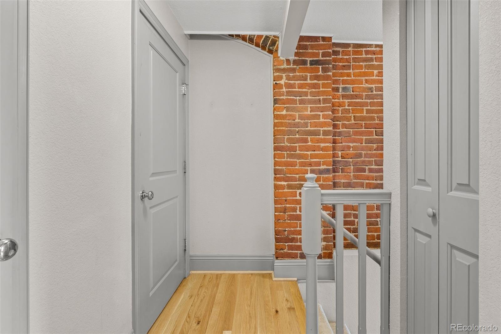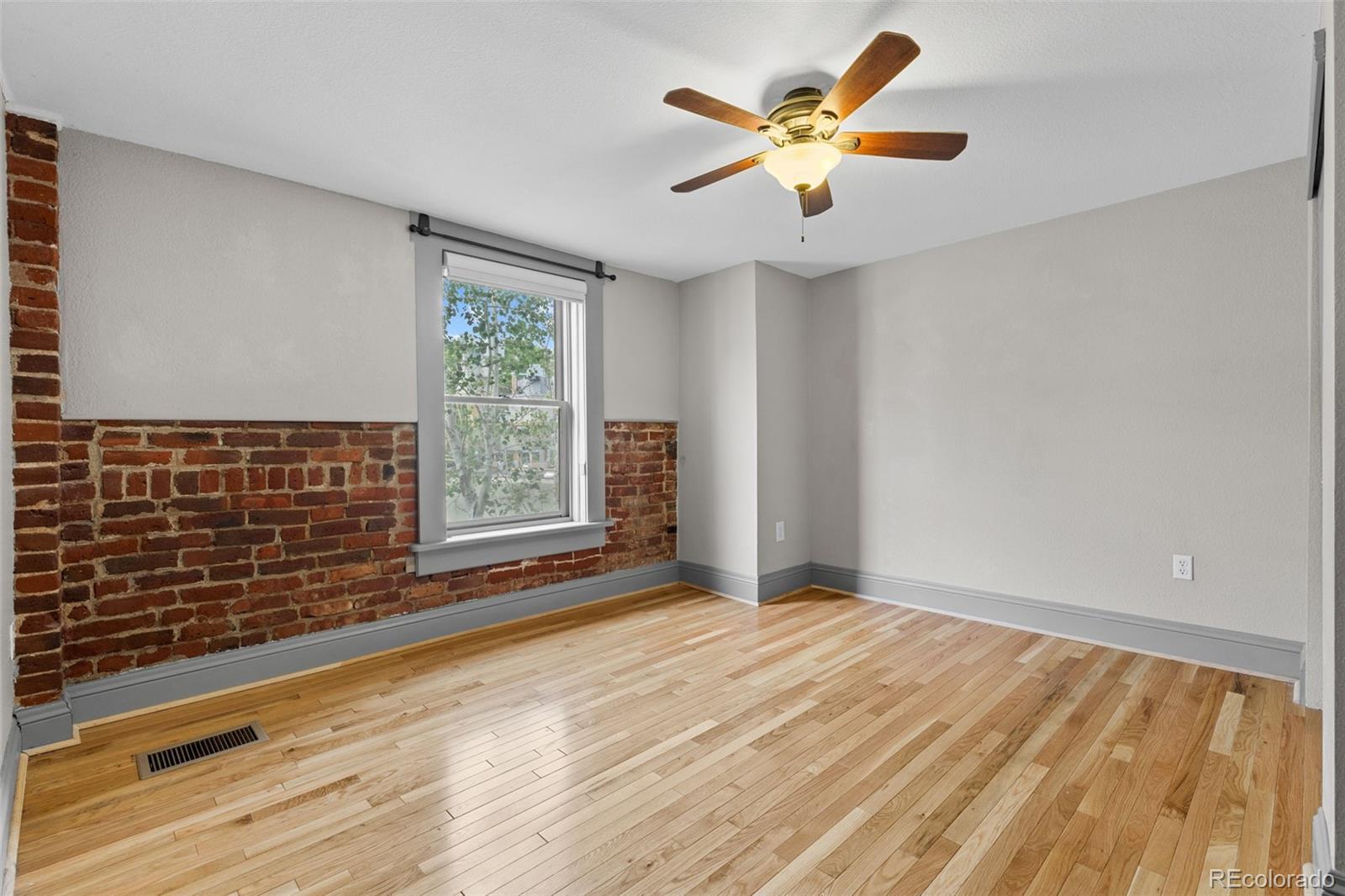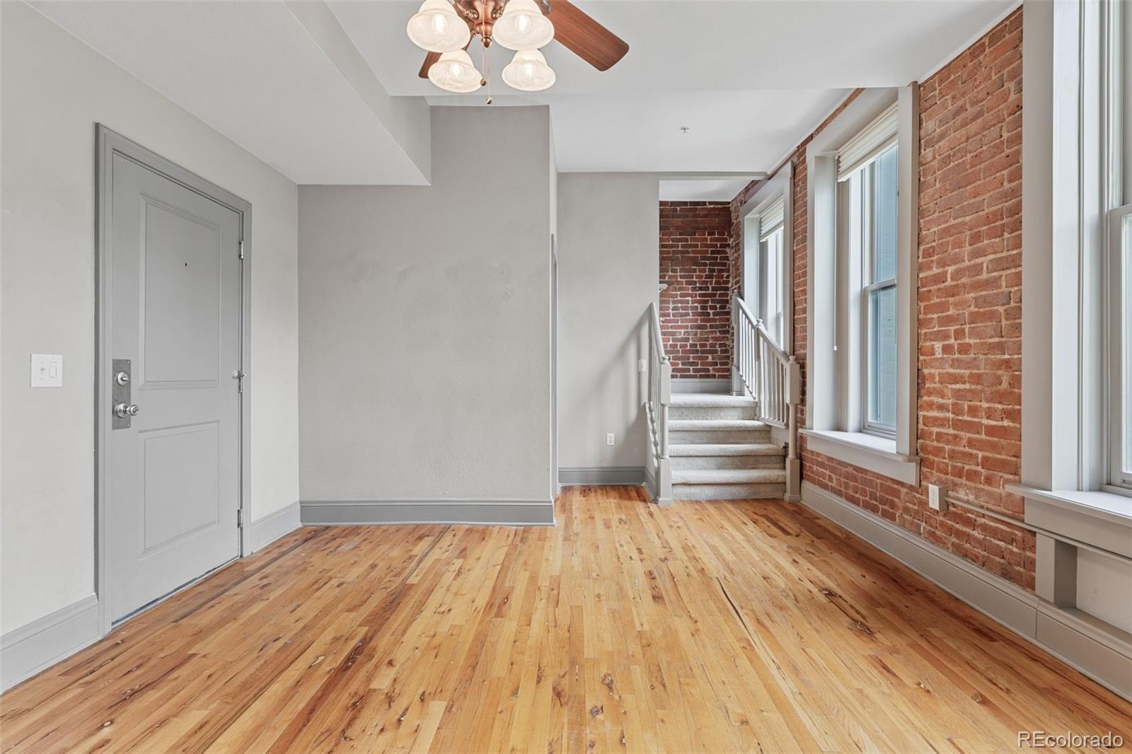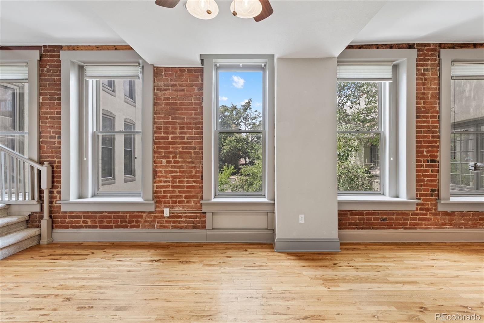 Right in the heart of it all! For those who want to be able to walk or bike to their favorite coffee shop, to catch the train, to the market, this one is for you! Inside the historic Weir Building, situated right on the corner of 32nd and Zuni, you'll enter at the sidewalk level and head up the stairs to this unit. One inside, you'll notice the grand ceilings and massive windows that let in tons of natural light. This unit overlooks the garden area, so windows open at night allow you to enjoy the Denver crisp evenings without the street noise. The kitchen with bar-top seating and concrete counters is situated to be able to enjoy guests while prepping snacks, and a full bath on the main level means you don't have to share all of your beauty secrets with your guests. Upstairs you'll find newer hardwood floors throughout both bedrooms and the hallway. A laundry closet with a newer, stacking laundry system is included and fits the space perfectly. The secondary bedroom has a sizeable closet that can be set-up with shelving or multiple hanging levels. The main bedroom is at the end of the hall, separated from the second bedroom by the completely updated bathroom with glass shower. *While there is no dedicated parking, there is often street parking available, and both surface lot and garage spot monthly rentals were available within a 6-minute walk (per Google Maps) as of Oct. 6th, between $90/mo and $174/mo.*