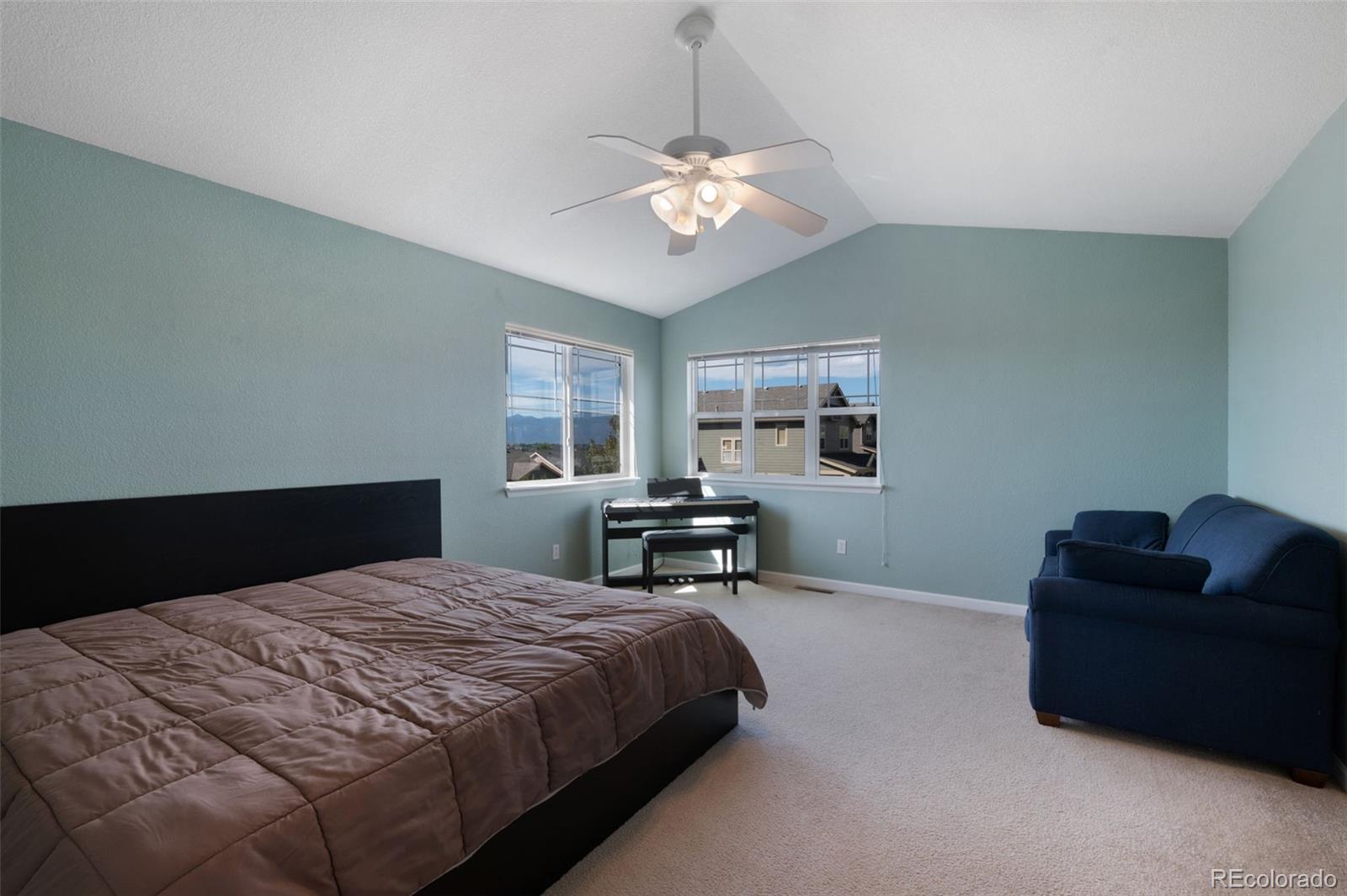 Wake up to stunning mountain views in this bright and welcoming two-story home, backing to the Cottonwood Creek Trail. The vaulted living room fills with natural light, creating an inviting space for family and friends. The kitchen and dining area is designed for both everyday life and entertaining, featuring stainless steel appliances, and a central island. A main-level bedroom, which could also be used as an office, along with laundry and a half bath, add convenience and flexibility. Upstairs, the spacious primary suite offers mountain views, a walk-in closet, and a dual-sink ensuite, while two additional bedrooms share a Jack and Jill bath. The unfinished walkout basement, complete with bathroom rough-ins, is ready to become whatever you imagine—home theater, gym, or play space. Step outside to the deck and enjoy open space views and a generously sized backyard perfect for relaxing or entertaining. Recent updates include a new roof in 2023 with class 4 impact-resistant shingles and a transferrable 5/15 year warranty on workmanship and materials. Located in the highly sought-after Briargate School District 20, this home offers space, comfort, and a lifestyle you’ll love.