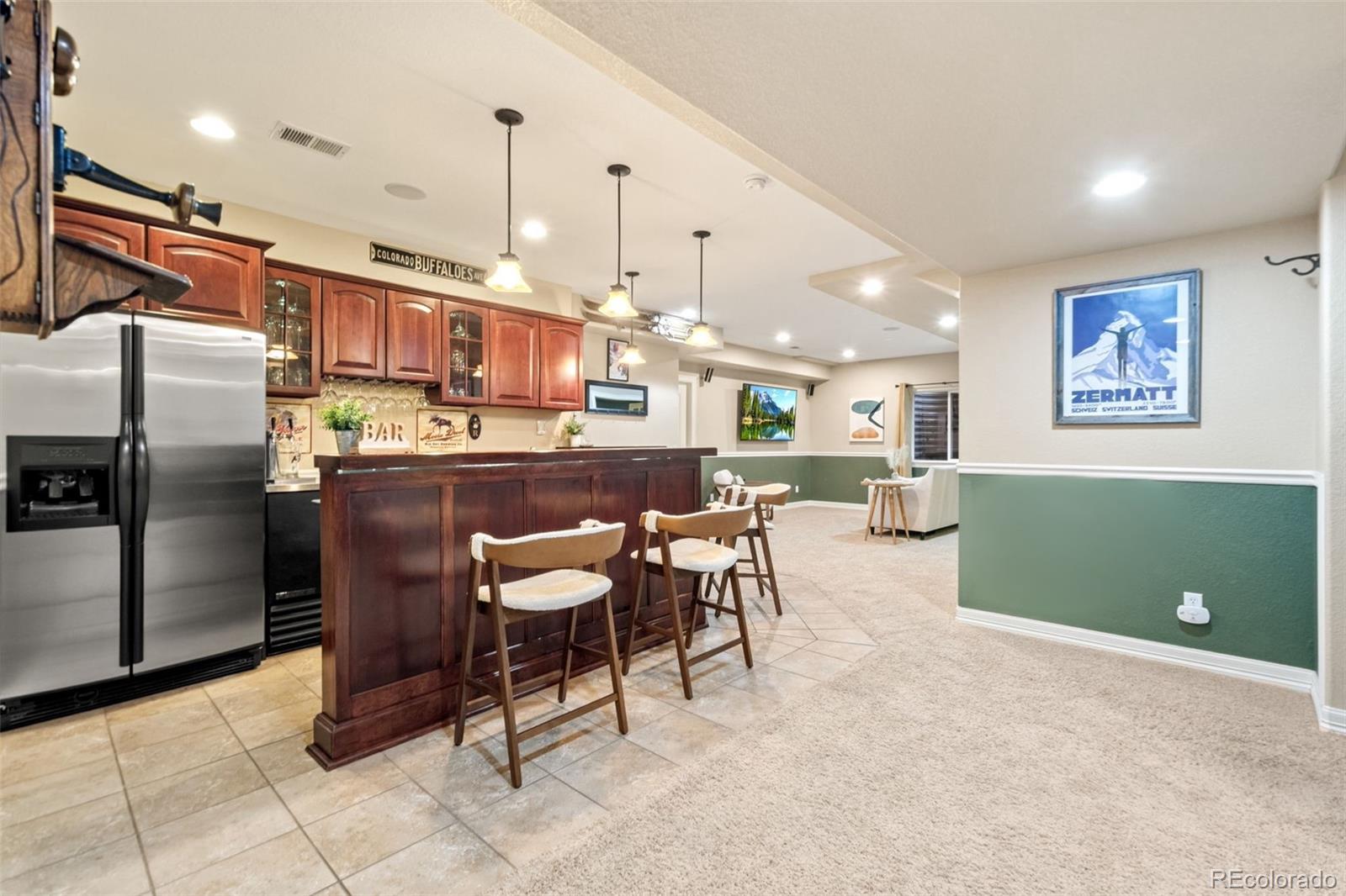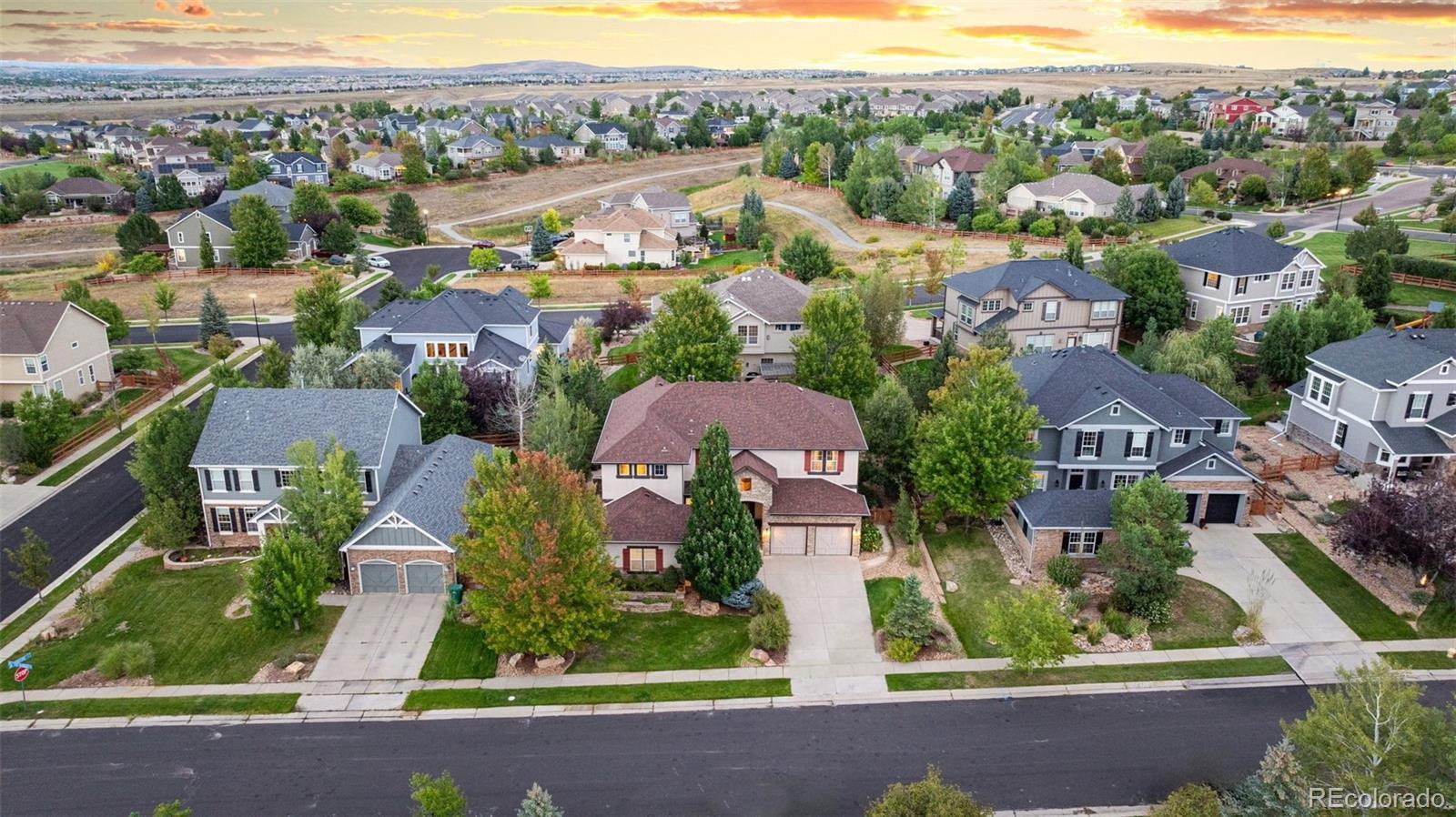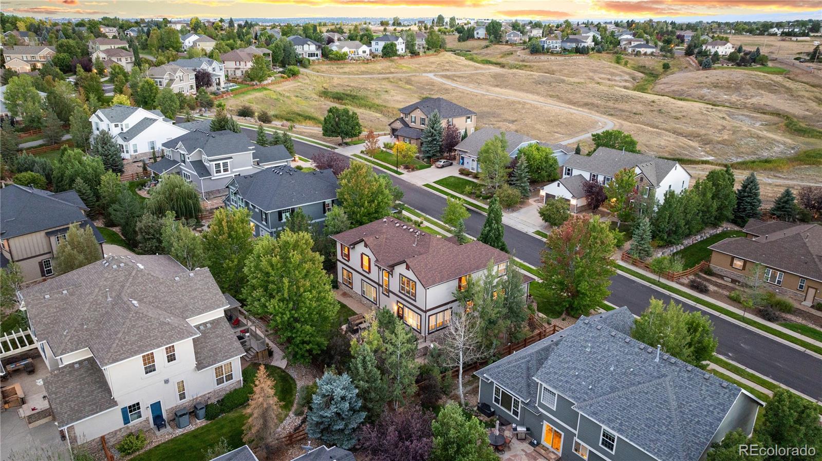 Welcome to this 6-bedroom, 5-bathroom home in Broomfield’s desirable Wildgrass neighborhood. Surrounded by mature trees, this residence blends comfortable Colorado living with a practical, well-designed floor plan. A two-story entry sets the tone for the light-filled interior. Off the foyer, a formal dining room and a flexible space can serve as an office, lounge, or music room. Plantation shutters on the main level add style and light control. A private guest bedroom with a full bath is also located on the main floor. The kitchen opens to the family room, creating an inviting space for everyday living. Enjoy gatherings around the fireplace or step out to the oversized back patio with a built-in fireplace and outdoor kitchen—perfect for entertaining or relaxing. Upstairs, the primary suite features a spacious bedroom and a spa-like bath with dual vanities, soaking tub, walk-in shower, and large closet. Two secondary bedrooms share a Jack-and-Jill bath, while another bedroom has its own private ensuite. A conveniently located laundry room completes the upper level. The finished basement adds even more living space with a beautiful cherry-wood bar and a large entertainment area ideal for movie nights or game days. A separate flex room with French doors offers options for a playroom, craft space, or home gym. An additional bedroom and bath complete the lower level. Residents of Wildgrass enjoy a clubhouse, parks, tennis courts, and scenic trails. The neighborhood pool is just a short walk away, making it easy to enjoy all the community amenities. This home combines spacious living areas, comfortable finishes, and a sought-after location in one of Broomfield’s most established communities.