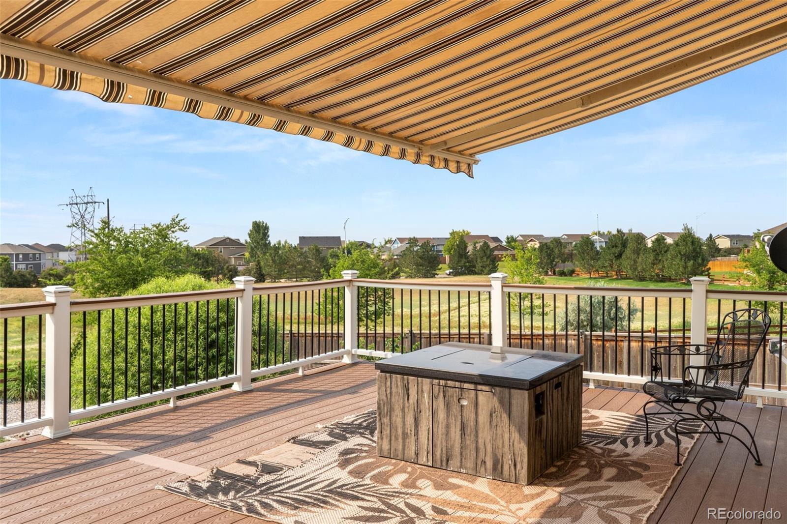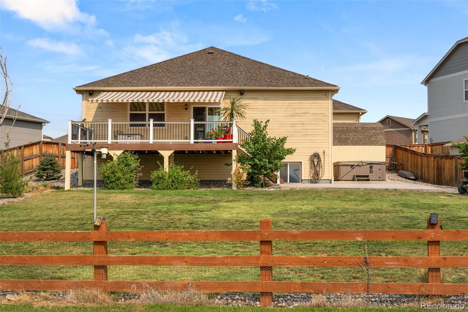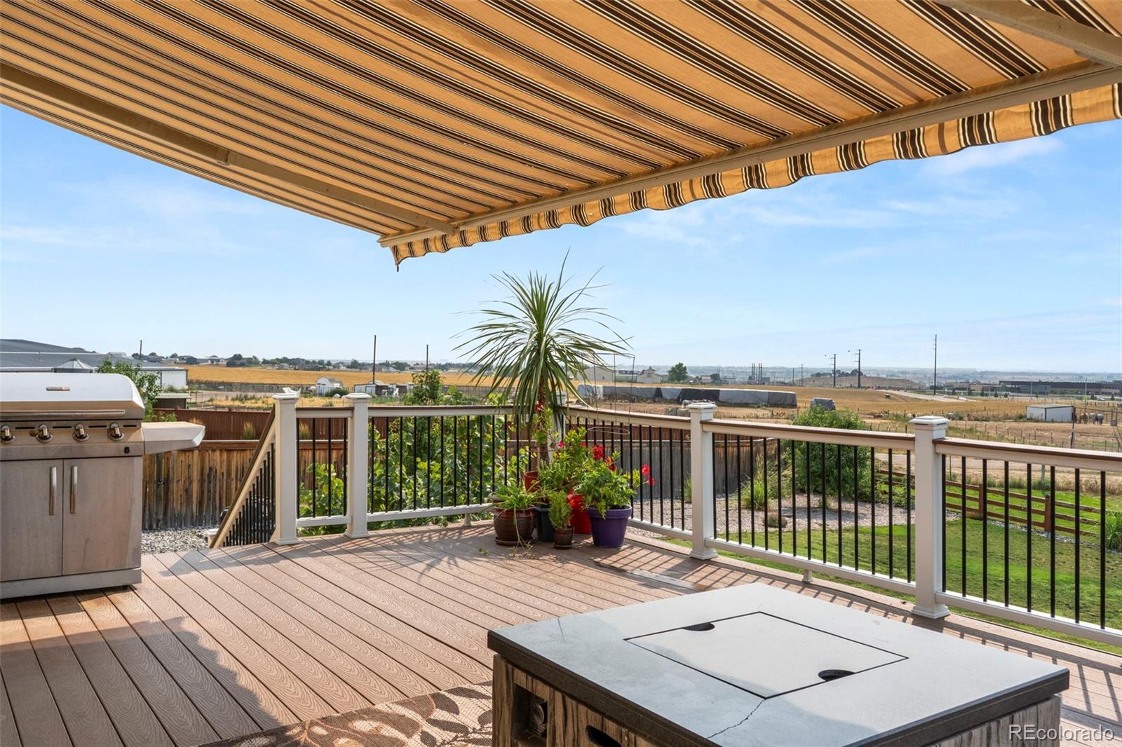 Located in Quebec Highlands, this 5-bedroom, 3-bathroom home is currently the only 3-car garage home on the market in the neighborhood, offering rare space, storage, and long-term value. With no metro tax district, homeowners save thousands annually, and the HOA is just $65/month, far below nearby new build communities. Set on an 16,000+ sq ft fully landscaped lot with no homes behind, the home offers unobstructed views from Pikes Peak to DIA and up to Brighton. Enjoy morning coffee or dinner outside on the spacious deck with a retractable awning. Inside, the main level features four bedrooms, wood flooring in high-traffic areas, newer carpet in the family room and primary bedroom, and a kitchen with stainless steel appliances and a breakfast bar that opens to the living space. The finished garden-level basement includes the fifth bedroom and third full bath, ideal as a guest suite, and is plumbed for a future wet bar. A new Class 4 impact-resistant roof was just installed. The home is also within walking distance to the elementary, middle, and high schools. Quebec Highlands hosts regular community events like movie nights, Easter egg hunts, and neighborhood garage sales, fostering a strong, connected community. Don’t miss this rare chance to own a move-in ready home with views, space, and unmatched value in a prime location.