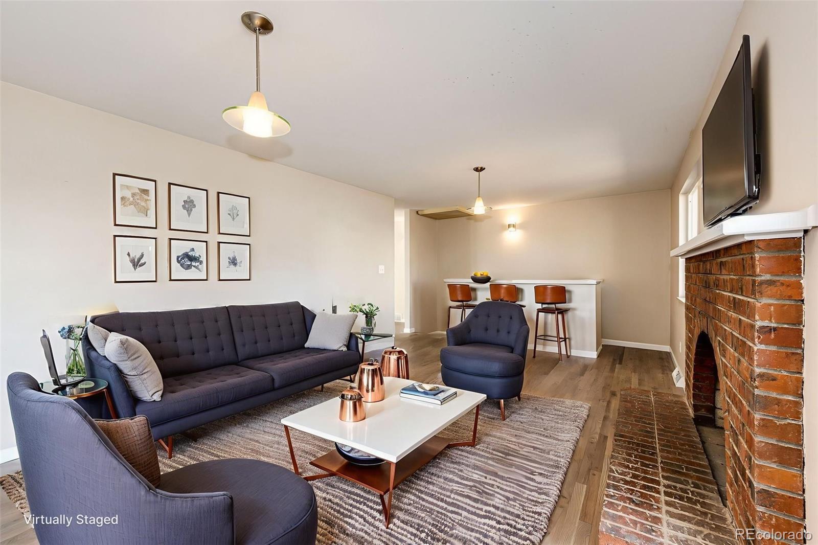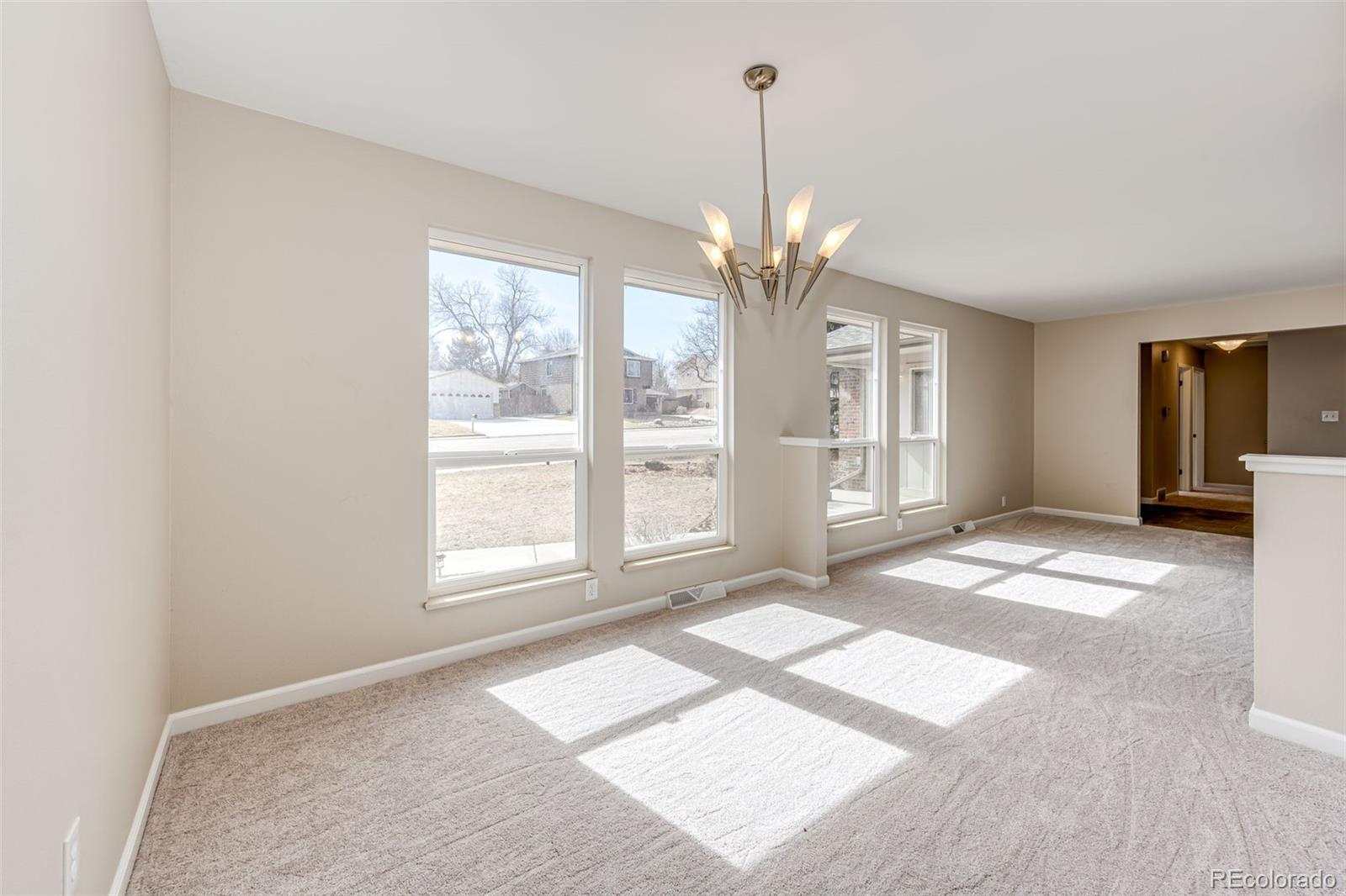 This beautiful updated modern-style ranch home has a mid-century vibe is 1,649 sq. ft. up and 1649 sq. ft down. There are 3 bedrooms and 2 bathrooms on the main level. The master bedroom has a walk-in closet and an updated bathroom that has a spa like feel. Two of the bedrooms on the main level sport custom arched windows, celebrating a mid-century charm. The entrance invites you into the open foyer that moves you into the living room and adjoining dining room. The kitchen has been completely updated and features new stainless-steel appliances and has everything conveniently within reach. Enjoy the large family room that frames an arched mid-century fireplace with refinished wood floors. New carpet and upgraded padding, new baseboards and new interior paint throughout the main level. Windows on the main level have been replaced. Then proceed to the basement where you walk into the large family room to make it your own. Maybe a movie night room, playroom or workout area. There is a nonconforming 4th bed with a large closet and ½ bath downstairs. The laundry room is oversized and has plenty of room for storage. The attached over-sized 2 car garage is 25'x16' which includes the work bench, cabinetry and shelfing, and new garage door with concrete pad on the side of the house. It sits on a .22-acre lot. This home has southern exposure, so rarely needs shoveling in the winter! The exterior has been painted, and the front yard has been landscaped. New Roof has been installed which compliments the color of the home’s brick. Positioned off Bowles and Pierce, this home is nestled in family-friendly Leawood Subdivision, which is in unincorporated Jefferson County and is within walking distance to top-rated schools, the local library and multiple parks including Clement Park, and conveniently located to shopping, dining, Lockheed Martin, walking paths, mountains and more. A great neighborhood to raise a family!