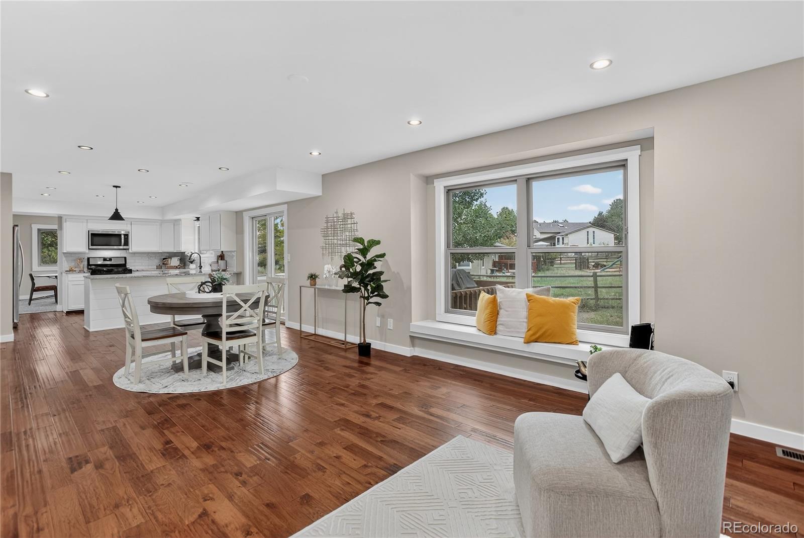 This warm and inviting residence in the heart of Gleneagle offers exceptional living space with thoughtful updates throughout. The main level features a beautifully refreshed living room with new paint and windows, and a welcoming wood-burning fireplace. The open kitchen is perfect for entertaining with the enhancement of new recessed lighting and abundant natural light flowing into the breakfast nook and dining area. The family room shines with recessed lighting, fresh paint, and new windows, creating the ideal space for gatherings. The primary suite includes a newly renovated bath and windows for a fresh, modern touch. Additional highlights include a finished basement remodel, whole-home A/C, a high-efficiency furnace, 150-amp electrical panel, and hardwood floors. Outdoors, the low-water meadow backyard awaits your next design vision, while the front yard features a sprinkler system and mature curb appeal. The south-facing garage is a hidden gem—bright and functional even on snowy mornings. With exterior paint completed just three years ago, this home is ready to enjoy. Ideally located near Fox Run Regional Park, award-winning District 20 schools, and convenient access to I-25, shopping, and dining in Northgate and Monument.
