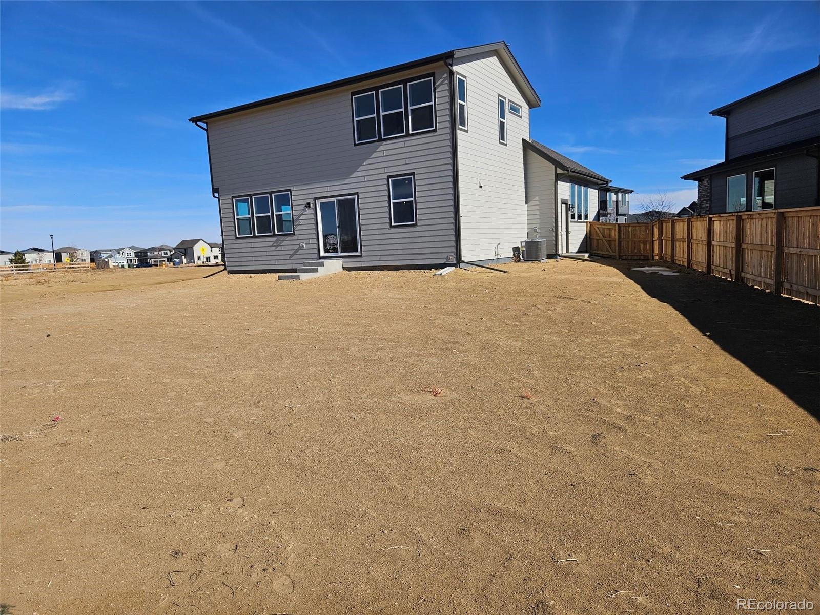 Enjoy exceptional outdoor living with this home situated on an oversized lot featuring a large pie-shaped rear yard that backs to open space—a rare find and ideal for families, pets, and outdoor entertaining. With generous room for play areas, BBQs, gatherings, and future landscaping, this backyard offers space and privacy rarely available in new construction. The Mountain-style exterior with stone accents and covered front porch provide inviting curb appeal. Inside, the main level includes a private pocket office with adjacent guest bath, perfect for working from home or flexible daily use. The open-concept great room flows into the kitchen, highlighted by a spacious island and an oversized walk-in pantry with three walls of shelving for exceptional storage. A functional mudroom entry from the garage includes a built-in bench, complemented by an oversized coat closet with shelving for added organization. The oversized two-car garage with tall ceilings offers ample space for vehicles, storage, and gear. Upstairs, all bedrooms are conveniently located alongside a spacious laundry room, linen storage, and a well-designed primary suite featuring dual sinks, a walk-in shower with bench, private water closet, and a large walk-in closet separate from the bath. Located in a quiet, family-friendly Brighton neighborhood, with close proximity to grocery stores, hospital, retail, restaurants, entertainment, schools, and outdoor recreation at Barr Lake. Easy access to I-76 (1 mile), E-470 (3 miles), and approximately 30 minutes to Downtown Denver and DIA. Neighborhood amenities include a community park with playground, swings, shaded picnic tables, BBQ grills, large open green space, benches, and dog stations throughout. A rare oversized, open-space lot paired with a highly desirable floorplan—an outstanding opportunity in Brighton.