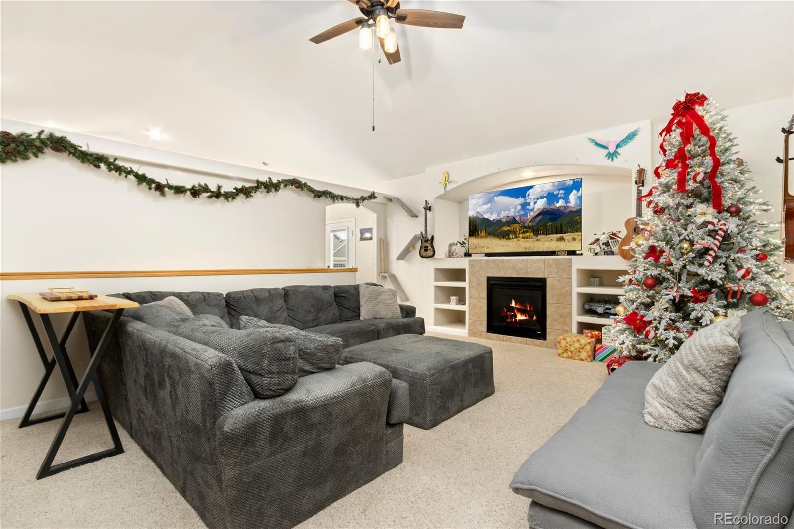 This spacious Loveland ranch-style home, built in 2005, is set on a 7,502 sq. ft. corner lot in a quiet, low-traffic neighborhood. Offering 3,094 total sq. ft., the residence includes 1,560 sq. ft. of finished living space above ground and 1,534 sq. ft. in the basement, with some framing already completed to provide excellent potential for expansion. The open floor plan is enhanced by cathedral ceilings, abundant natural light, and a welcoming living room with a gas fireplace. The primary suite features its own fireplace and a luxurious bath with a large soaking tub, creating a private retreat. The kitchen is equipped with newer appliances and complemented by a whole-house water softener and carbon filtered refrigerated drinking water system. Smart home conveniences include thermostat, garage door opener, sprinkler system, fiber optic internet, stove, refrigerator and EV car charger ready. An oversized deep two-car garage provides 506 sq. ft. of space, while radon mitigation has been installed for peace of mind. Negotiable items such as a custom portable bar, smart washer, and dryer add flexibility for the next owner. The neighborhood is known for its peaceful atmosphere and community-oriented feel, making it ideal for families, professionals, and anyone seeking tranquility. Direct access to the Loveland Bike Path connects you to miles of scenic trails, while Boyd Lake & Horsetooth Reservoir are just minutes away for fishing, boating, and lakeside relaxation. With easy access to the mountains, outdoor adventures are always within reach, and shopping, dining, and schools are conveniently nearby. Combining comfort, convenience, and future potential, This is is a rare opportunity to enjoy the best of Loveland living in a home designed for both everyday enjoyment and long-term value.
