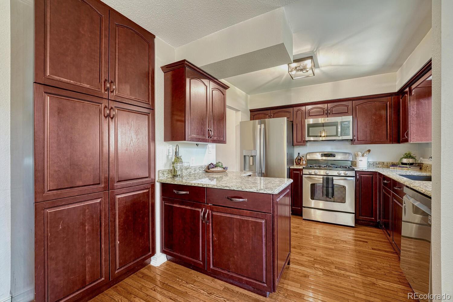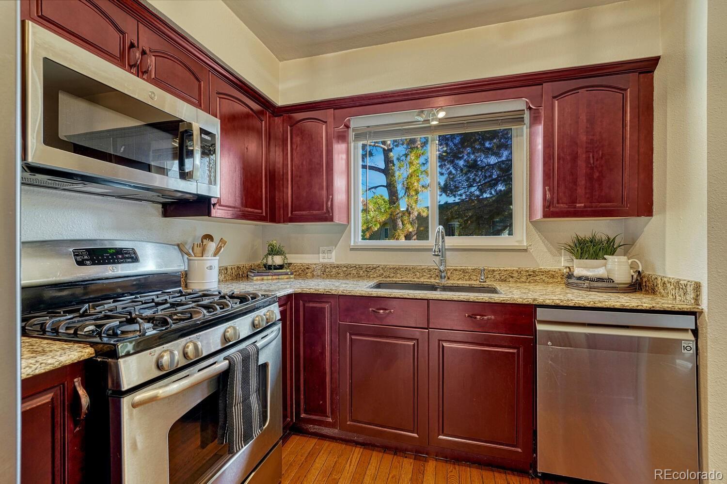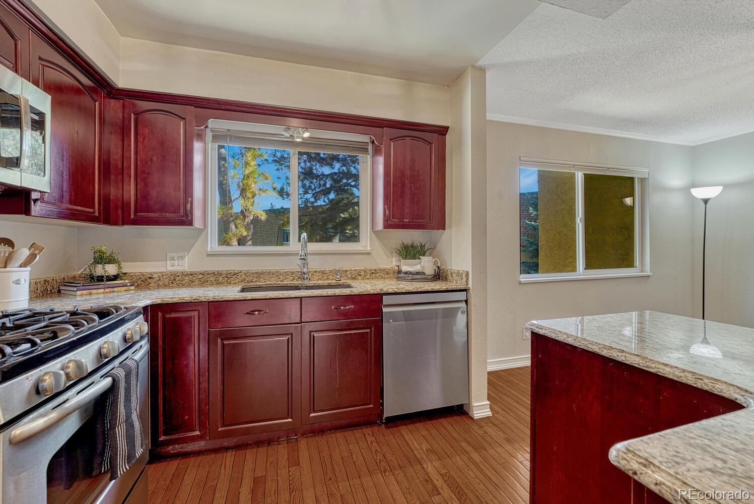 Welcome to this beautifully updated 4-bedroom, 4-bath townhome perfectly situated in one of Denver’s most convenient locations, just minutes from the Denver Tech Center, I-25, and I-225. Commuting is effortless with the Southmoor Light Rail Station and RTD bus stop just down the street, and you’ll love being within walking distance of two neighborhood parks, one featuring brand-new playground equipment—ideal for families, pets, and outdoor fun. Complex just had brand NEW gutters and roof installed. Step inside to discover an airy, light-filled home with beautiful hardwood floors and an open main-level layout. The living room flows seamlessly into the dining area and updated kitchen, complete with cherry cabinets, granite countertops, stainless steel appliances, and a spacious eat-in area, perfect for entertaining or casual gatherings. Upstairs, the primary suite offers a peaceful retreat with a private en-suite bath, while two additional bedrooms and a full bath provide plenty of space for family or guests. The lower level features a cozy family room with a walkout to the fenced in patio and yard, great for grilling or relaxing outdoors, and a private guest bedroom with its own en-suite ¾ bath for added comfort and privacy. Additional highlights include a washer and dryer, large storage room, and convenient parking right in front of the home, plus a dedicated reserved carport (#263). The community amenities are exceptional, with a swimming pool, clubhouse, tennis courts, and fitness center to enjoy year-round. This community now offers Google Fiber for lightning-fast internet connectivity! Don’t miss this unbeatable combination of space, comfort, and location—schedule your showing today!