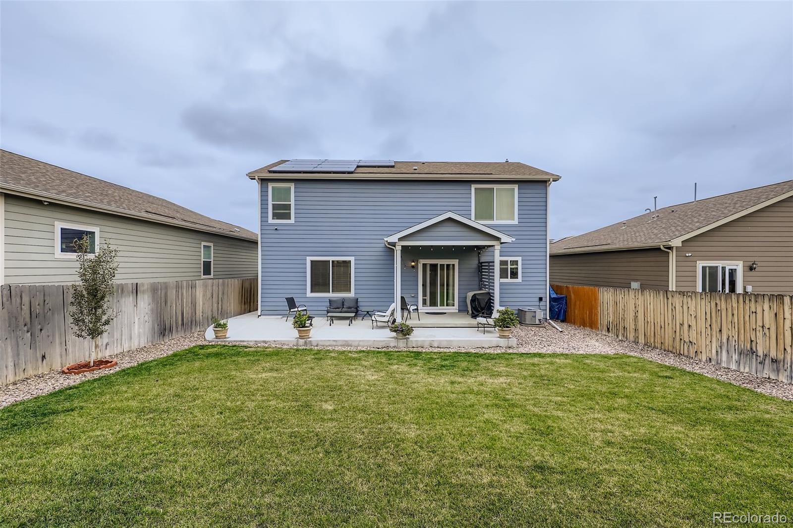 This beautifully updated 2 story in Second Creek Farms features 4 bedrooms, 2.5 baths, living / dining / kitchen, main floor study, loft, upper laundry and 2 car attached garage. Meticulously maintained – pride of ownership shines throughout. Upgrades include wainscoting panels in the foyer and half bath, custom closets, newer patio & patio privacy wall as well as an extended concrete walkway around the side of the home. The kitchen is open to the dining and living areas and includes slab granite counters & island, stainless steel appliances and spacious pantry - a great space for gatherings or casual family dinners. The rear patio is perfect for entertaining or relaxing after a long day. Neutral tones throughout make it easy to picture yourself calling this one yours. The many windows allow the natural light to cascade in – bright and cheerful. Buyer to assume the solar agreement. Close to dining, shopping, entertainment and other amenities. Don’t miss your opportunity. Welcome Home!