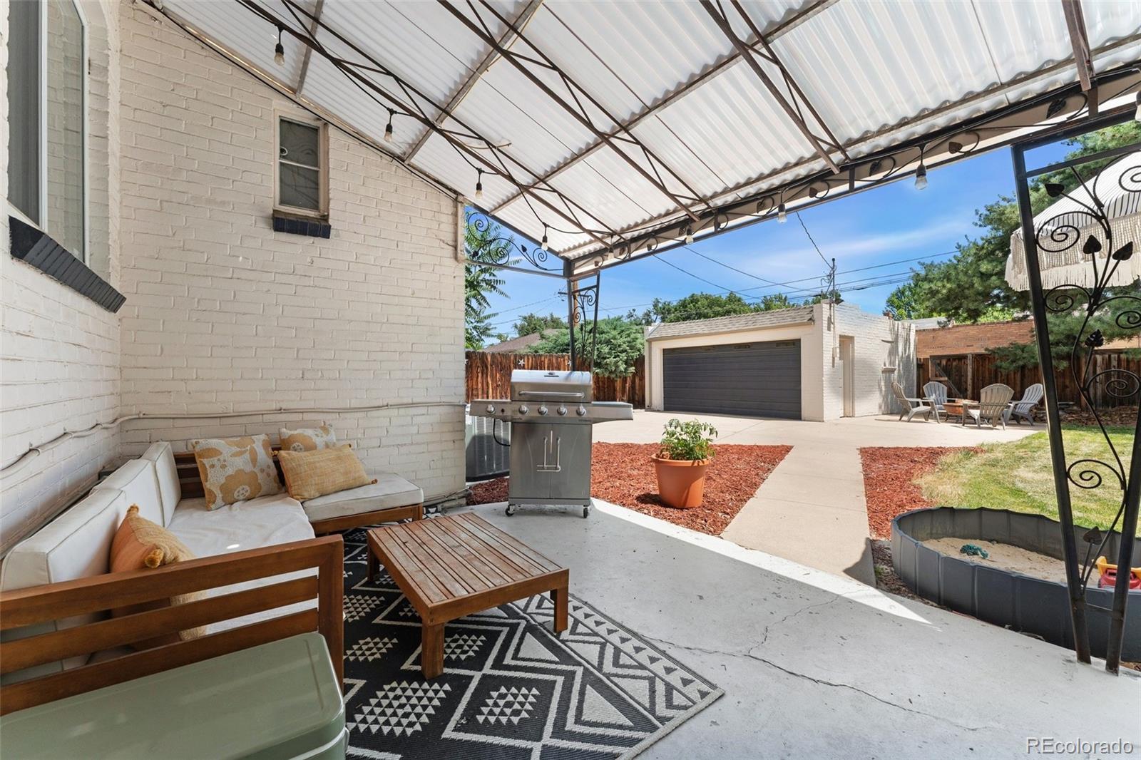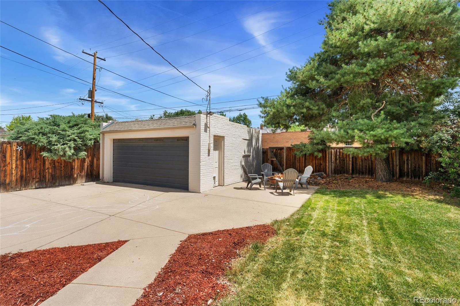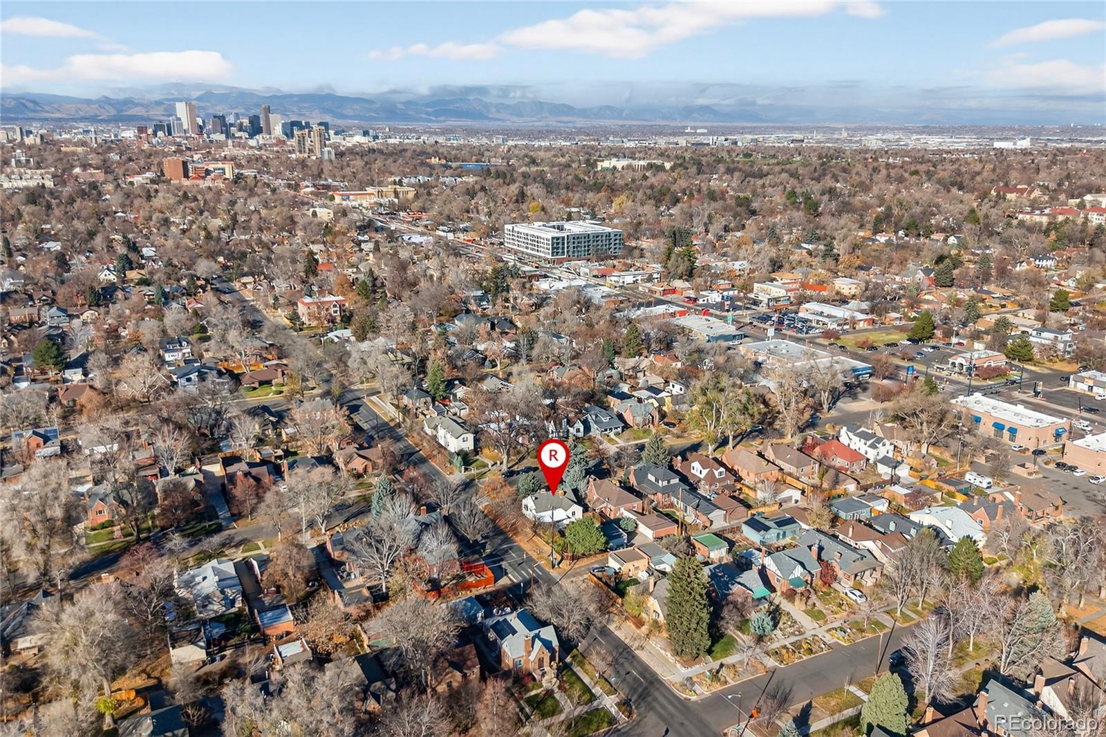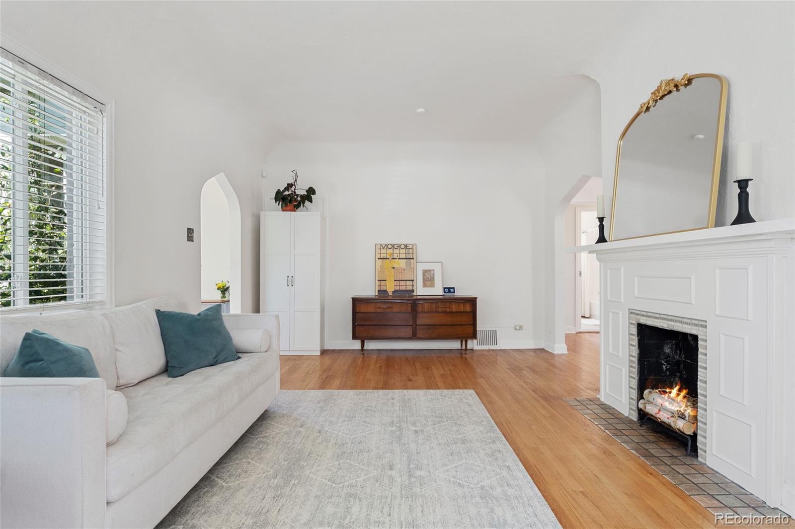Welcome to this cozy brick ranch home on a spacious corner lot in the highly sought-after Mayfair community, featuring three bedrooms plus a large office that can serve as a fourth bedroom. Brand new furnace and kitchen countertops in 2025 and new windows in 2024! Full of charm and character, this 1930s gem has been beautifully updated while retaining its original warmth, offering incredible natural light throughout. Arched openings, cove ceilings, and oak hardwood floors add timeless elegance, while the bright and cheerful chef’s kitchen impresses with stylish finishes, shaker cabinets, stainless appliances with gas range, quartz countertops, subway tile backsplash, and two garden windows above classic glass blocks. A separate dining room creates the perfect space for gatherings. The main level offers two sunny bedrooms. The finished basement expands your living space with a large family room featuring a wet bar and fireplace, a bedroom with a private en-suite bath, a second basement level bedroom or office, generous closet space, and a laundry room. The fully fenced backyard is both peaceful and private, with plenty of room to entertain or simply unwind. Additional recent updates include new basement floors (2022), a remodeled basement bath (2024), new water heater (2025). All of this within walking distance to shops, trendy restaurants, parks, and just blocks from City Park and the Denver Zoo.