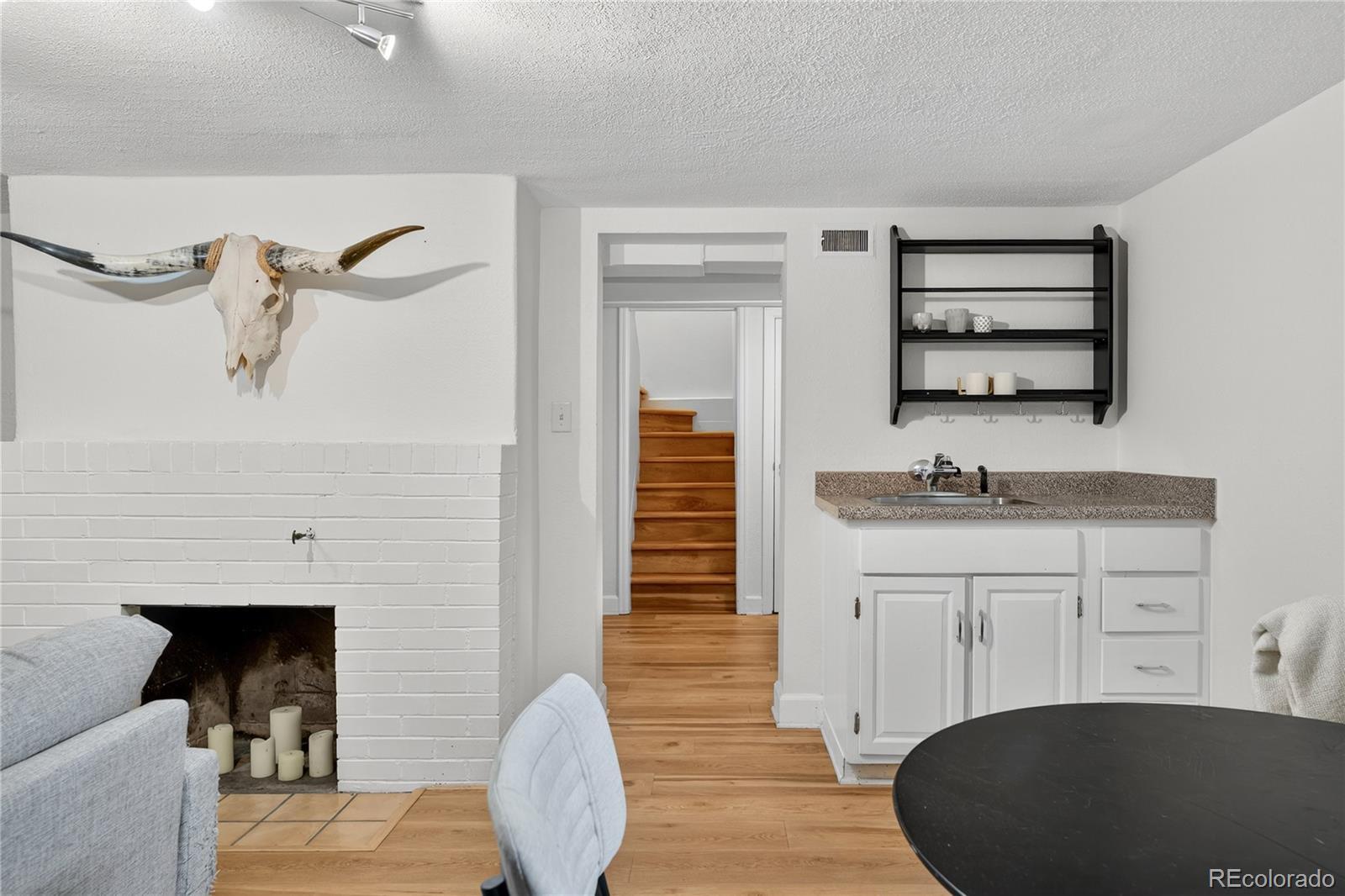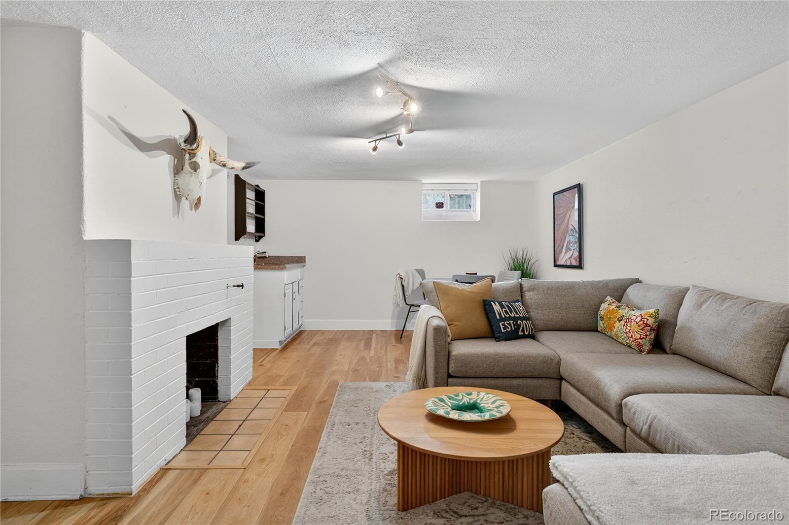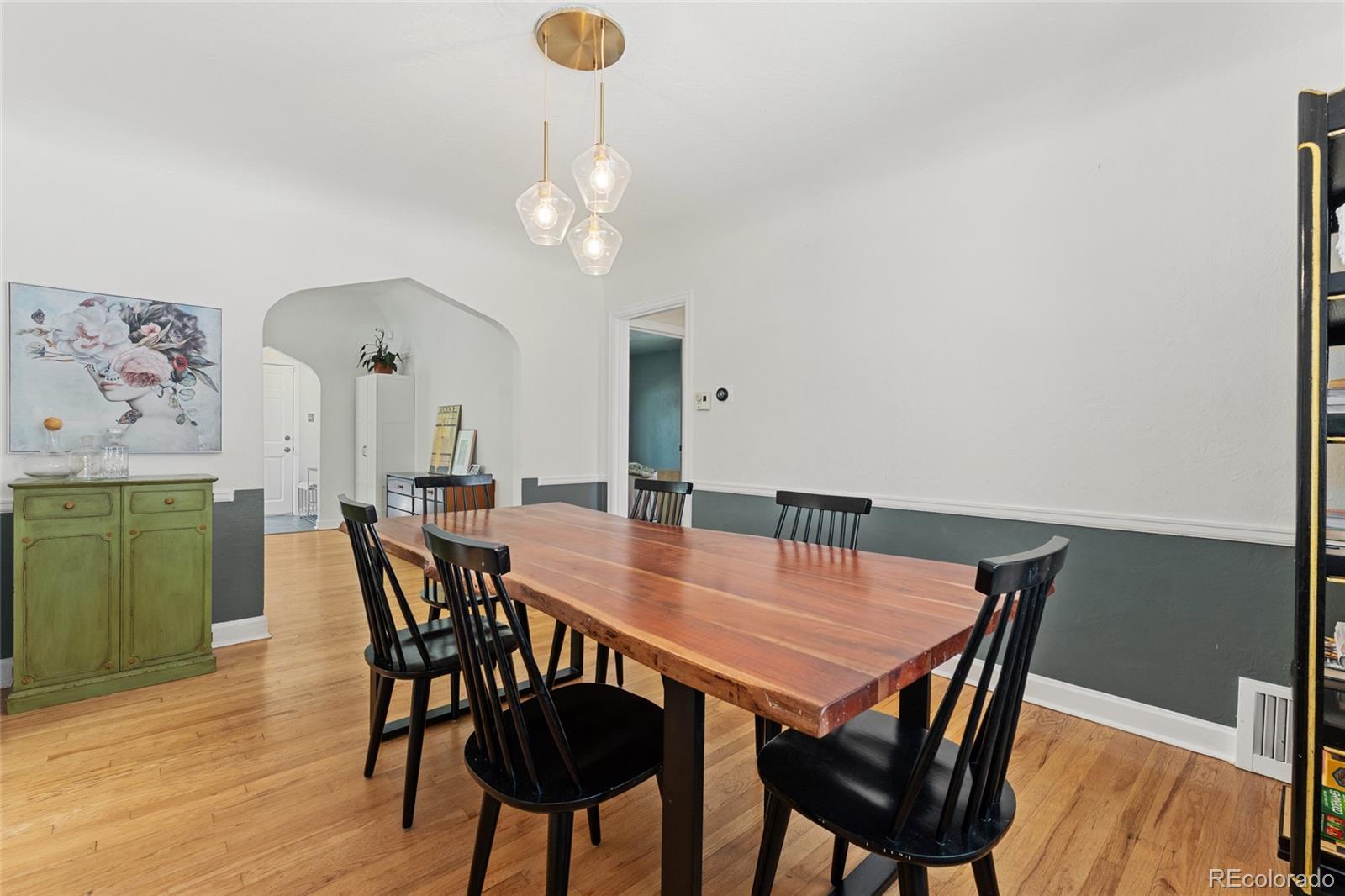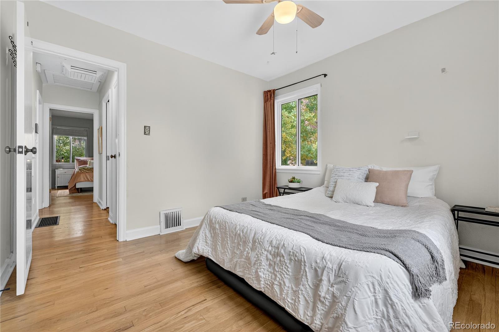 Welcome to this cozy brick ranch home on a spacious corner lot in the highly sought-after Mayfair community, featuring three bedrooms plus a large office that can serve as a fourth bedroom. Brand new furnace and kitchen countertops in 2025 and new windows in 2024! Full of charm and character, this 1930s gem has been beautifully updated while retaining its original warmth, offering incredible natural light throughout. Arched openings, cove ceilings, and oak hardwood floors add timeless elegance, while the bright and cheerful chef’s kitchen impresses with stylish finishes, shaker cabinets, stainless appliances with gas range, quartz countertops, subway tile backsplash, and two garden windows above classic glass blocks. A separate dining room creates the perfect space for gatherings. The main level offers two sunny bedrooms. The finished basement expands your living space with a large family room featuring a wet bar and fireplace, a bedroom with a private en-suite bath, a second basement level bedroom or office, generous closet space, and a laundry room. The fully fenced backyard is both peaceful and private, with plenty of room to entertain or simply unwind. Additional recent updates include new basement floors (2022), a remodeled basement bath (2024), new water heater (2025). All of this within walking distance to shops, trendy restaurants, parks, and just blocks from City Park and the Denver Zoo.