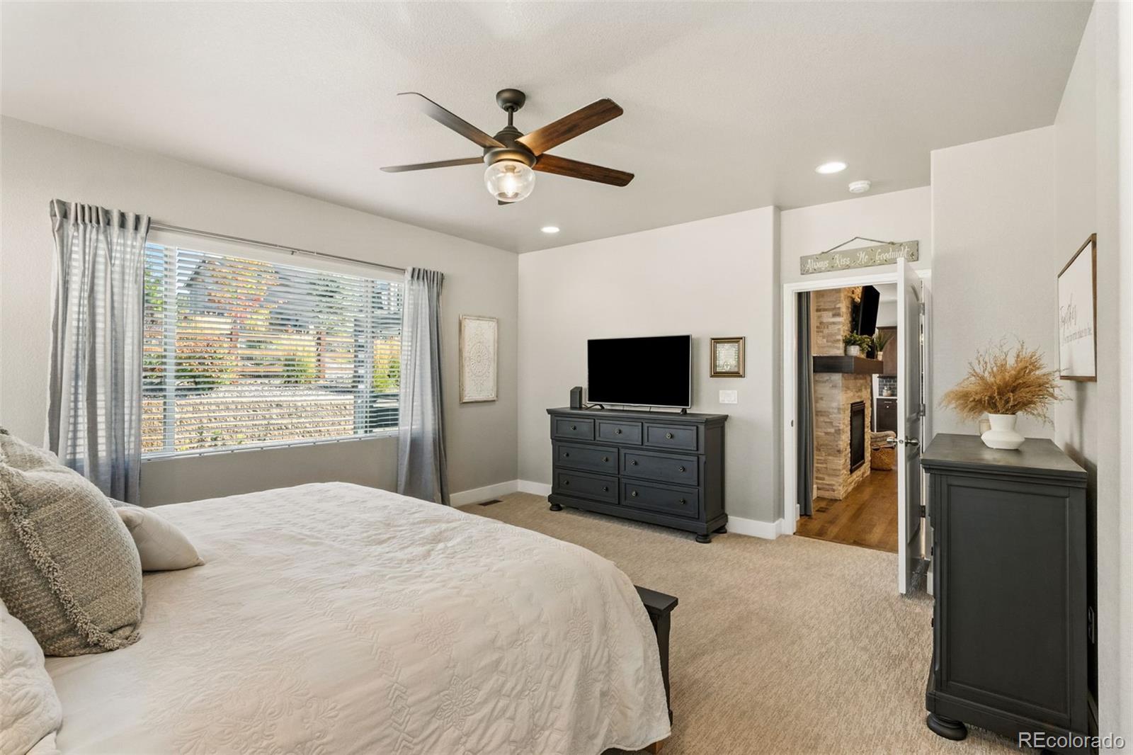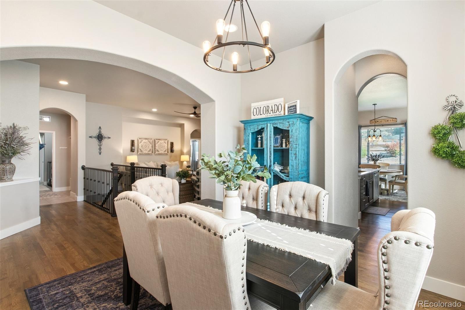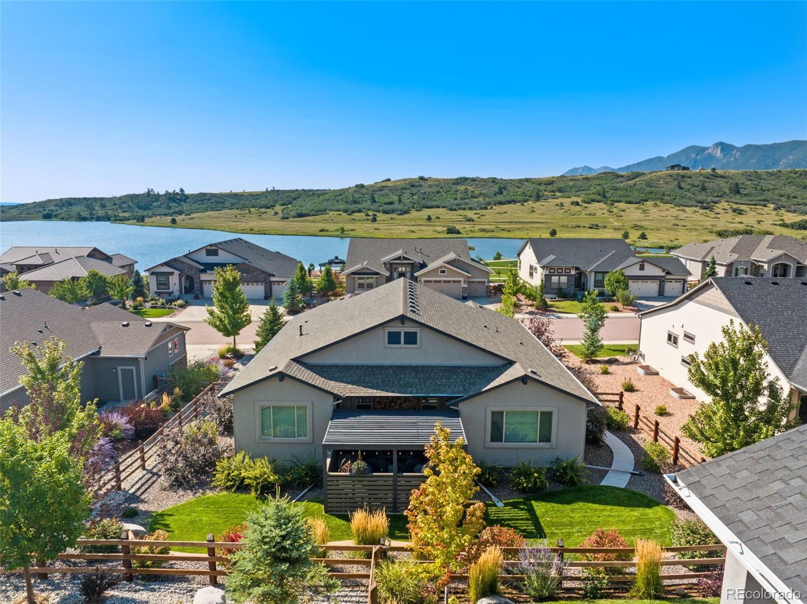 Your Forest Lakes move in ready dream home is finally a reality! Located in the desirable neighborhood of Forest Lakes just steps away from stunning Bristlecone Lake with foothill hiking and biking trails, paddleboarding, fishing and amazing views. Almost 1/4 of an acre. Main level living at its finest with an open and inviting feel. Immaculately maintained. Upgraded features include a newly remodeled 5-piece primary bathroom with beautiful floor tile, freestanding tub and frameless shower glass with gorgeous tile, dual rainfall shower head, upgraded bathroom mirrors and lights, new 5 1/2" alderwood baseboard trim, newer washer/dryer and newer refrigerator and more! The main level living room features a two-sided stone surround and wood mantle fireplace with 10' ceilings and hardwood floors. Gourmet kitchen with stainless steel appliances, butler's pantry, quartz countertops and upgraded pendant and dining lighting. Spacious primary bedroom suite. Mudroom with a bench and jacket hooks. The basement includes 9' ceilings and rough-in plumbing for a wet bar. Central air and ceiling fans to keep cool on warm Colorado days. Garage storage rack, wall mounted bike racks and an electric vehicle charging port all included. The storage area in the basement is perfect for an exercise room or craft room and could be finished into a 5th bedroom. Relax with family and friends and enjoy the amazing privacy pergola on the patio which includes party lights, plumbed gas line in addition to the ambiance created by the two-side fireplace. Neighborhood benefits of the HOA include exclusive access to fishing/paddleboarding/kayaking on the lake. All of this with the extensive trails makes living here feel like resort living. As you drive into this beautiful neighborhood you will quickly realize why this is such a great area to live. Morning sunrises to the east/mountain sunsets to the west. Easy access to I-25. Welcome home to your lake community home nestled in the foothills!