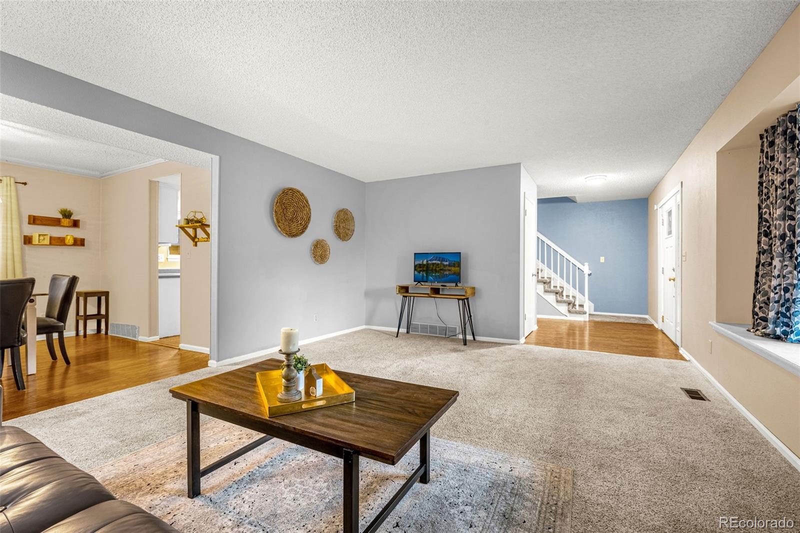 Welcome to this beautifully appointed 4-bedroom, 3-bath residence nestled in the Tamarron at Rockrimmon neighborhood! With 3,468 square feet of living space, this well-maintained home offers a warm and inviting atmosphere featuring a spacious living room with a cozy fireplace, perfect for relaxing or entertaining. The bright kitchen provides ample cabinet and counter space and flows seamlessly into the dining area. There is a bathroom on the main level as well. Throughout the home your will notice the brand new carpet. Upstairs you will find the 4 spacious bedrooms all with ample closet space including a full bathroom in the hall. In the primary suite you have a walk-in closet as well as your own full bathroom. Going Downstairs, a partially finished basement offers flexible space for a home office, gym, or additional living area. Before stepping outside there is a beautiful and relaxing sunroom that includes a free standing fireplace. Enjoy the private backyard—that has been landscaped ideal for outdoor gatherings or quiet evenings. This home is just minutes from award-winning D-20 schools, Ute Valley Park, hiking trails, shopping, and fine dining. Schedule your private tour today!