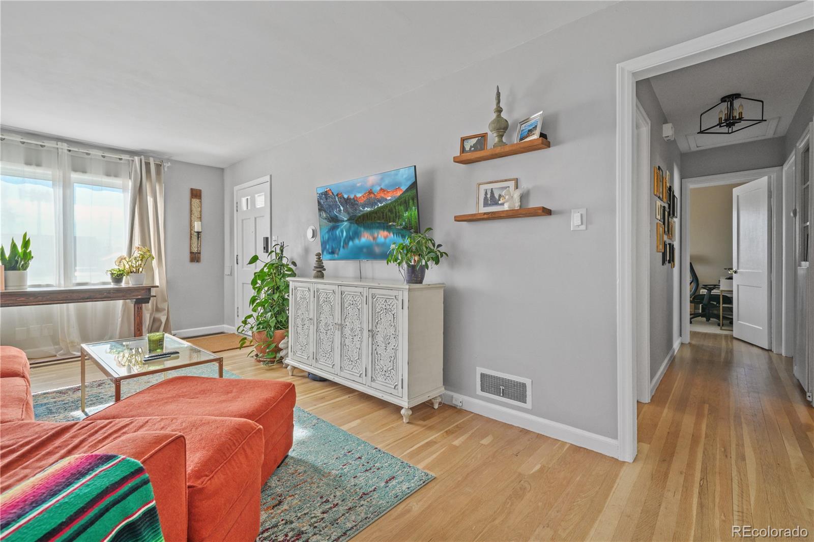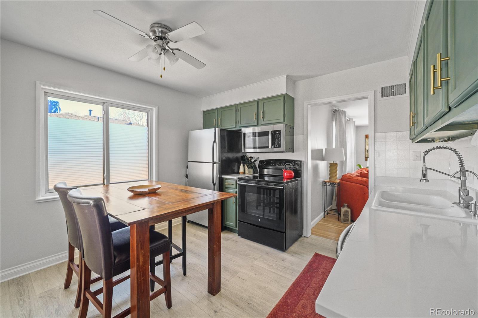 Located in Athmar Park, this thoughtfully updated home offers a comfortable balance of character and function. Newly refinished wood floors along with fresh interior and exterior paint create a cohesive backdrop throughout. A welcoming living room features a large picture window at the front of the house. The sizeable eat-in kitchen features new quartz countertops, stylishly painted cabinets with new hardware and access to the backyard. A dedicated laundry room adds extra storage and counter space. The first of three bedrooms is currently used as a home office, while a spacious secondary bedroom is bathed in light. The primary bedroom features dual closets with a desirable adjacent flex space which provides endless opportunities for a home office, gym, family room or even a 4th bedroom with dual closets and a private entrance. Outdoor living is a breeze with covered front and back patios, along with a fully fenced backyard on an impressive 7,500 sq. ft. lot. A one-car detached garage with a bonus storage room/workshop completes the property. Situated near local parks, dining, and shopping, this home provides both convenience and a strong neighborhood feel. www.1775WTennessee.com