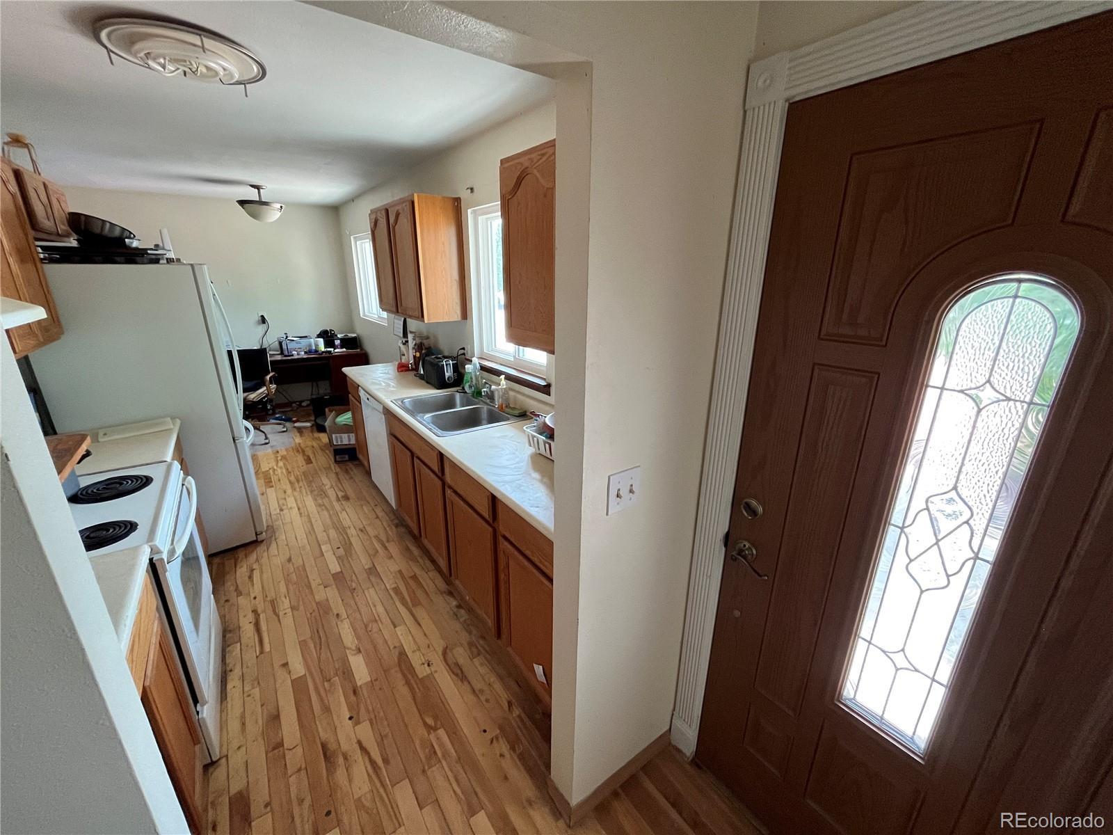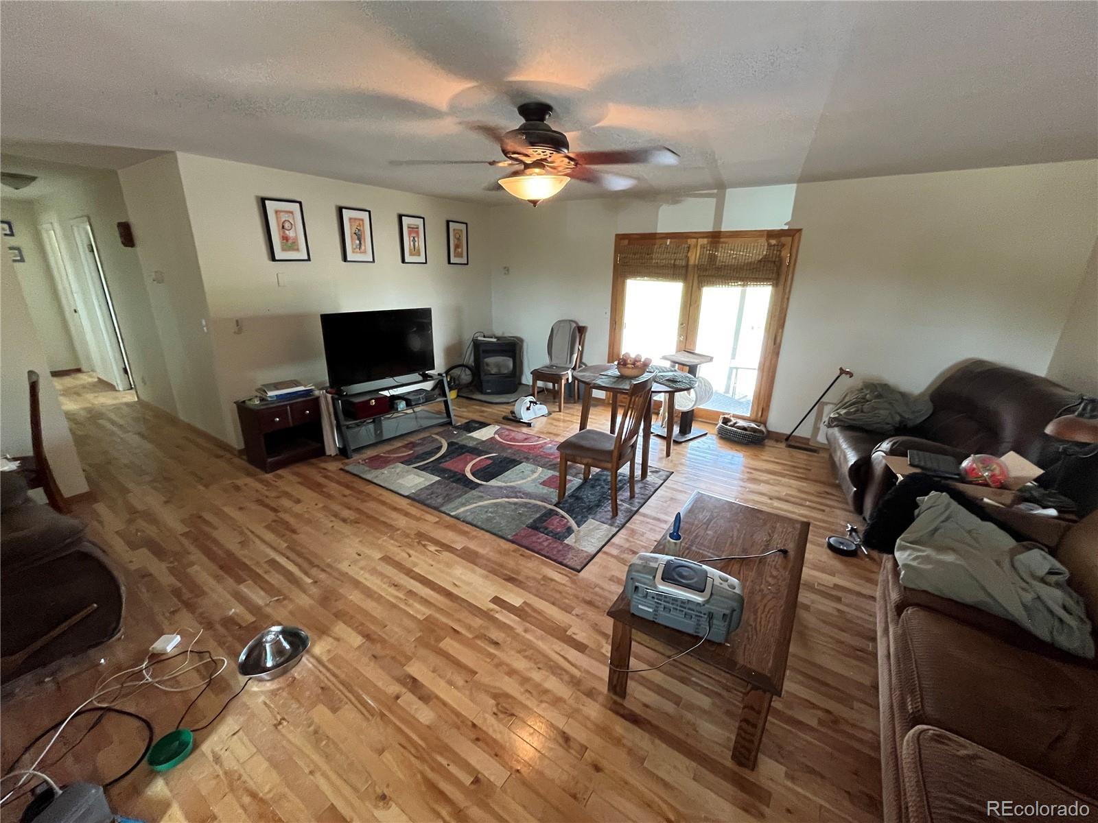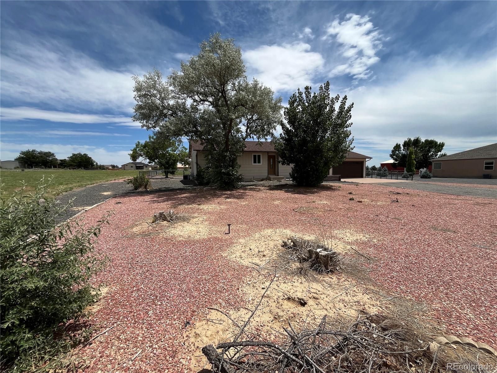 3-bedroom, 2-bath ranch-style home, offering 2,570 square feet of living space on a large 1-acre lot in Pueblo West. With no HOA, you can enjoy the freedom of country living while being just minutes from schools, shopping, and outdoor recreation. The home features evaporative cooling and propane heating for year round comfort. There are hardwood floors throughout the kitchen, living, and dining areas. The galley-style kitchen is equipped with ample wood cabinetry, counter space, and a full set of appliances, including a range oven, vent hood, dishwasher, and refrigerator. The dining area, currently used as an office, is perfect for meals or as a flexible workspace. Relax in the spacious living room with a lighted ceiling fan and French doors that open to a partially covered backyard patio, ideal for outdoor dining and relaxation. The primary suite boasts wood laminate flooring, double mirrored wardrobes, and an adjoining full bath. Two additional bedrooms (one with wood laminate, one with carpet) share a second full bathroom. The expansive unfinished basement offers 1,285 square feet of additional space, ready for your personal design or expansion needs. The home also includes a laundry area with electrical hookups and a 2-car attached garage. Outside, there’s plenty of room for RV or boat storage on the fenced lot. Located just a short drive from the Pueblo Trail and Pueblo Reservoir, you’ll have easy access to hiking, fishing, boating, and camping. Don’t miss out on the opportunity to make this spacious home your own and create lasting memories in a peaceful, scenic setting!