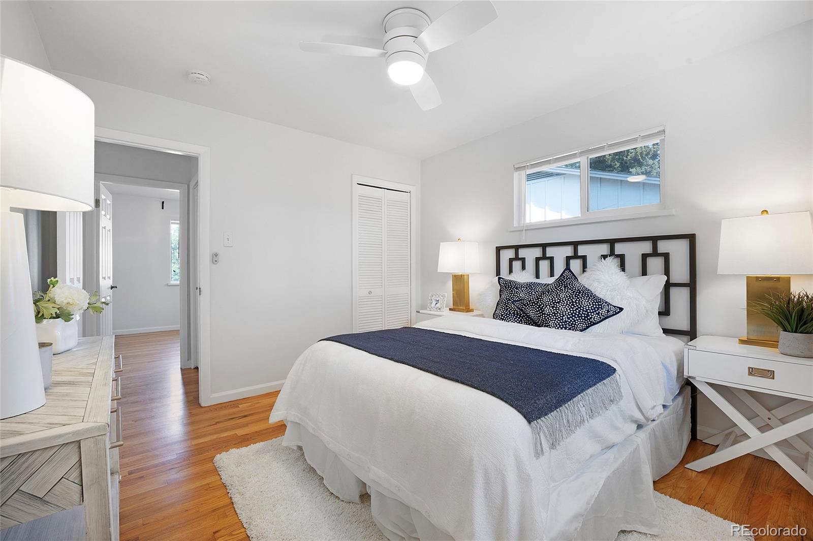 This stylish, mid-century-inspired 4-bedroom, 3-bath ranch-style home is nestled on a tree-lined street in Virginia Vale. Updated throughout, this light and bright home features a sleek new kitchen with quartz countertops, stainless steel appliances, and ample cabinetry, all flowing into a spacious living area with timeless hardwood floors and a wonderful dining area that opens to the outdoor space. The main floor offers three bedrooms, including a primary suite with 3/4 bath, two generous sized secondary bedrooms and a remodeled full hall bath. Downstairs, the fully finished basement includes a second expansive primary suite, complete with a luxurious five-piece spa-like bath and a large walk-in closet—perfect for guests or multi-generational living, bar area and additional rec room, perfect for movie night. Step outside to a large backyard with an expansive patio ideal for entertaining and area for a playset or garden beds or sip your morning coffee on the front patio and enjoy the beautiful flower beds. Conveniently located just minutes from the shopping, dining, and entertainment of Cherry Creek and also Downtown Denver. With a one-car attached garage and a location that can’t be beat, this home blends vintage charm with modern living in one of Denver’s amazing neighborhoods. All appliances are going to stay including the washer and dryer.