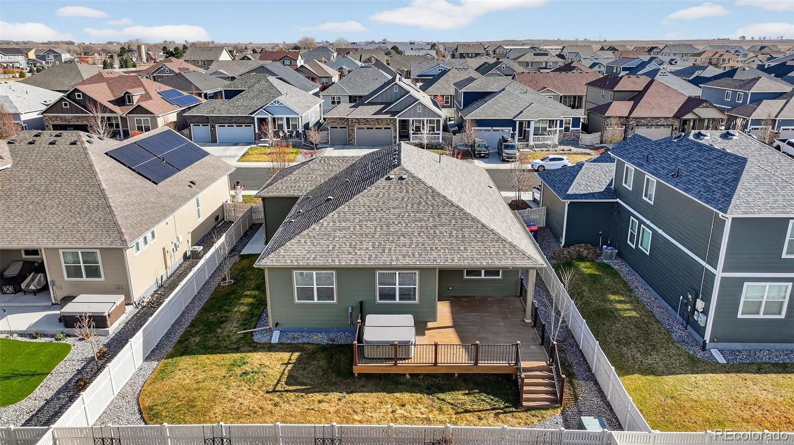 Experience modern Colorado living at 8935 Farmdale Street, a 2021 single-level ranch designed for low-maintenance comfort and effortless everyday living. Nestled in Firestone’s Saddleback community, this home offers upgraded finishes, smart-home features, and a layout that flows easily from indoor living to outdoor relaxation. Inside, the open floor plan brings the kitchen, dining area, and great room together in one bright, inviting space. The kitchen features granite counters, a large island, stainless steel appliances, pantry storage, and an eat-in layout ideal for gathering. Durable LVP flooring and natural light enhance the clean, modern feel throughout. The primary suite includes an en-suite bath, walk-in closet, and full main-level accessibility. Two additional main-floor bedrooms—one with French doors—create flexible options for an office, guest room, or hobby space. Step outside to one of the home’s standout features: a large, low-maintenance back deck designed for year-round enjoyment. Complete with a hot tub and full fencing, this outdoor retreat adds an incredible lifestyle element—perfect for unwinding after work, hosting friends, or enjoying Colorado evenings under the stars. It’s the type of space today’s buyers value most: easy to care for, quiet, and built for relaxation. Additional features include central air, forced-air heating, smart cameras, a video doorbell, security system, carbon monoxide and smoke detectors, included window coverings, and a generous 3-car attached garage. With newer construction and modern systems already in place, the home offers peace of mind and true move-in readiness. Located near Saddleback Golf Course, neighborhood parks, and St. Vrain Valley schools, this property provides a calm community setting with quick access to Firestone’s shops, amenities, and commuter routes. For buyers seeking a newer ranch home with an elevated outdoor living experience, this one checks every box.