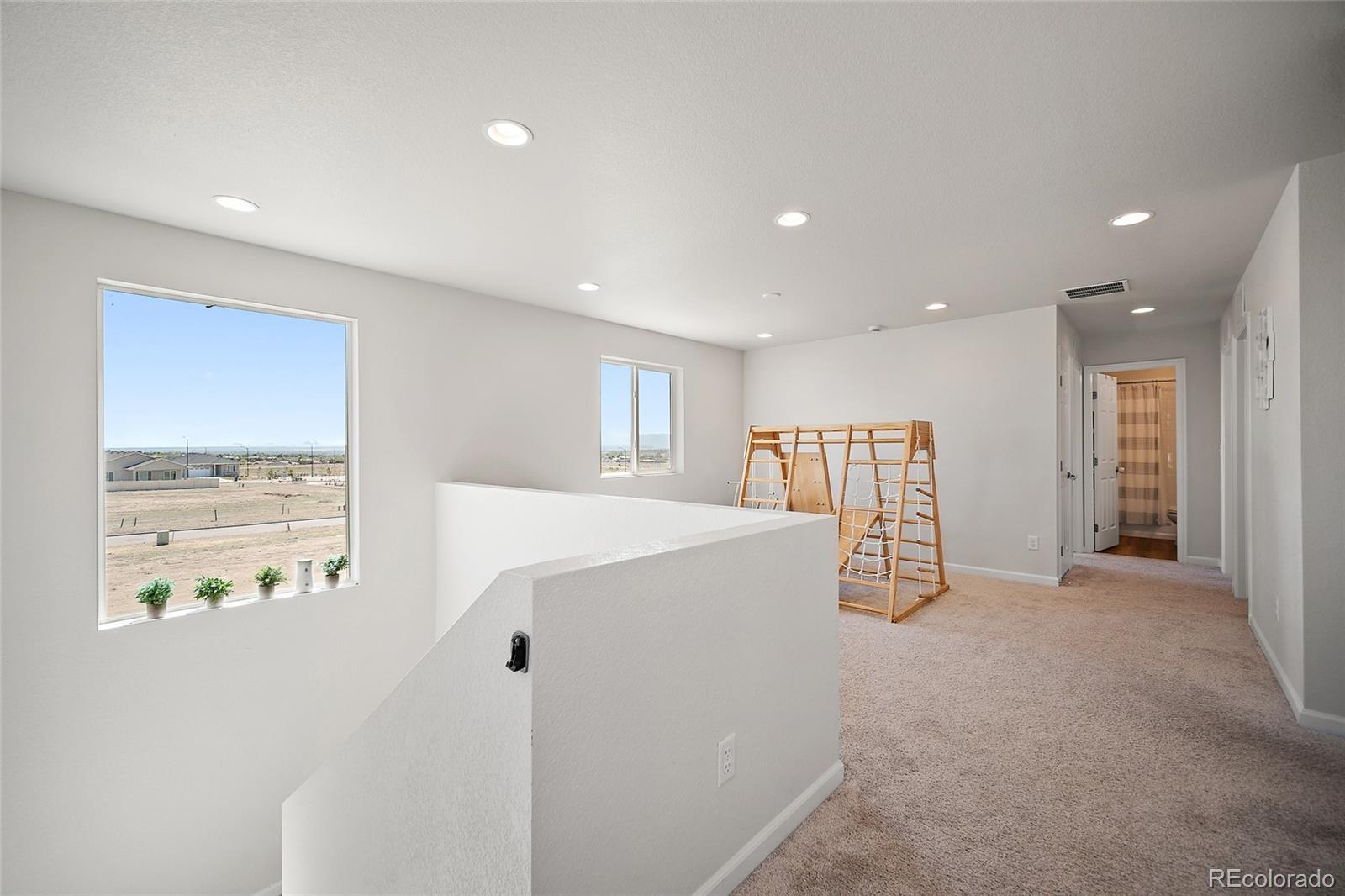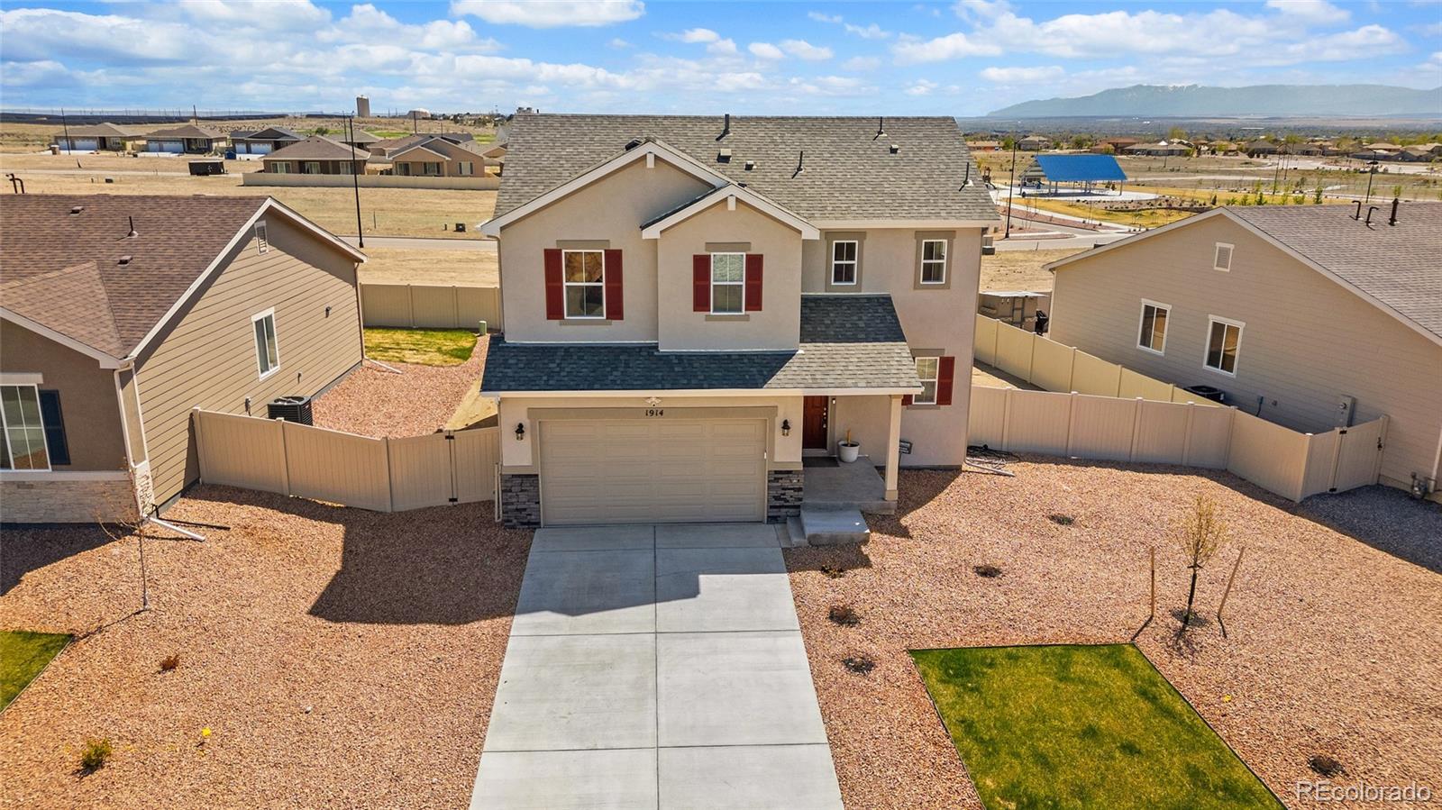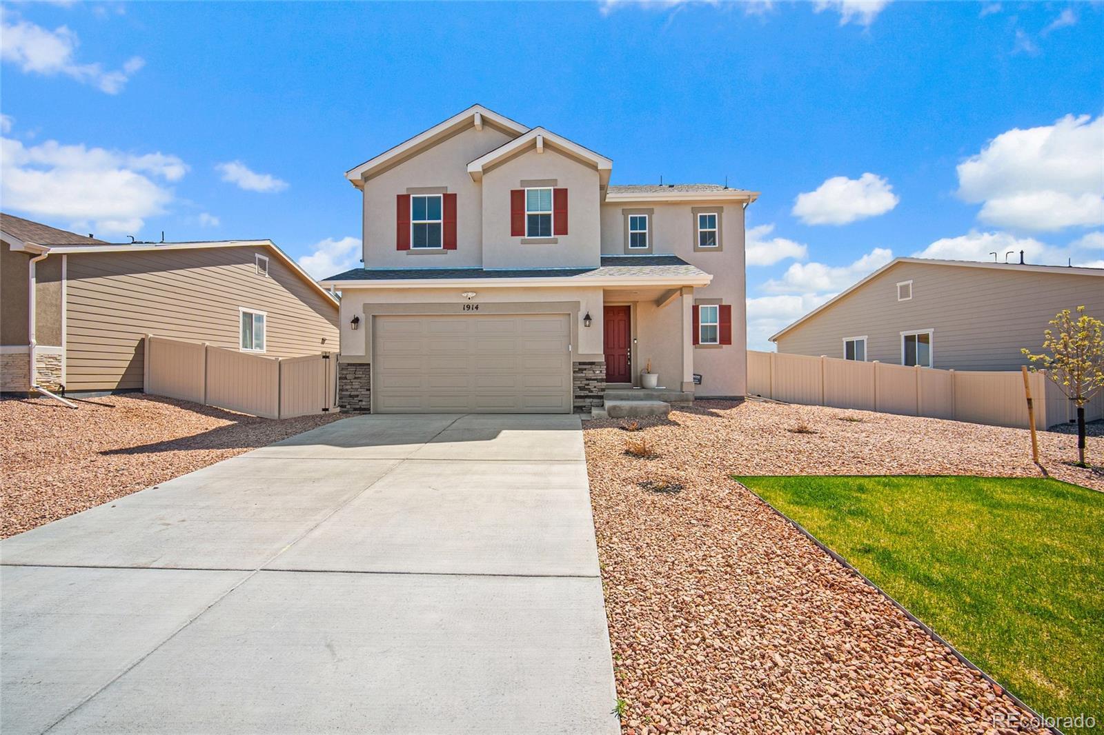 Why wait to build when this nearly new home is ready now? Located in the North Vista Highlands neighborhood of Pueblo, you'll enjoy quick access to I-25 and just a 35-minute drive to Fort Carson. This growing community features a beautiful park and playground with stunning views. The Coral floor plan blends modern design with functional living, offering two stories of thoughtfully designed space and stylish finishes throughout. On the main level, enjoy an open-concept layout perfect for relaxing, entertaining, and dining. The kitchen is a standout with stainless steel appliances, a gas range, and a quartz center island that flows seamlessly into the dining area and great room. Upstairs, a spacious loft provides flexible living space, accompanied by two secondary bedrooms and a full bath. The primary suite is a true retreat, complete with a generous walk-in closet and a private bath featuring dual vanities and a walk-in shower. A conveniently located laundry room—washer and dryer included—adds to the ease of everyday living. Schedule your showing today and make this lovely home your own!