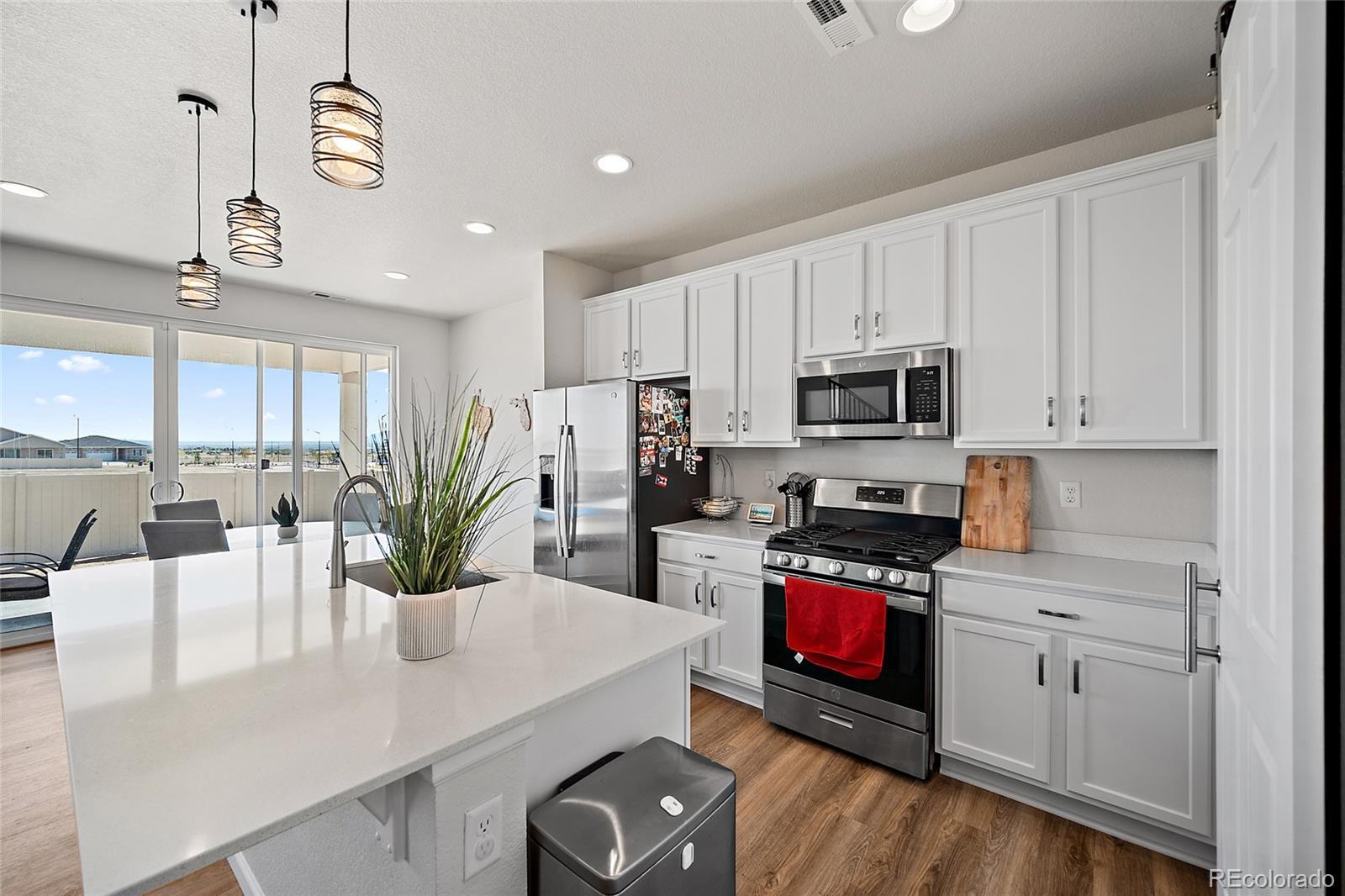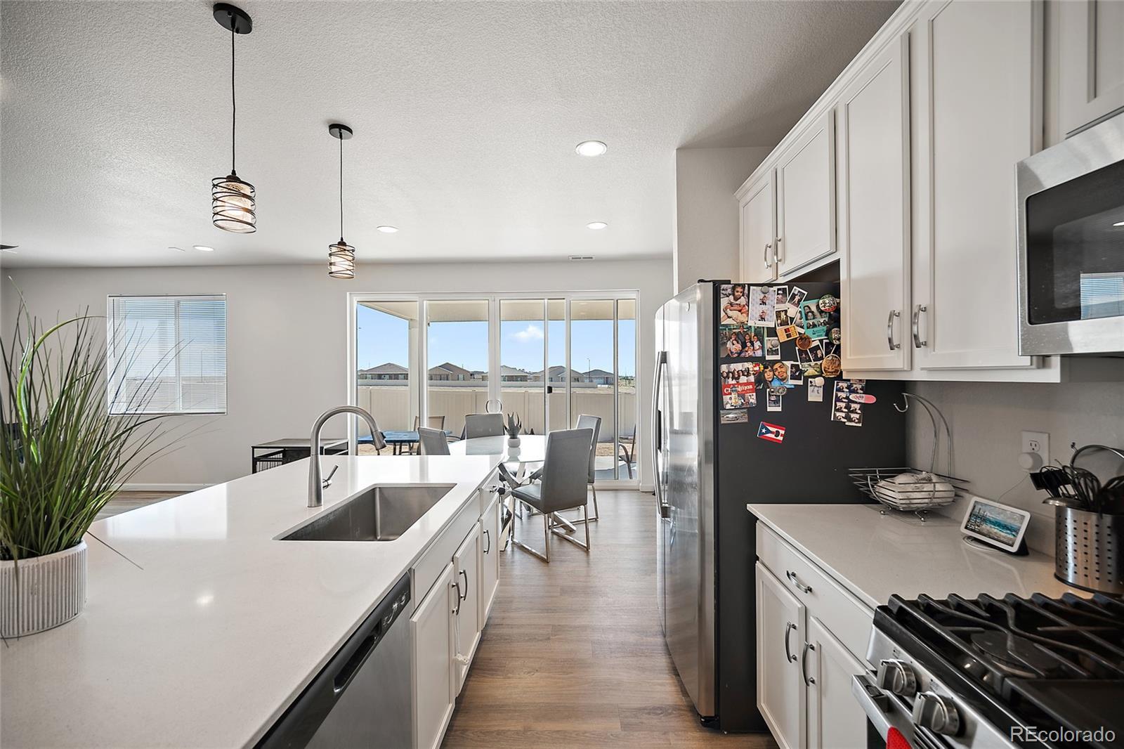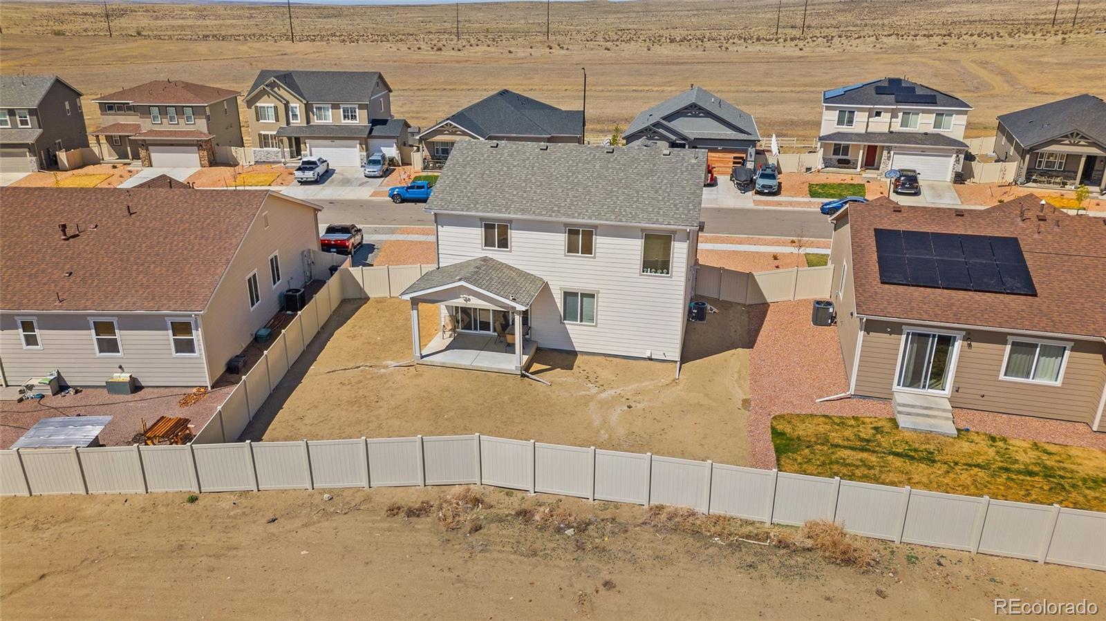Why wait to build when this nearly new home is ready now? Located in the North Vista Highlands neighborhood of Pueblo, you'll enjoy quick access to I-25 and just a 35-minute drive to Fort Carson. This growing community features a beautiful park and playground with stunning views. The Coral floor plan blends modern design with functional living, offering two stories of thoughtfully designed space and stylish finishes throughout. On the main level, enjoy an open-concept layout perfect for relaxing, entertaining, and dining. The kitchen is a standout with stainless steel appliances, a gas range, and a quartz center island that flows seamlessly into the dining area and great room. Upstairs, a spacious loft provides flexible living space, accompanied by two secondary bedrooms and a full bath. The primary suite is a true retreat, complete with a generous walk-in closet and a private bath featuring dual vanities and a walk-in shower. A conveniently located laundry room—washer and dryer included—adds to the ease of everyday living. Schedule your showing today and make this lovely home your own!