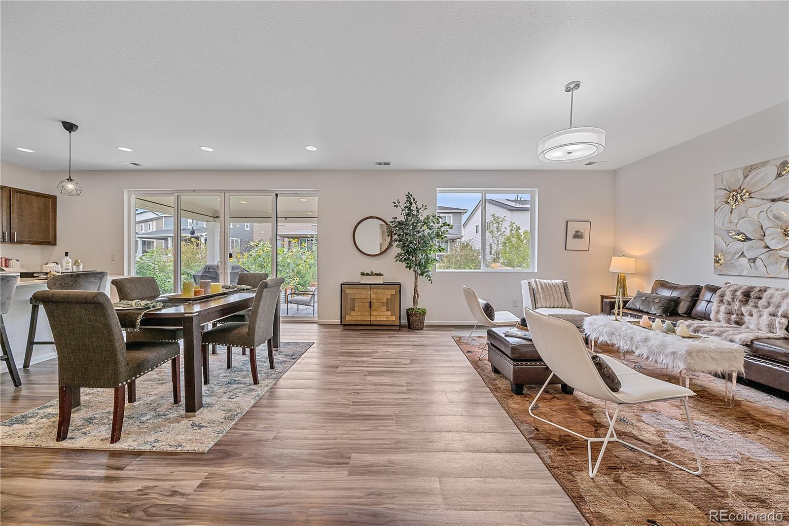 Best in Show! Come see this beautiful 5-year-old, south-facing home in Crystal Valley Ranch with so much to offer. Step inside to an open floor plan featuring a formal living room, convenient half bath, and a spacious family room/dining area that flows seamlessly into the kitchen, with patio doors leading to the back patio with bbq and sitting area. Durable LVP flooring on the main level makes for easy cleaning. The professionally landscaped, drought-tolerant front and back yards are a gardener’s dream, with edible plantings that include raspberries, grapevines, plum and peach trees, blackberries, rhubarb, and strawberries. Remarkably, the irrigation system hasn’t been needed in over four years! Upstairs, the primary suite boasts a luxurious 5-piece bath and a huge walk-in closet. Two additional bedrooms share a full bath, while a generous laundry room and versatile loft provide plenty of flexibility. Enjoy being just minutes from Plum Creek Golf Course and historic downtown Castle Rock, with quick access to I-25 for an easy commute to Denver or Colorado Springs. Out door grill and some of the patio furniture are included in the sale as well as the refrigerator in the garage. HOA documents can be found in supplements. Floor plans with dimensions, virtual tour and other useful information can be found at https://revlmedia.com/5465-Gray-Wolf-Ln