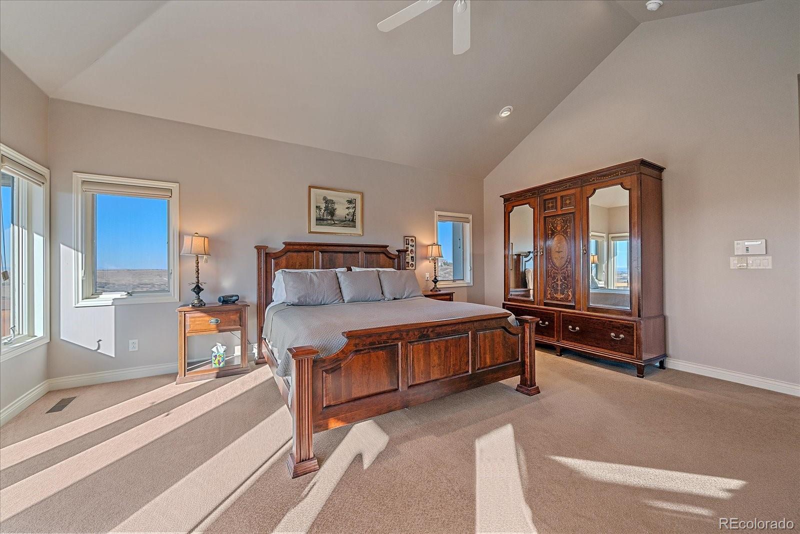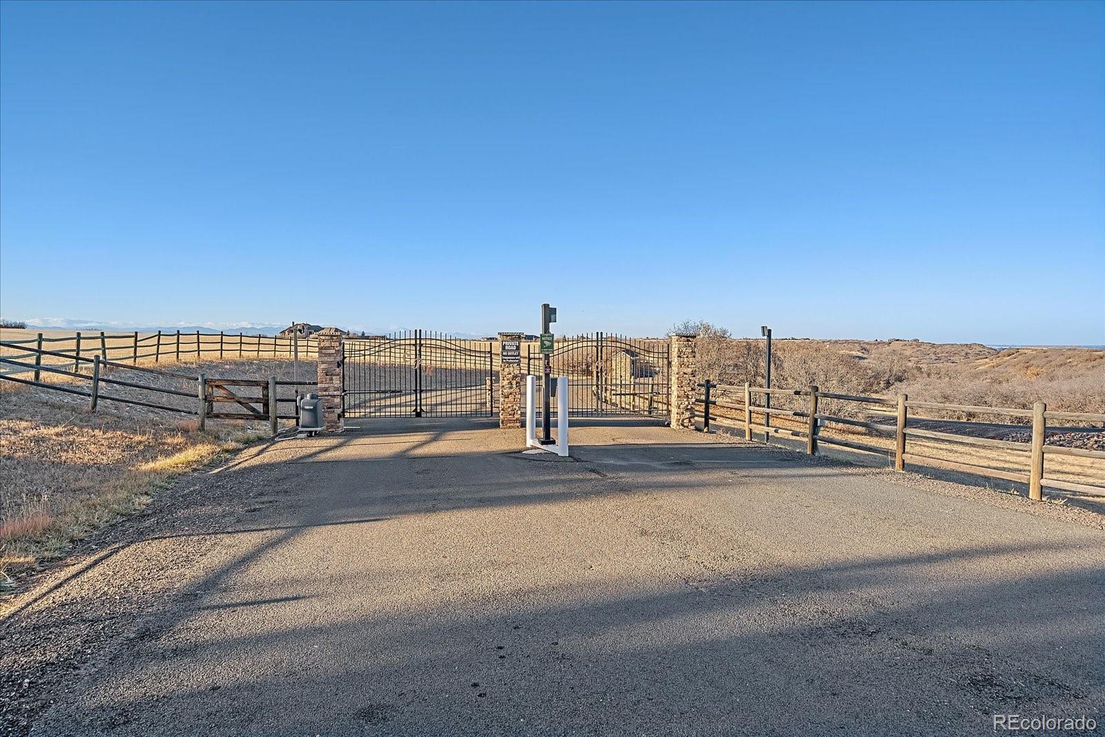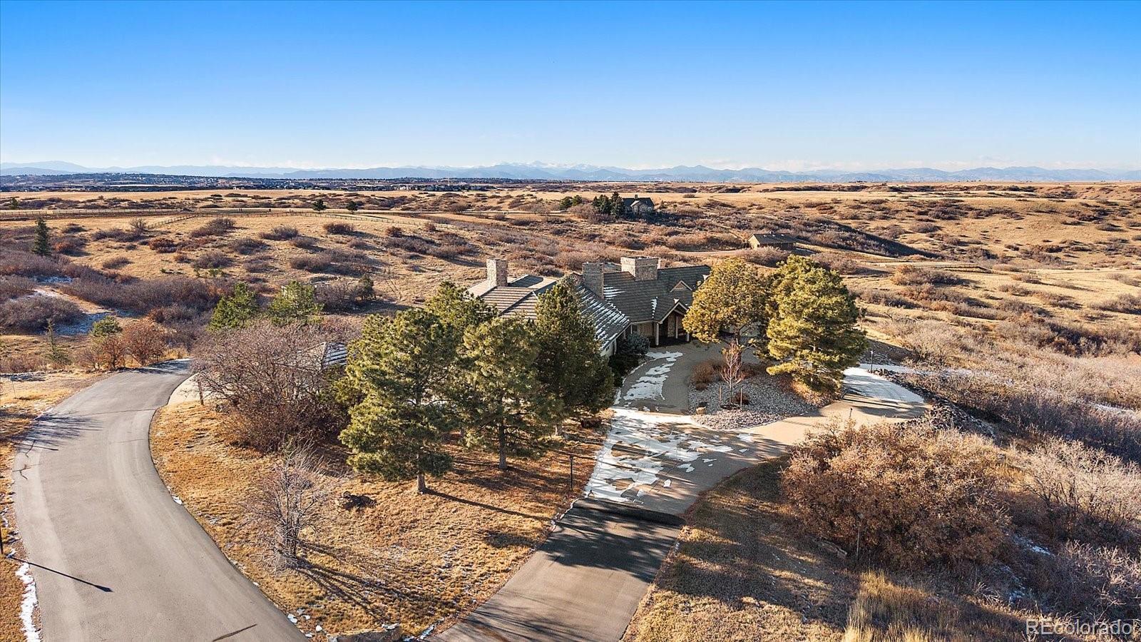 The 35 acre executive estate is surrounded by stunning expansive views of the Rocky Mountains from Pike's Peak to Long's Peak and Mt Evans. It sits adjacent to Rueter-Hess Reservoir which provides water storage to Parker, Castle Rock, Lone Tree and Castle Pines. When full, the water's edge almost reaches the property line. The original Castle Park Ranch homestead sits on the estate grounds and is easily observed from the home. The homestead was built in 1910 from local stone. Easily accessed from Parker or Castle Rock, this gated community provides a private and secure environment within which to enjoy the reservoir and the serenity it provides. This ranch style home is tastefully laid out and beautifully appointed. The main level offers a stunning kitchen with Bosch and GE appliances and granite counters. The kitchen opens to a great room with soaring vaults, built-in cabinetry, and a fireplace. A sunroom provides commanding views of the full Rocky Mountain range, Rueter-Hess Reservoir and the homestead. The main floor includes an expansive primary suite, an office, laundry room, and an eat-in nook. Step out to the Brazilian Paulupe deck, recently updated, for splendid views. The lower level offers 3 additional bedrooms, 2 bathrooms (one with a steam shower), a rec room and an unfinished storage area complete with gun safe and treadmill. The owners installed a geothermal heating system which provides cost effective heating in the winter; propane provides back-up and powers the appliances. HughsNet Satellite provides internet. Don't miss the opportunity to own this exquisite property! This lovely gated community provides rare access to close-in large acreage; A hidden gem! Qualified Buyers only. Proof of funds letter required. Call Listing Agent with any questions. https://iframe.videodelivery.net/63e0542202e9476a1ea08835fa7d525e