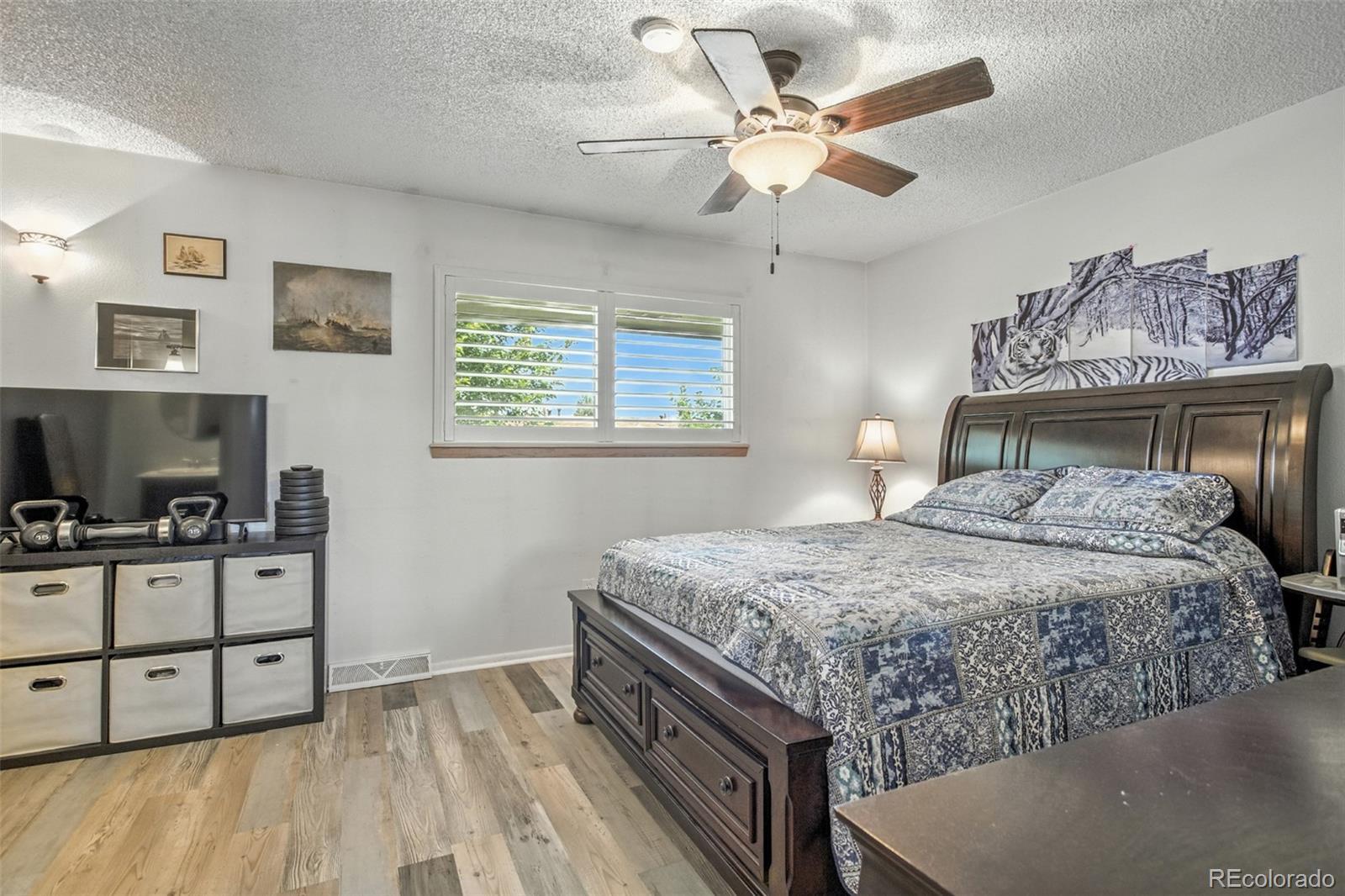 Motivated. Step into this beautifully remodeled 2-bedroom, 3-bathroom home that blends modern luxury with everyday functionality. Featuring double master suites, this home is perfect shared living, guests, or anyone who enjoys added privacy and comfort. Inside, every detail has been thoughtfully upgraded. Enjoy brand-new flooring throughout, elegant white oak plank stairs, new fixtures, contemporary ceiling fans that add both style and efficiency. New interior paint, new electric panel, custom Norman wooden shutters, and Renewal by Andersen windows flood the space with natural light and warmth. Grand new Front Door and back Slider to make a statement. 70k +invested. The fully remodeled kitchen is a true centerpiece, showcasing GE Slate appliances, quartz countertops, new cabinetry, & a layout ideal for cooking & entertaining. All luxury bathrooms feature brand-new one-piece toilets which have been fully transformed w/ large-format Sandstone tile, modern new vanities, and elegant walk-in Kohler showers bringing high-end design into your daily routine. Additional highlights include a barn door closet that opens into a versatile bonus room—ideal for a home office or extra walk in closet. Thoughtfully designed storage nooks throughout the home add practical convenience. Step outside to the outdoor patio area, complete with pavers and windows that bring in plenty of light. It's the perfect space for relaxing or entertaining. Whether you're grilling up your favorite BBQ or enjoying a quiet evening, this space is designed for seamless outdoor living and equipped with an Attic fan so you and bbq and the space keeps you warm during the cooler months. A storage shed provides extra space & 2 covered carports ensure year-round protected parking. Located near Green Mountain schools, shopping centers, dining, and top-rated hospitals, this home delivers both luxury & location. All offers considered!