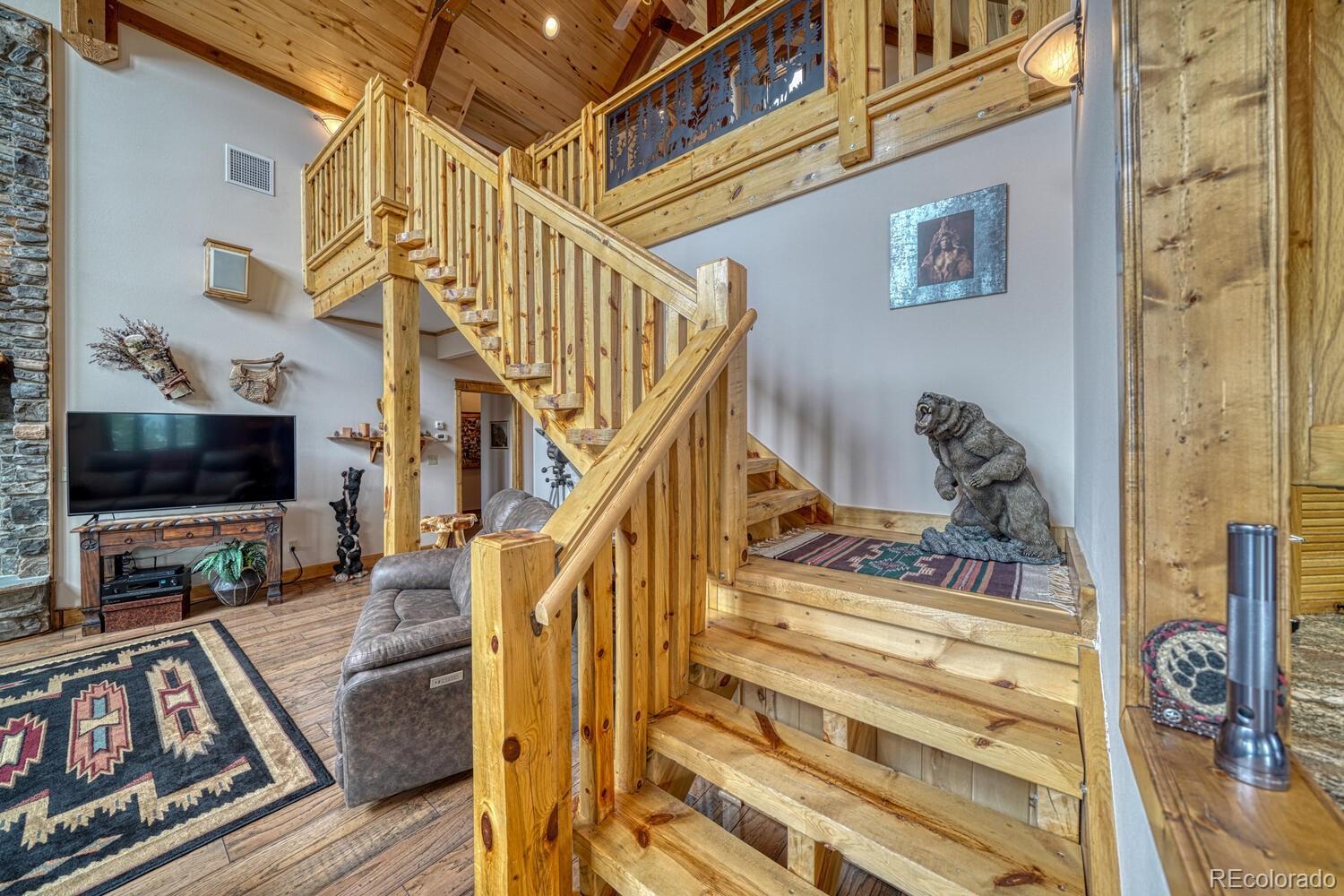 Welcome to your dream mountain escape — a stunning 3,595 square foot custom home that perfectly blends high-end craftsmanship with the tranquility of nature. Set against a backdrop of towering trees and dramatic vistas, this immaculate residence offers refined living in an unparalleled alpine setting. Thoughtfully and custom designed with attention to every detail, this home features vaulted ceilings, exposed beams, and walls of windows that flood the space with natural light and showcase both mountain and valley views. The spacious open-concept living area centers around a stone gas fireplace, ideal for cozy evenings after a day outdoors. Walk out onto the updated composite deck to enjoy the firepit and the amazing views. The kitchen features granite countertops, new appliances, custom cabinetry, a center island, and a seamless flow to the dining area and outdoor living spaces perfect for both daily meals and entertaining al fresco. Off the kitchen there is a large laundry room with plenty of storage that adjoins a full bath. Walk down to the hallway to the attached immaculate garage that has a 2nd bay for all your toys and mountain gear. The primary suite is a true retreat, offering a spa-inspired bathroom, with separate slate countered vanities, 2 walk-in closets, a jetted tub and glassed-in tiled shower. There is also access to the outside deck…where a hot tub could go? On the main level there are 2 guest bedrooms and a 3/4 guest bathroom and flexible space off the front entry for an office. The loft has more flexible space for another bedroom, or office space. Downstairs, there is another separate living space, with an outside entrance to a covered patio. Your guests can enjoy a Living/dining area with a full kitchen, and a bedroom with a full bath. Whether as a full-time residence or a seasonal getaway, this custom mountain home offers privacy, luxury, and a connection to nature that’s simply unmatched.