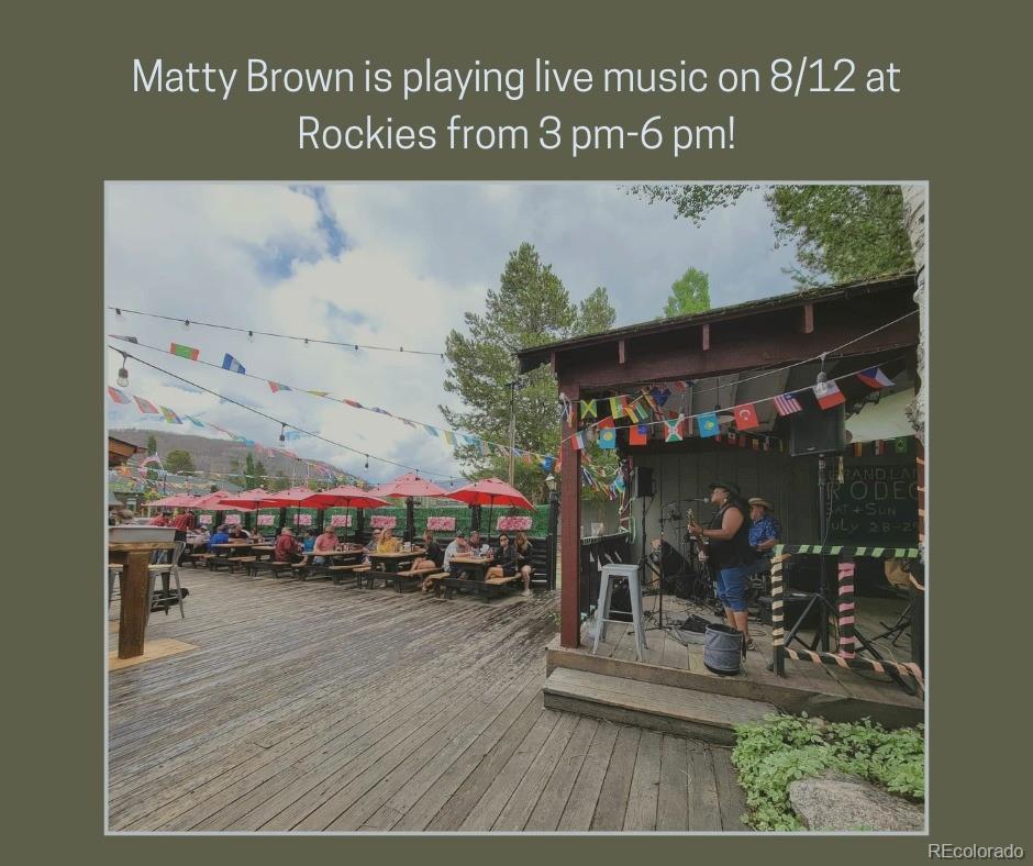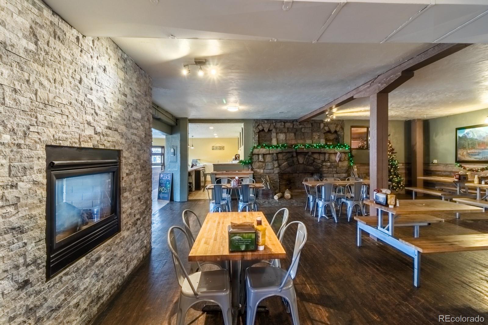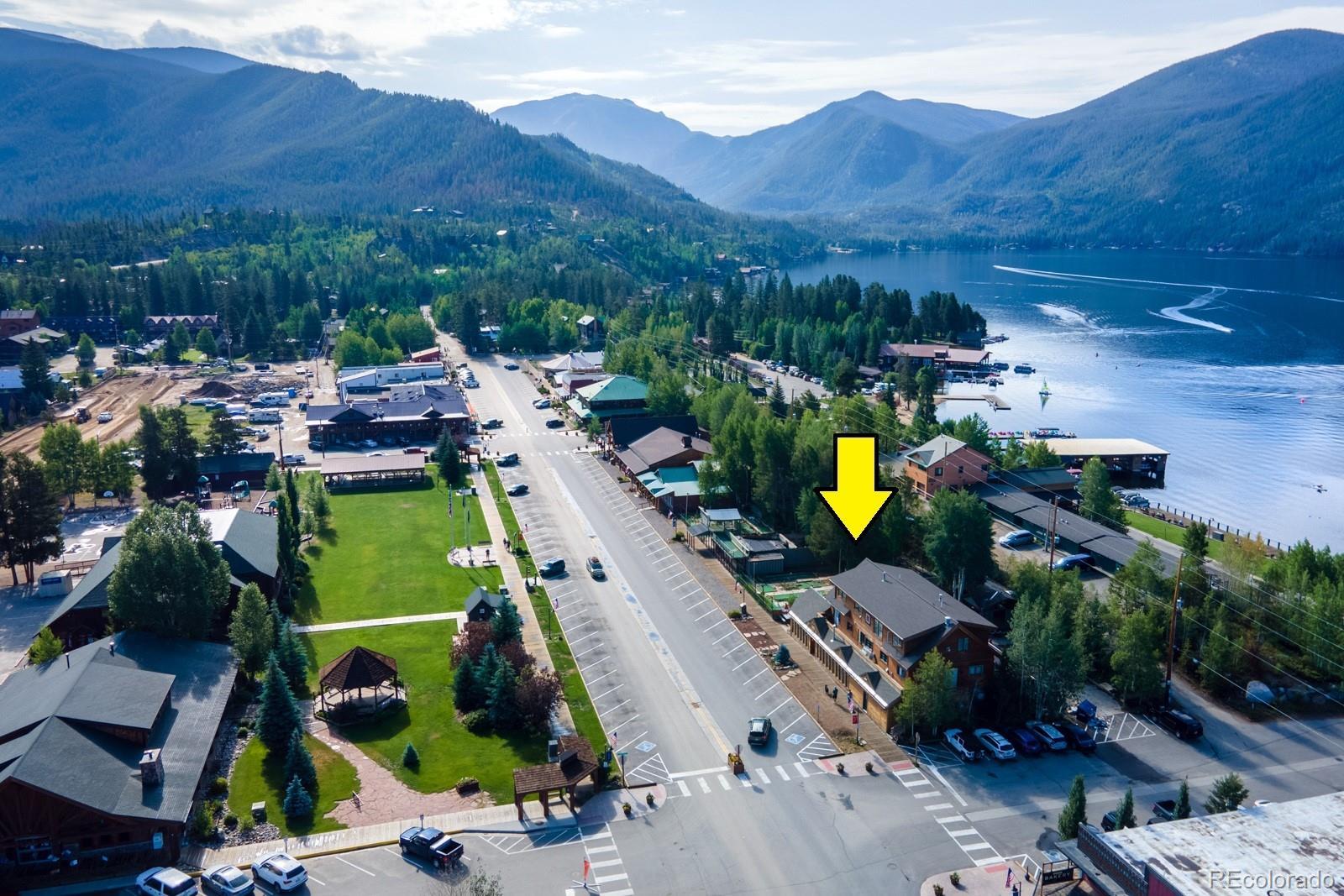 Most prime location! Restaurant and beer garden on the Boardwalk right across from the Town Square has been a fun gathering place for most of its life. 7700 square feet on 2 lots, literally in the heart of Grand Lake. Main level dining and bar plus outdoor seating with a covered live music venue. 3rd floor Penthouse Suite sleeps 10 in 3 suites with a shared kitchen: king suite with bath, fireplace and sofa bed; queen suite with bath including claw foot tub and fireplace and a queen suite with bath, fireplace and sofa bed overlooking Town Park. The middle level has a one-bedroom apartment at the east end, a laundry room, ¾ bath, and 3 sleeping rooms (one with a kitchenette), which are currently employee housing. R144510 Lots 7 & 8, Block 5 #1000 Grand $1,876,000