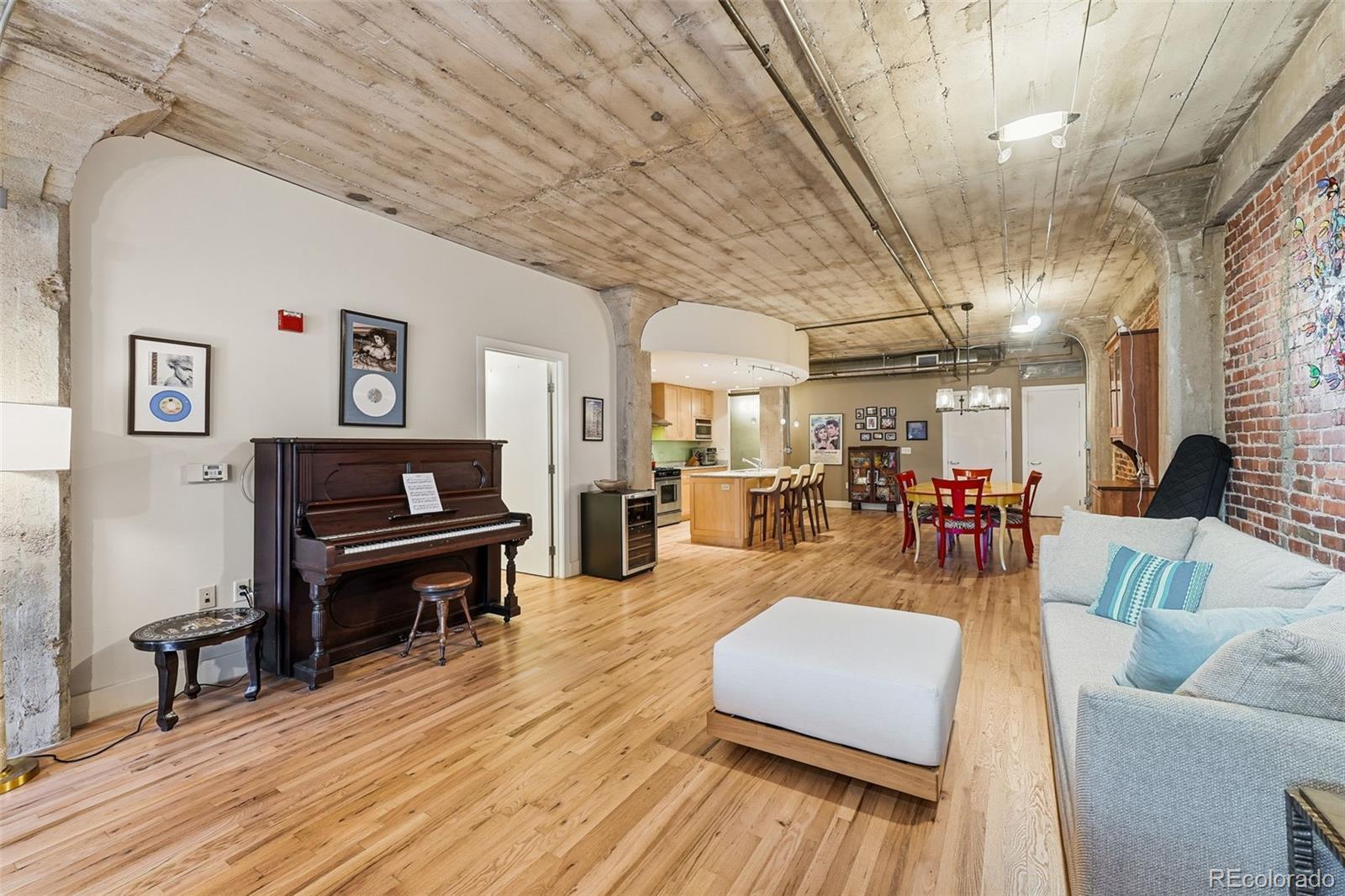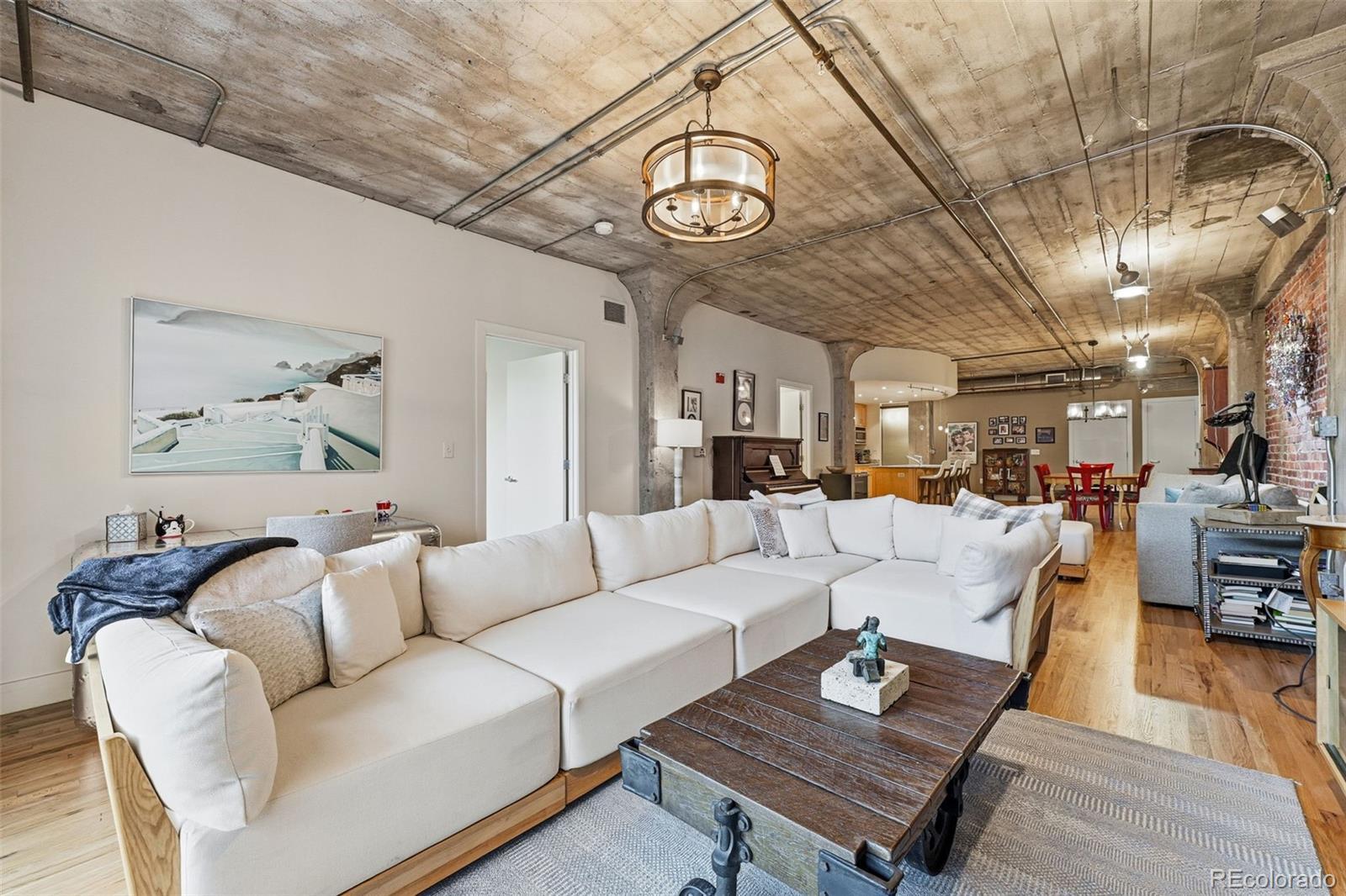 Step inside and immediately feel the character of this two bedroom, two bathroom home, where exposed brick walls, high ceilings, and refinished hardwood floors create an unforgettable first impression. The residence blends historic LoDo charm with modern livability, offering a spacious, open concept layout that adapts effortlessly to living, dining, and work from home needs. The kitchen features a gas stove, range hood, and a functional island with barstool seating. The primary suite includes a generously sized bedroom, a beautifully finished en-suite bathroom, and exceptionally large closet space that is nearly impossible to find in downtown properties. Expansive dining, living, and family room spaces flow together seamlessly, creating an open floor plan with room to relax, entertain, or host friends and family. A private balcony, perfect for morning coffee or grilling, is located directly off the living room. Additional conveniences include two dedicated parking spaces, a private storage unit, and access to a shared rooftop area with a grill and seating. Positioned at the gateway to Denver’s next major transformation, this residence sits steps from Union Station, Ball Arena, the Cherry Creek Trail, top restaurants, and the future Wynkoop Crossing bridge connecting directly to the newly approved Ball Arena entertainment district.