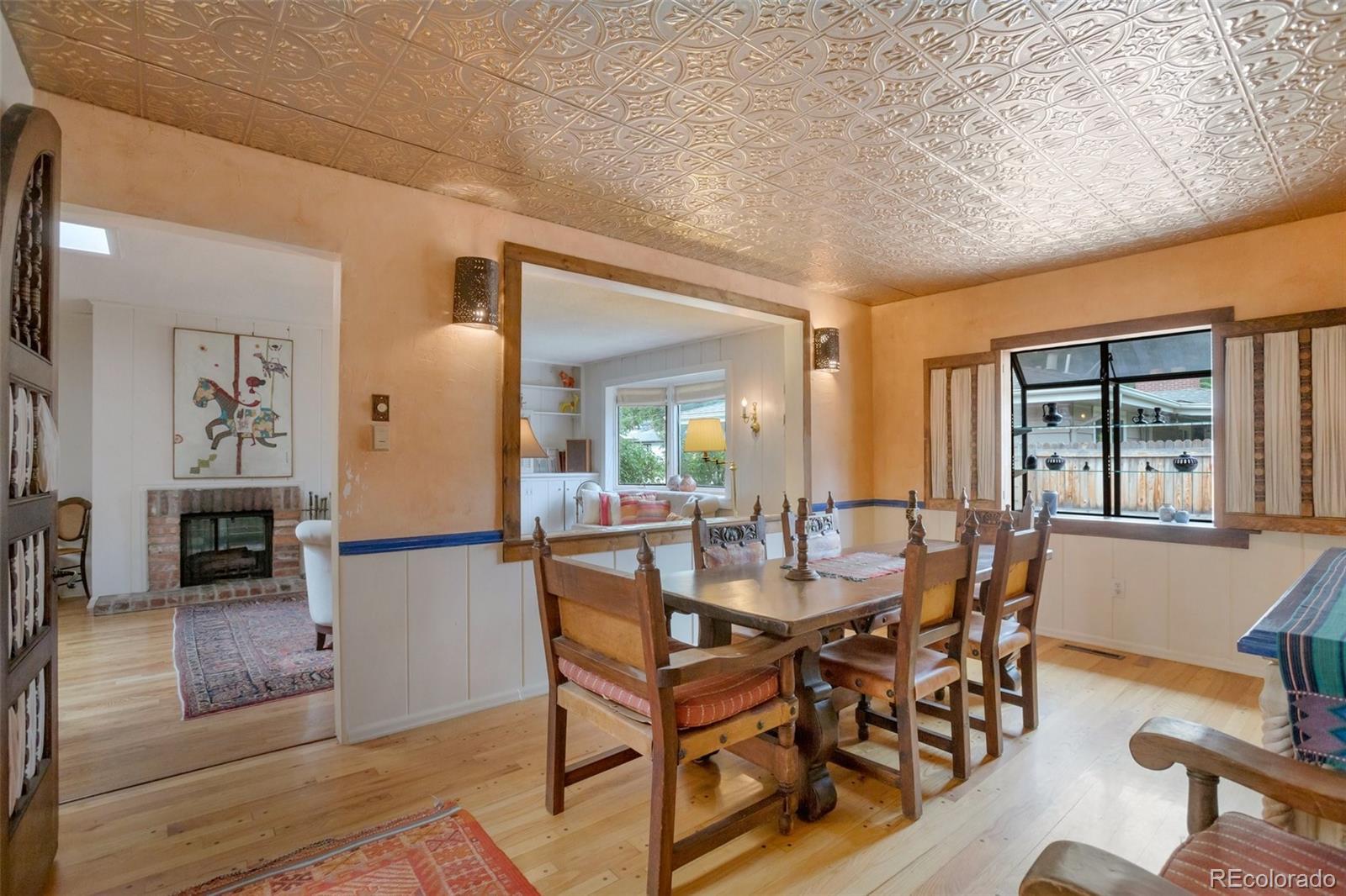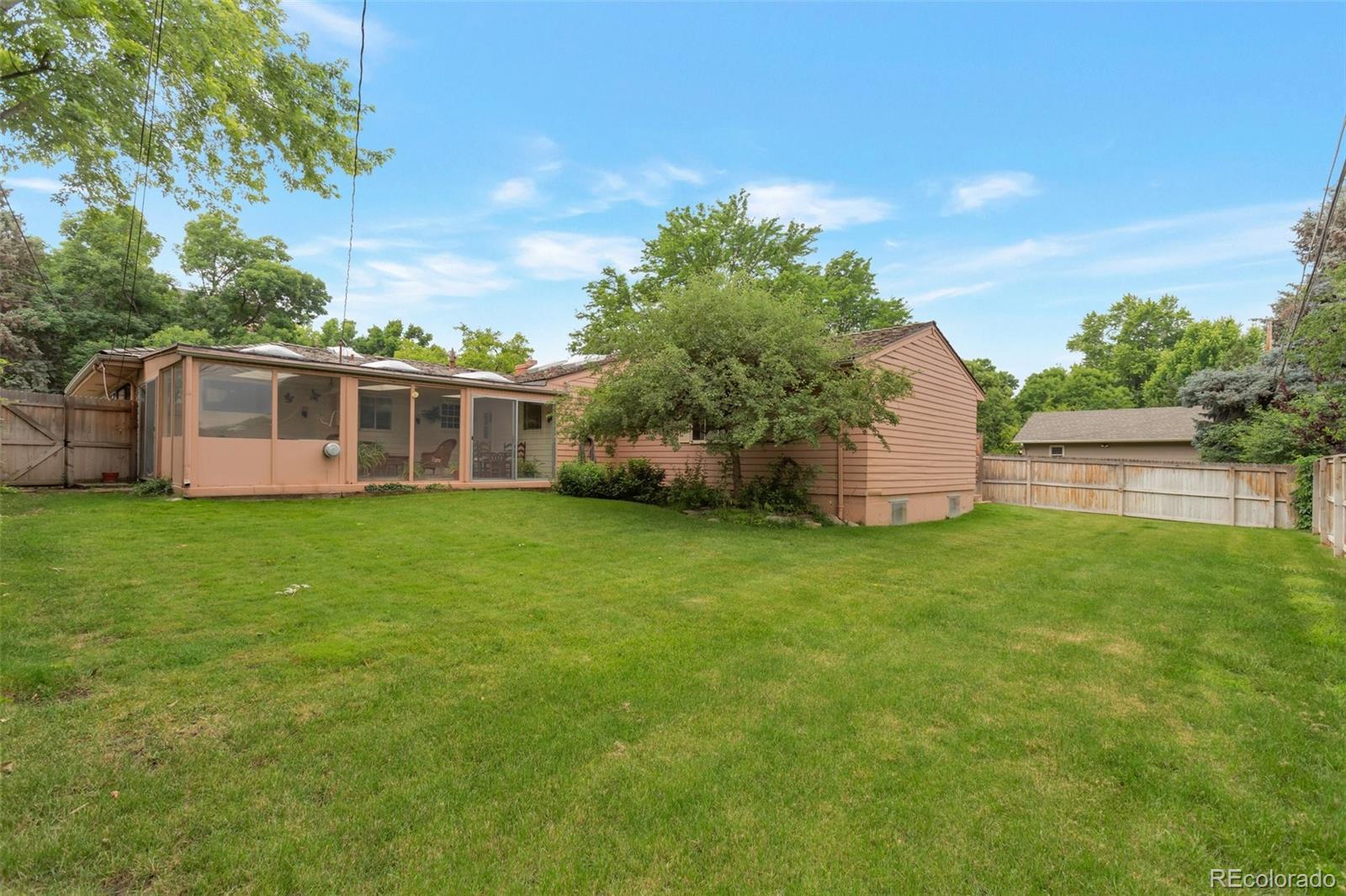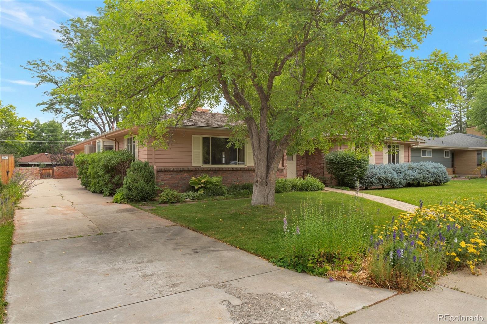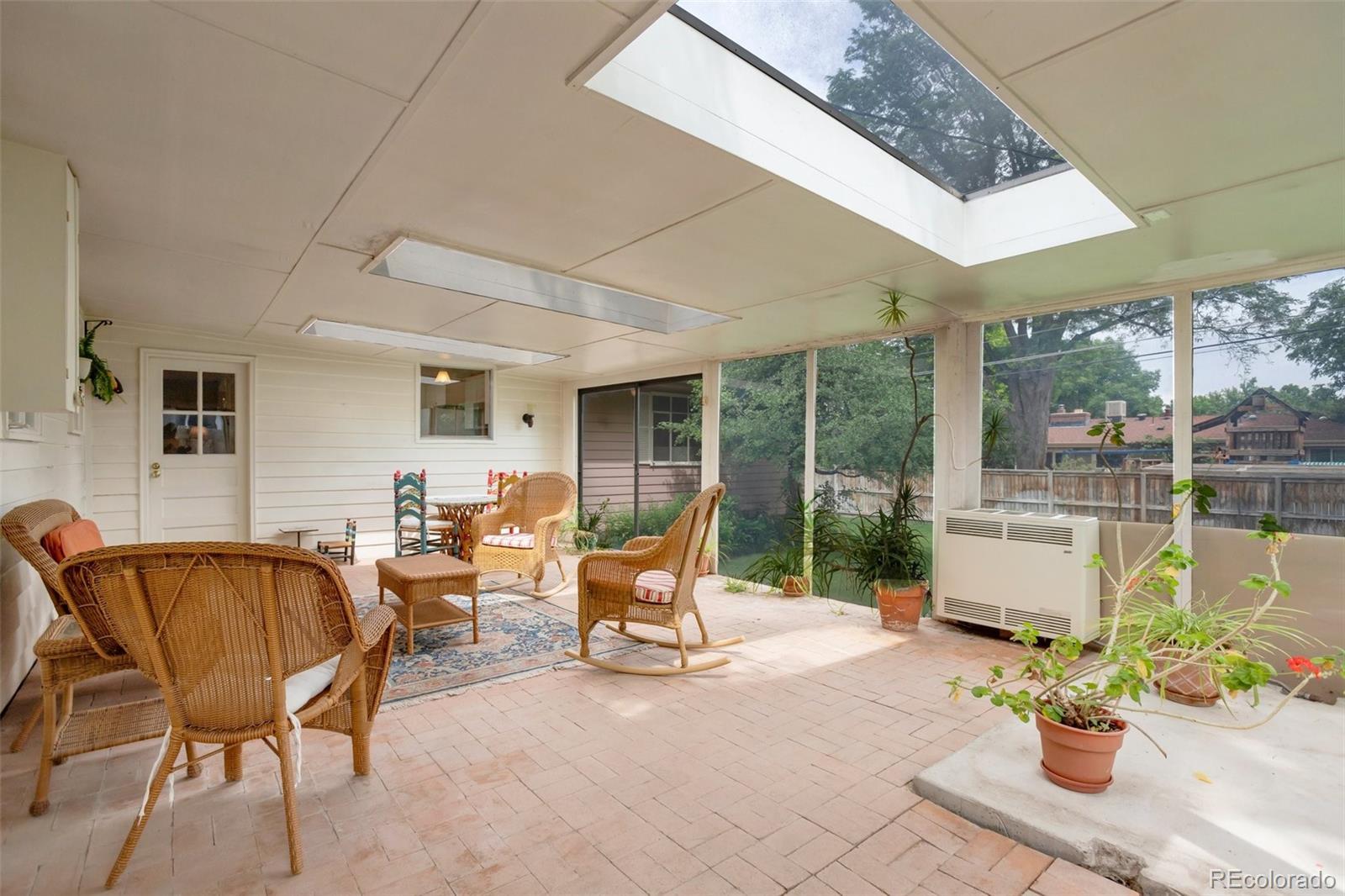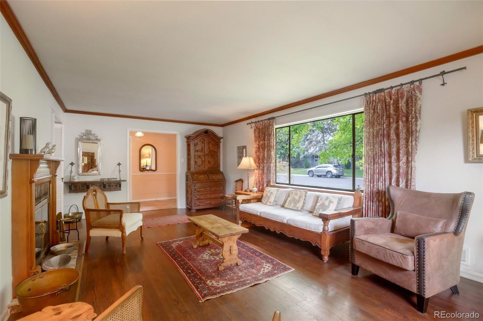 This home is a rare gem—expanded and remodeled with design touches inspired by far-flung places. You’ll step into a welcoming living room anchored by beautiful oak floors and a grand double-sided gas fireplace. Imagine holiday stockings draped from its elegant mantel—this is where memories are waiting to be made. The family room features the same fireplace, visible from the nearby dining room. The dining room itself is made for gatherings: custom wall sconces, a stamped metal-tiled ceiling, and arched wooden doors opening into the kitchen. It’s a warm, stunning space built for entertaining. The spacious front bedroom includes a built-in office area. Originally two separate bedrooms, it was combined years ago into one large suite—but could easily be converted back into two rooms if needed. The primary bedroom in back has an expanded ¾ bathroom with a bidet. Convenience meets functionality with a main-floor laundry room located near both the bedrooms and the kitchen, with plenty of storage space. Downstairs, the basement provides more flexibility: there’s a study / rec room / bonus area plus a fully conforming bedroom featuring two egress windows—a rare find for a home of this era. The basement bathroom is beautifully tiled in blue, and there’s a large storage room with two above-ground windows (note: part of the basement extends beneath the garage—check the floor plan for more detail). Relax year-round in the heated sunroom. Facing north, it remains comfortably cool in summer, offering serene views of the lush, peaceful backyard. There’s also a pad with hookups ready for a hot tub! Location is superb. You’re within walking distance of a King Soopers, several restaurants, ice cream, a bank, shopping, and a lovely park with tennis/pickleball courts. And the public schools are outstanding: Cherry Hills Village Elementary, West Middle, and Cherry Creek High School.