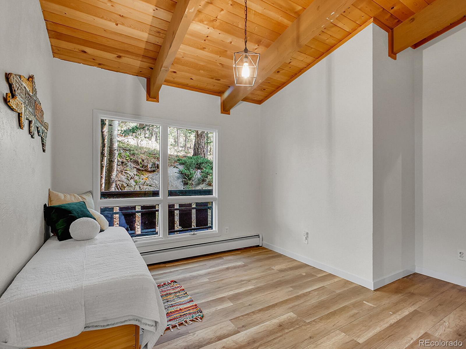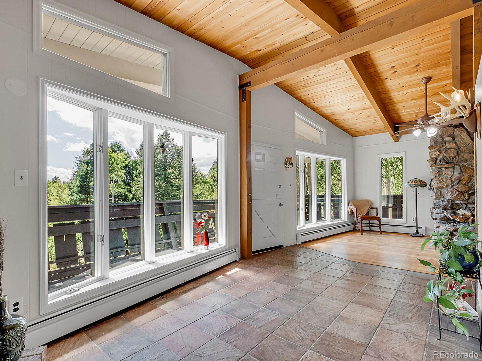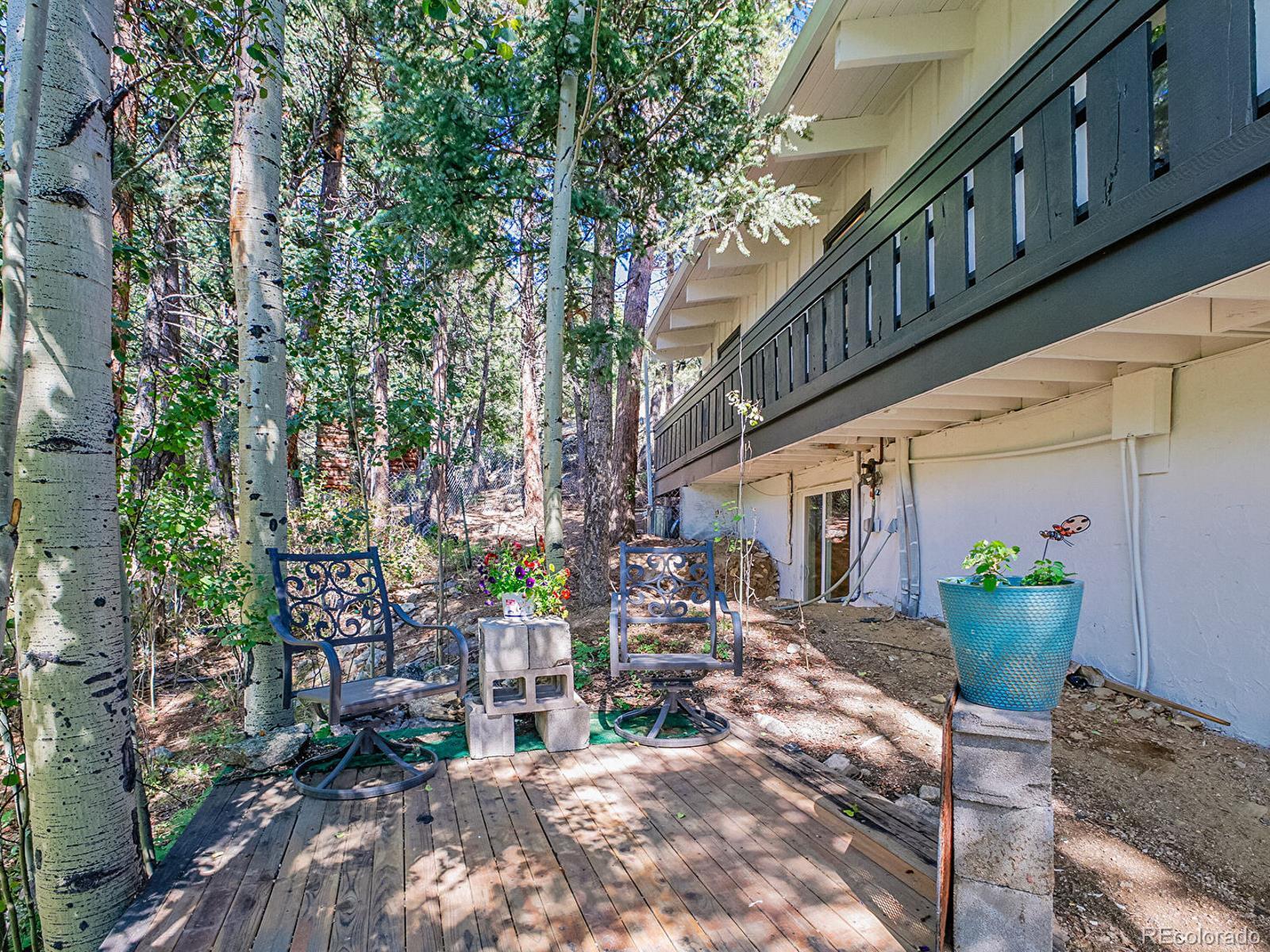 Nestled in the quiet serenity of an Aspen Grove! A Cozy Mountain Chalet with over 13 acres of prime rolling mountain meadows and rock outcroppings! Zoned for horses with a domestic well so you can build that barn you always wanted! Home has 2+ bedrooms, 3 baths, new paint inside and out, brand new roof! Come home to peaceful serenity with this true Mountain Chalet that embraces you with character and charm! Newly remodeled features include the Primary Bath, Primary Bedroom laminate flooring, Lower-level bath and flooring. Fresh clean interior paint gives you the feeling of a brand-new home! Yet so many features offer the mountain charm that we crave to include the Livingroom Moss Rock Fireplace, or the Kitchen Red Brick Fireplace, the Rustic Pine Cabinetry, Wrap-around Deck to enjoy the surrounding Rock Outcroppings and far-reaching views! Step out to a small, detached deck next to the rock outcroppings to gather for picnics. Or sit and relax on the small deck in the Aspens just outside the lower level. Ideal location that is only 5 - 10 minutes to Conifer shopping and schools. 15 minutes to C-470 making commuting very easy! Escape your daily stress here at this comforting home!!!