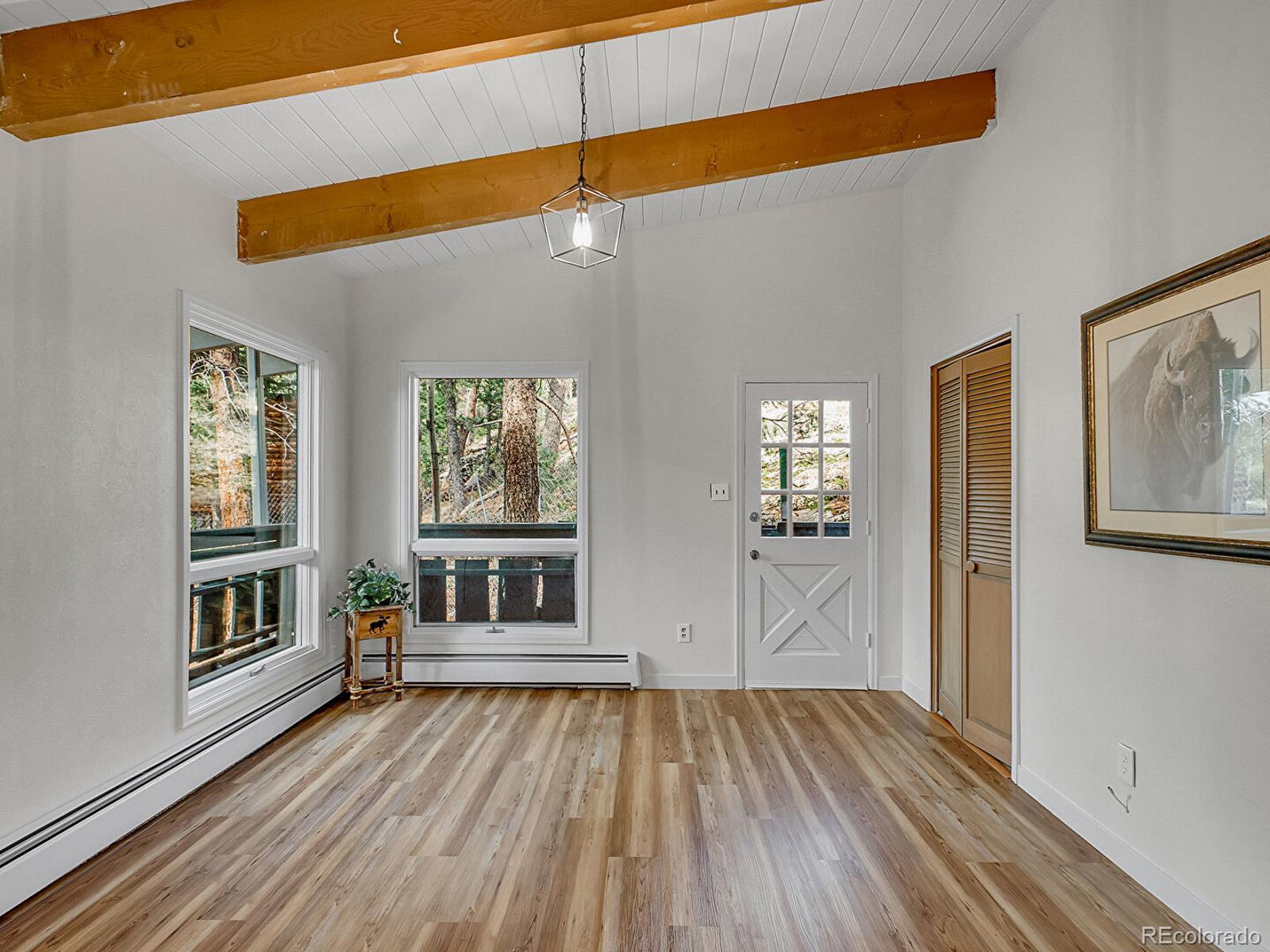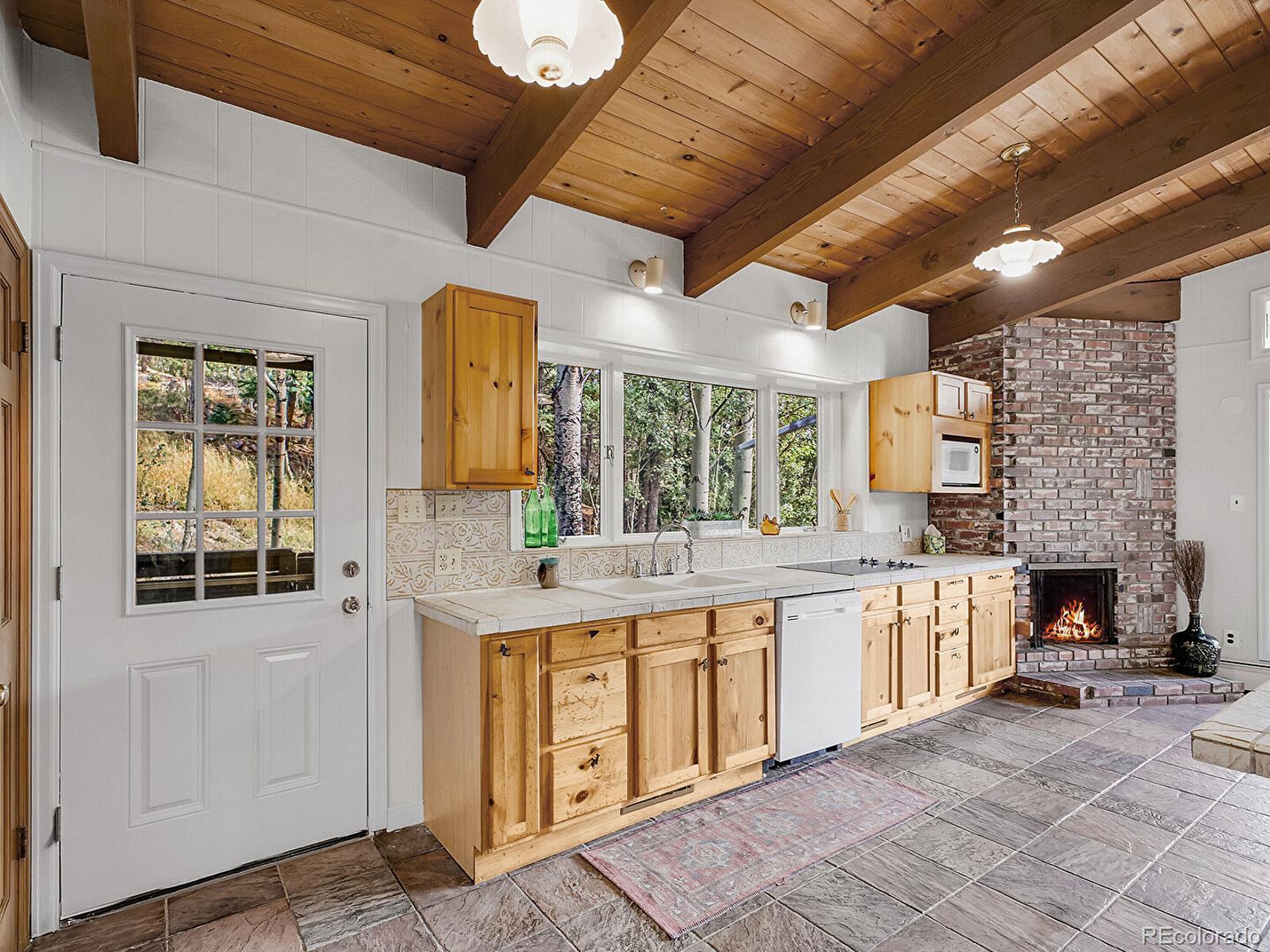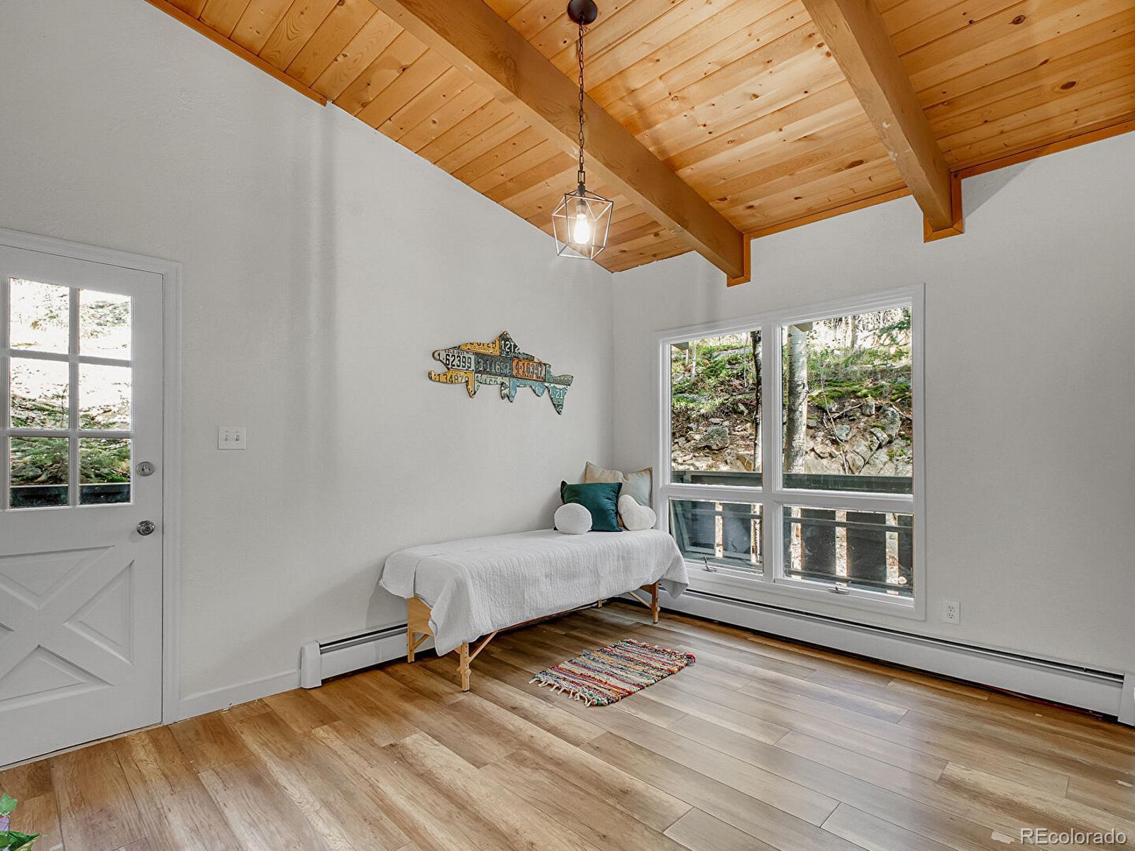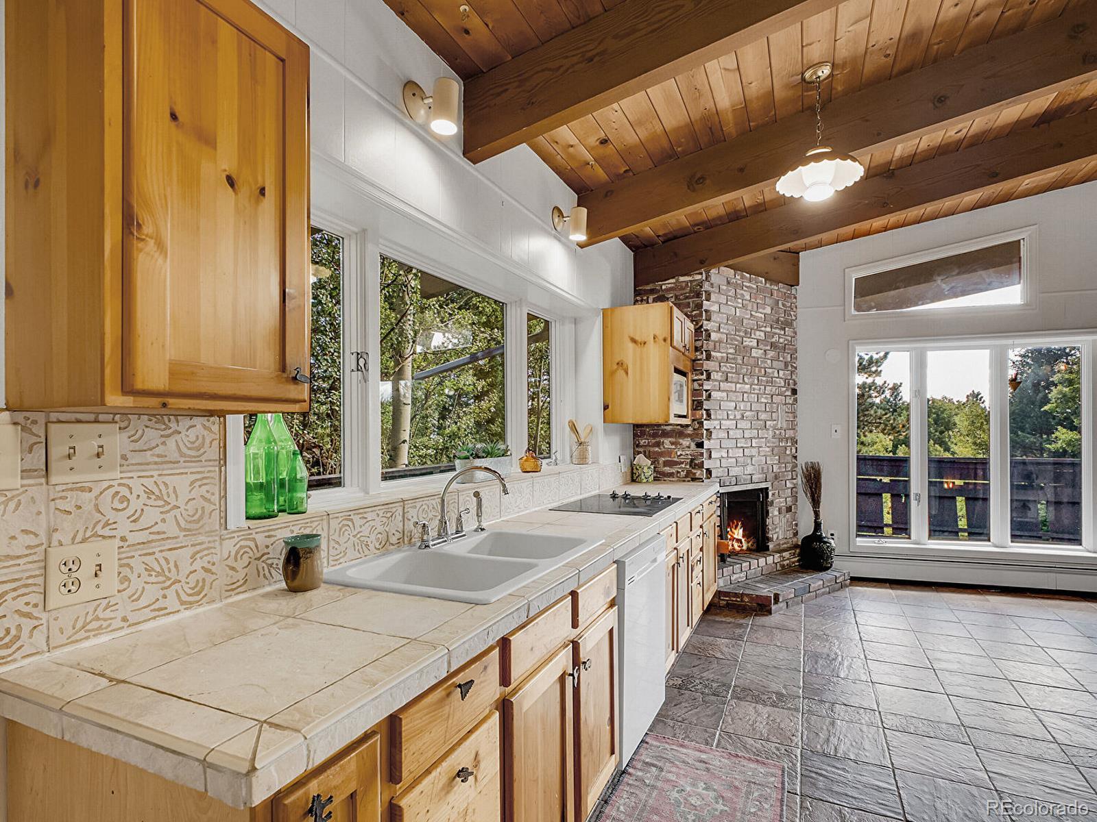 Nestled in the quiet serenity of an Aspen Grove! A Cozy Mountain Chalet with over 13 acres of prime rolling mountain meadows and rock outcroppings! Zoned for horses with a domestic well so you can build that barn you always wanted! Home has 2+ bedrooms, 3 baths, new paint inside and out, brand new roof! Come home to peaceful serenity with this true Mountain Chalet that embraces you with character and charm! Newly remodeled features include the Primary Bath, Primary Bedroom laminate flooring, Lower-level bath and flooring. Fresh clean interior paint gives you the feeling of a brand-new home! Yet so many features offer the mountain charm that we crave to include the Livingroom Moss Rock Fireplace, or the Kitchen Red Brick Fireplace, the Rustic Pine Cabinetry, Wrap-around Deck to enjoy the surrounding Rock Outcroppings and far-reaching views! Step out to a small, detached deck next to the rock outcroppings to gather for picnics. Or sit and relax on the small deck in the Aspens just outside the lower level. Ideal location that is only 5 - 10 minutes to Conifer shopping and schools. 15 minutes to C-470 making commuting very easy! Escape your daily stress here at this comforting home!!!