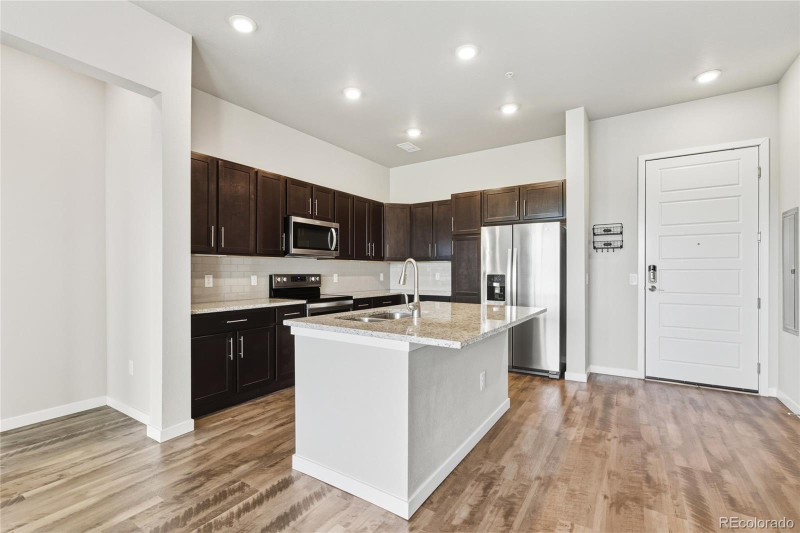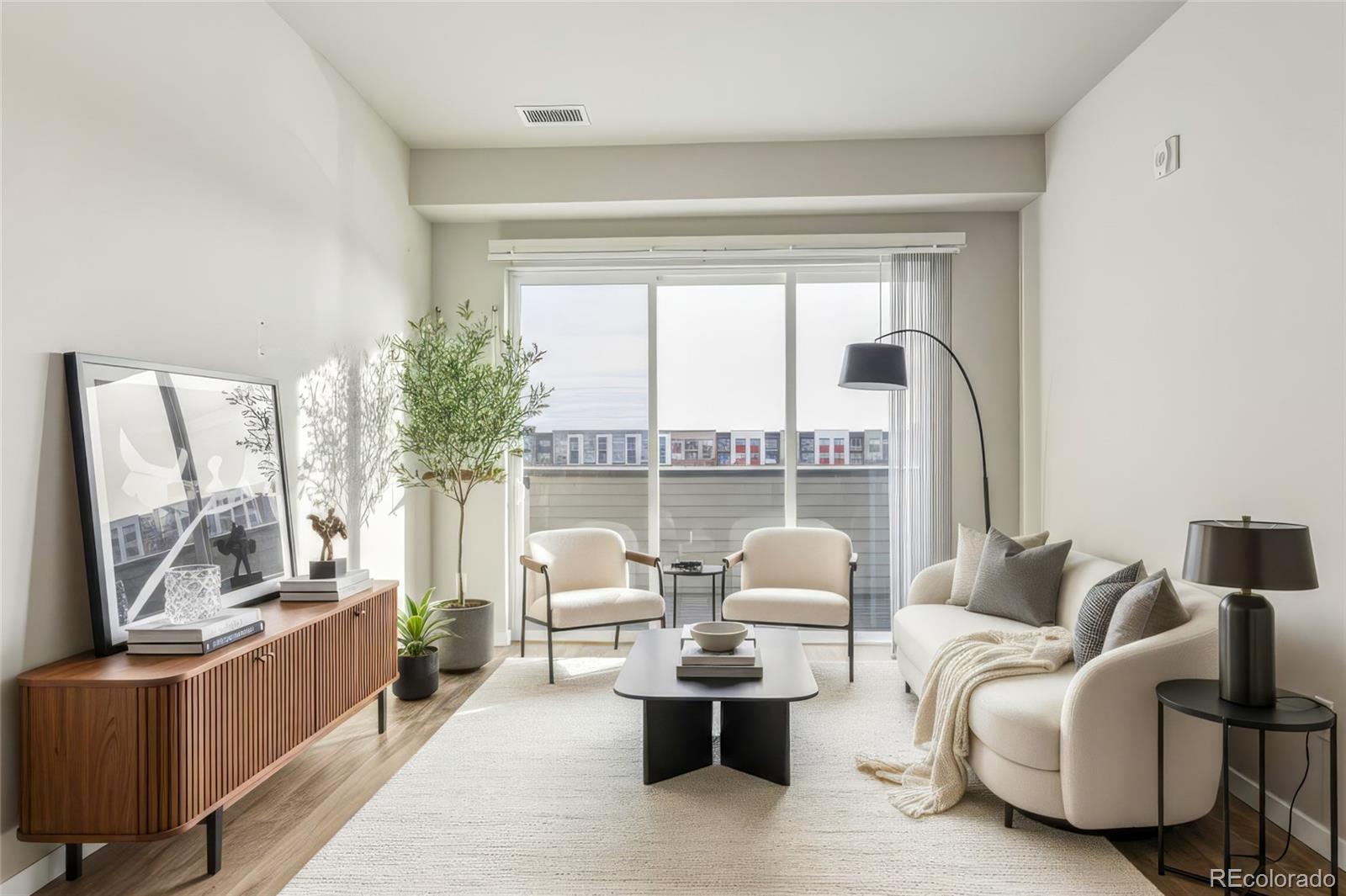 Experience luxury and accessibility in this stunning 2019-built condo located in the heart of vibrant Littleton Village. Perfectly positioned in a dynamic mixed-use community, you’re just steps from local shops, restaurants, and bars - including Starbucks and The Social Bar & Lounge - making it easy to enjoy a truly walkable lifestyle. Flooded with natural light through expansive windows, this modern residence features sleek finishes and a spacious, open-concept layout designed for comfortable living and effortless entertaining. Step outside to your private patio overlooking the park and take in breathtaking, unobstructed views - an ideal setting to relax and unwind. The community also offers inviting outdoor spaces, including a dog park and playground, along with a warm, welcoming atmosphere that truly makes it feel like home. This unit is conveniently located near the elevator and trash chute for added everyday convenience. Reserved, secure, heated garage parking with elevator access and bike storage is included, along with additional outdoor parking near the entrance and convenient EV charging stations. Residents enjoy exceptional amenities, including a fitness center, rooftop terrace with BBQs and fire pits, a dog park, playground, and 24-hour secured building access. Pet-friendly and move-in ready, this condo offers the perfect blend of modern comfort, convenience, community connection, and prime location.
