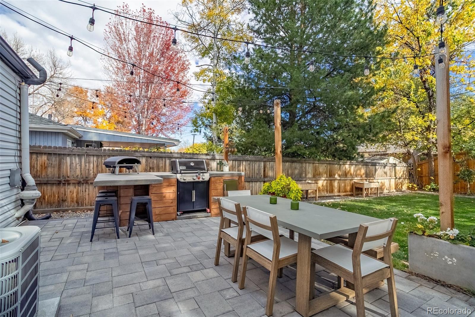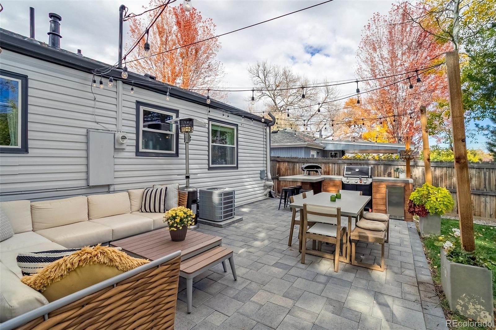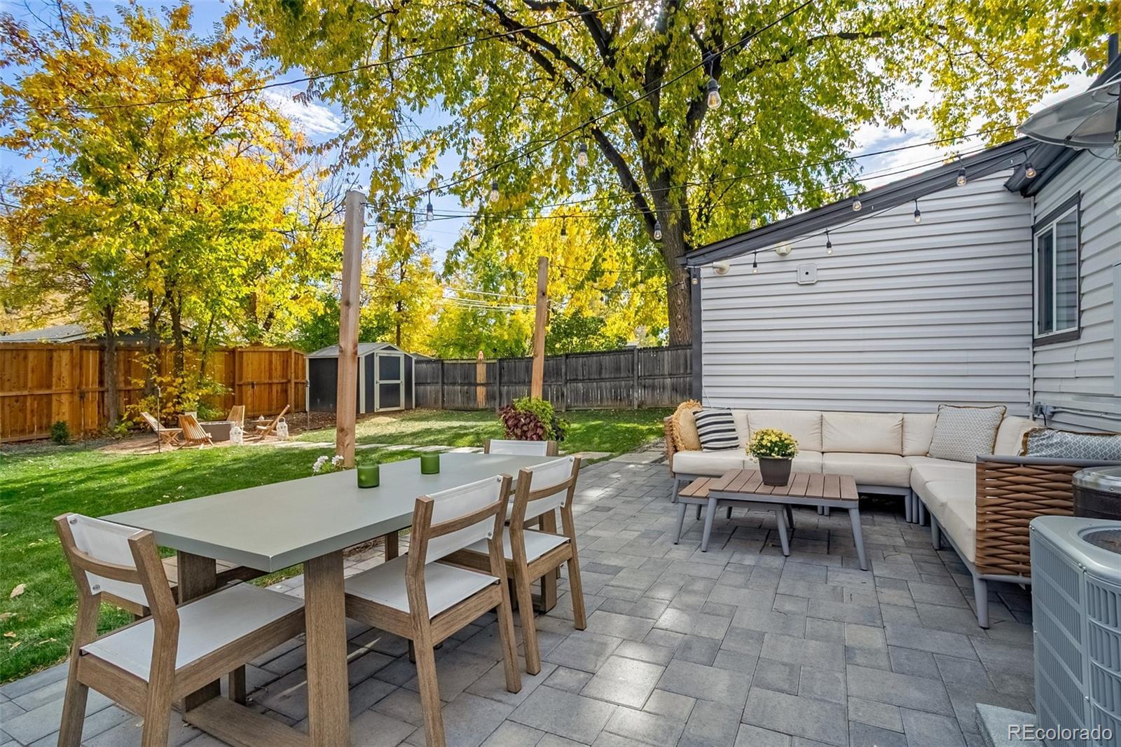 Absolutely adorable and completely reimagined, this charming ranch-style 3-bedroom, 2-bath home in Virginia Village was fully redone and remodeled in 2023 and blends thoughtful design with modern comfort. The inviting great room showcases custom wall panel detailing and an open-concept layout that flows seamlessly into a show-stopping kitchen featuring quartz countertops, stainless steel appliances, a vented hood, and a large island ideal for everyday living and entertaining. The entire house has beautiful hardwood floors, new doors, hardware and custom millwork. The kitchen leads to a spacious laundry room, pantry and additional storage with easy backyard access. A welcoming entry with excellent storage doubles as a functional mudroom and welcoming space to take off your shoes and coat. The main level offers two secondary bedrooms—one with a built-in hanging wall desk and the other generously sized with a closet and wood trim paneling—sharing a sleek hall bath with a wall hung sink and tub/shower combo, while the primary suite includes a private bath with large shower, double vanities and dual closets. Recent, major upgrades include a roof, gutters, AC, tankless hot water heater, attic insulation, fencing, newer furnace, and all appliances approximately three years old, with Quantum Fiber available. Step outside to a recently and beautifully updated backyard complete with a large patio, built-in kitchen counter, cozy fire pit, new storage shed, and a spacious fully sprinklered yard enclosed by new private fencing—perfect for relaxing or entertaining. Ideally located just a few houses from Potenza Park and blocks from Ash Grove and Cook Parks, this home offers easy access to a neighborhood library, local restaurants, miles of trails, and light rail at I-25. This jewel box of a home delivers quiet city living at its very best.